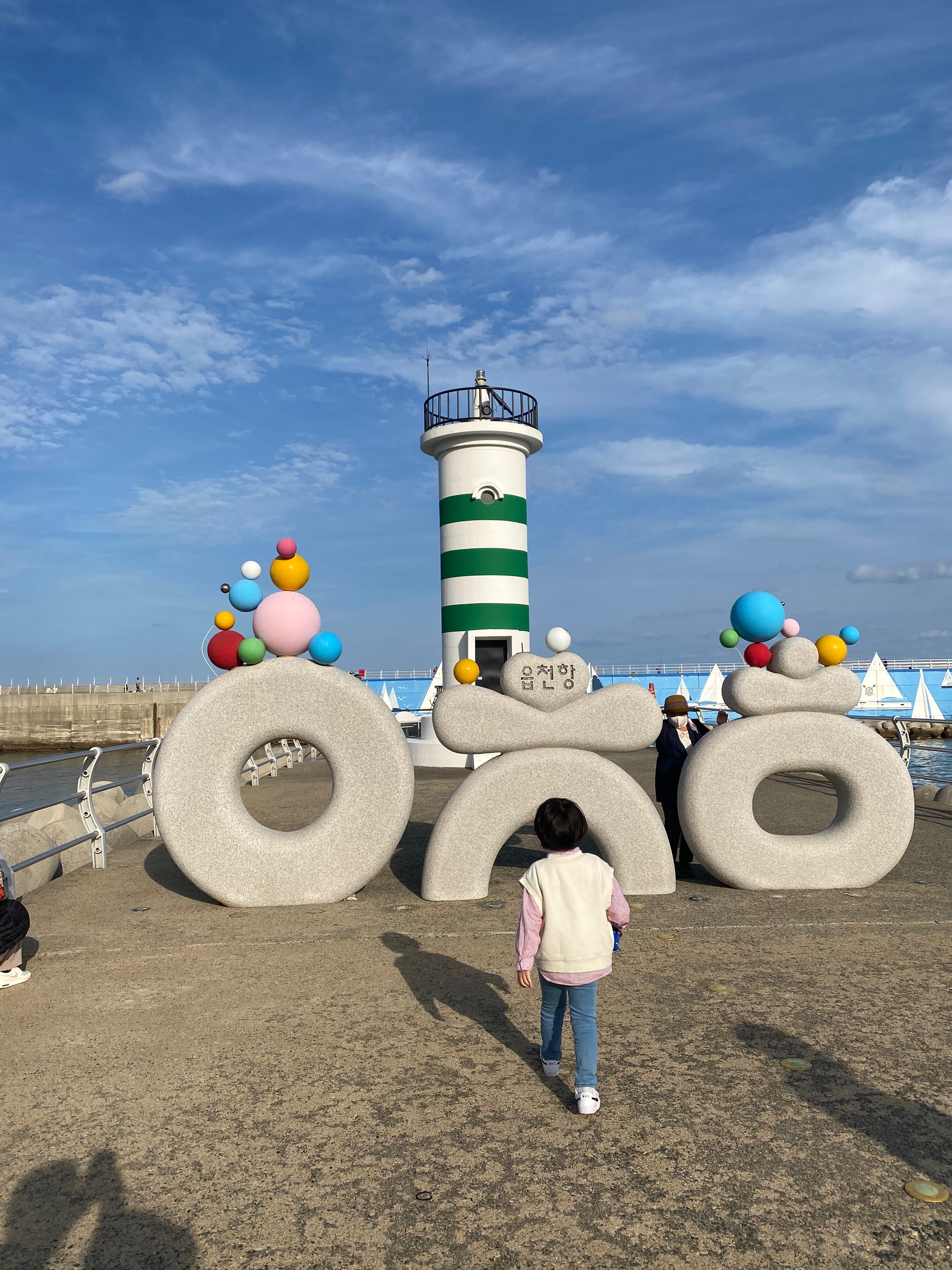 드디어 최종 목적지인 읍천항에 도착했습니다. 읍천항 무척 예쁘게 잘 정비가 되어 있었는데요, 한글 자음으로 만들어진 읍천항 조형물이 아들 맘에 들었는지 한참을 거기서 머물렀답니다.
