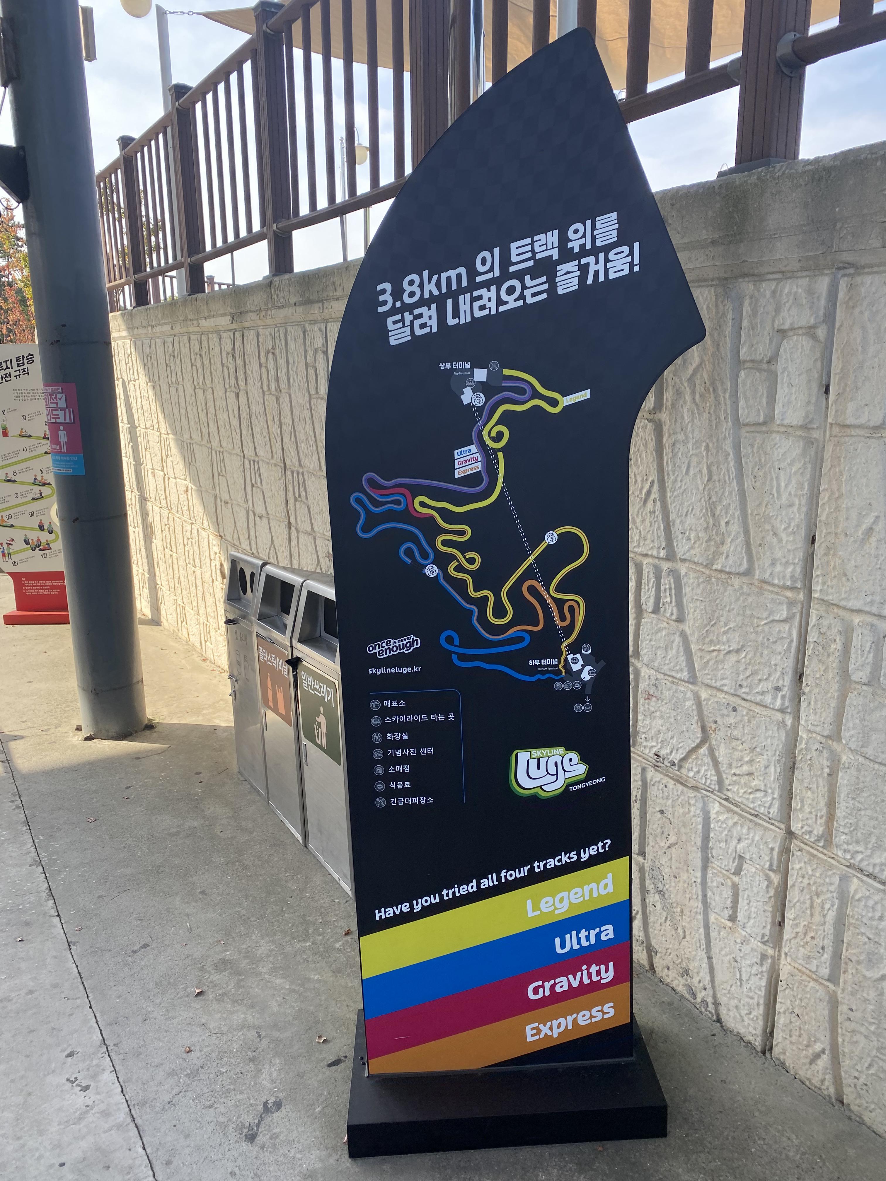 스카이라인루지에 잘 모르고 가면 막상 루지를 탈 때 코스를 어디로 가야 하는지 설명을 안 해줘서 그냥 막 가는데요, 우측 코스 사진을 꼭 살펴보세요. 저는 아들과 함께 레전드 코스와 울트라 코스를 타봤습니다.