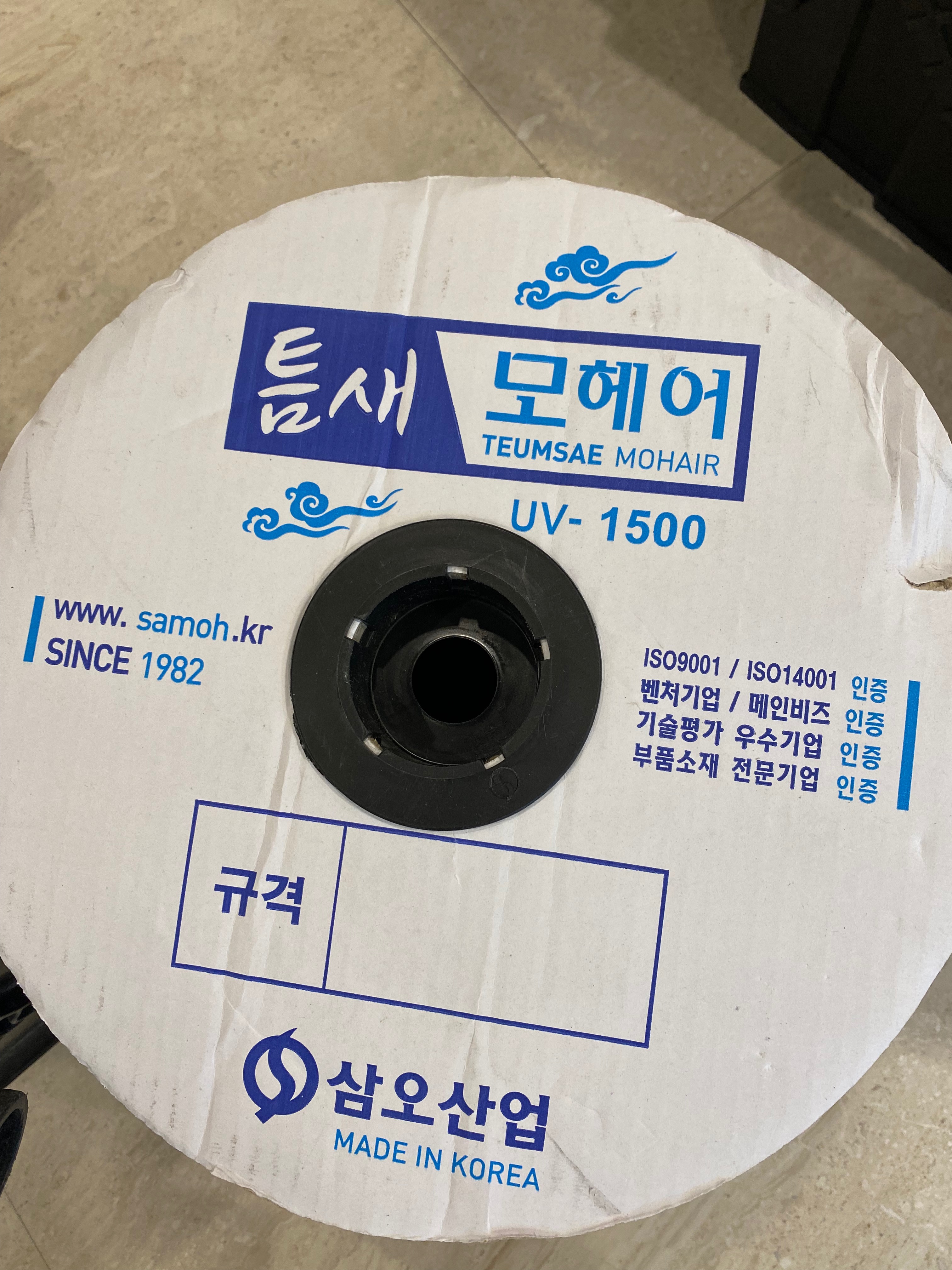 요 제품이 사장님 왈 최고급 모헤어 제품인데 7mm 제품에 중간에 2중 비닐이 설치되어 있습니다.