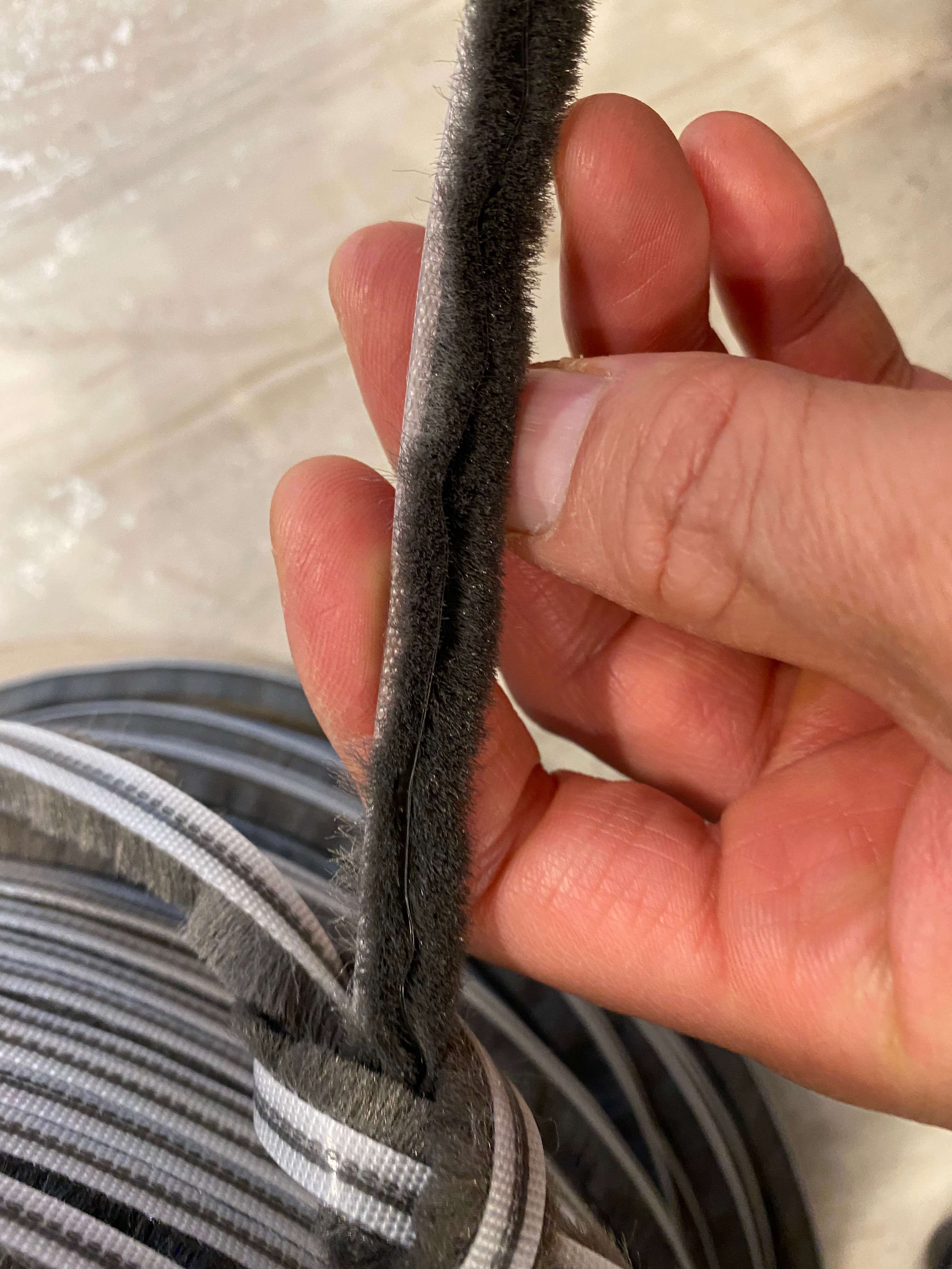 요건 교체하기 전 섀시에 달려있던 모헤어 모습과 뜯어낸 모헤어입니다. 길이는 5mm 제품이라네요.