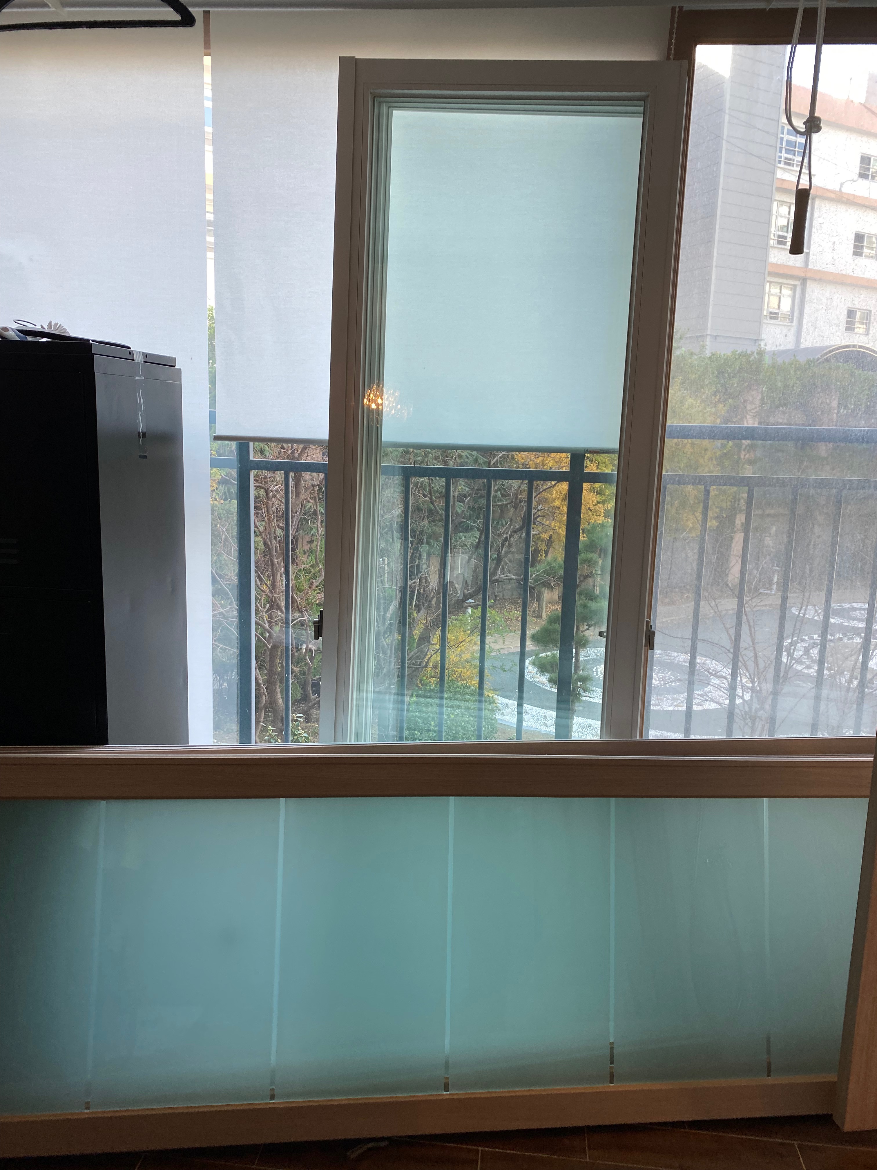 오전 10시에 사장님 방문하셨고 전날 베란다에 모든 짐들을 옮겨놔야 했습니다. 위 사진은 저희 집 안방 배란다 방향 섀시 모습입니다.