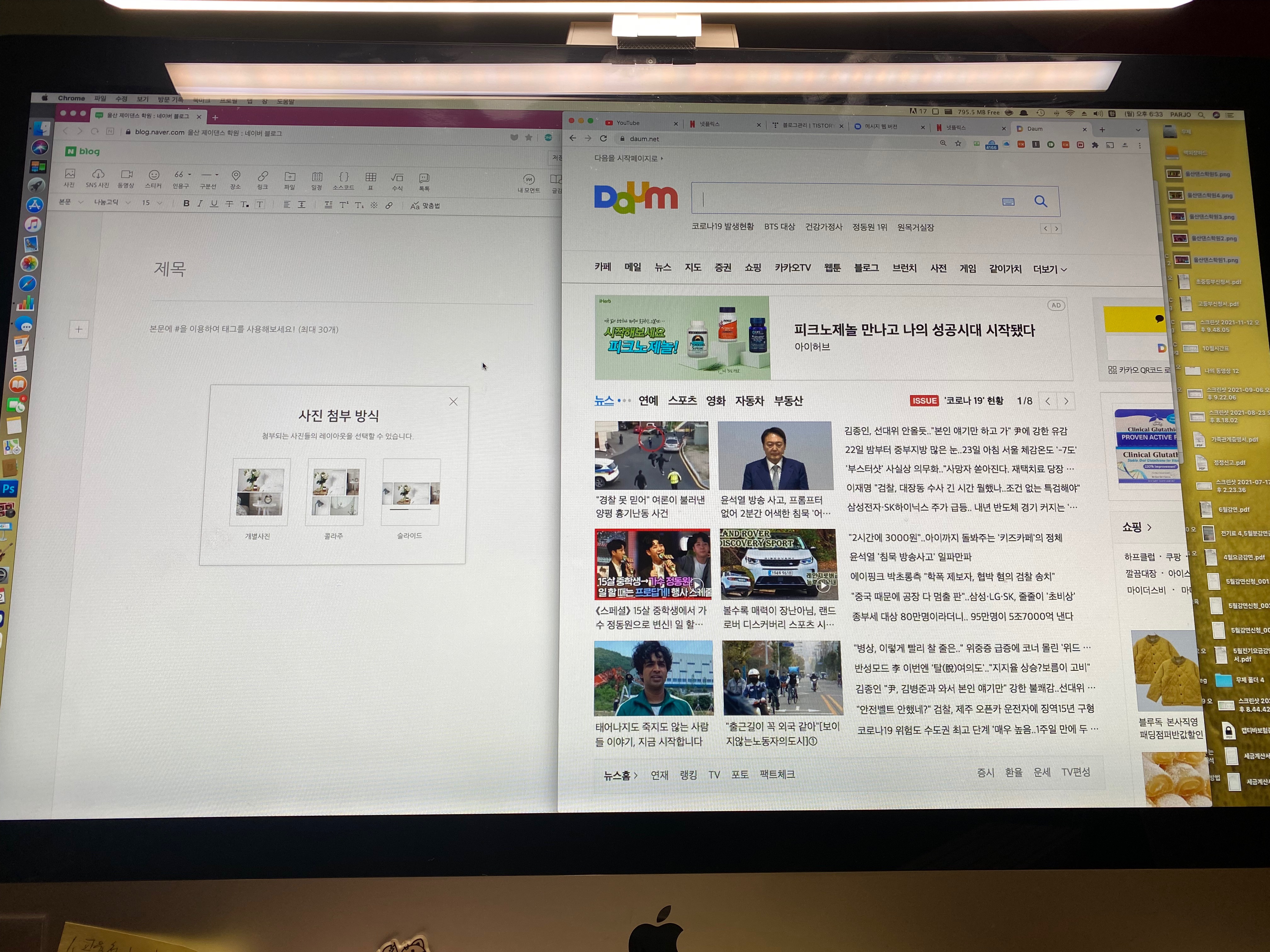 큰 기대를 안고 아이맥 상단에 설치를 하려는데....