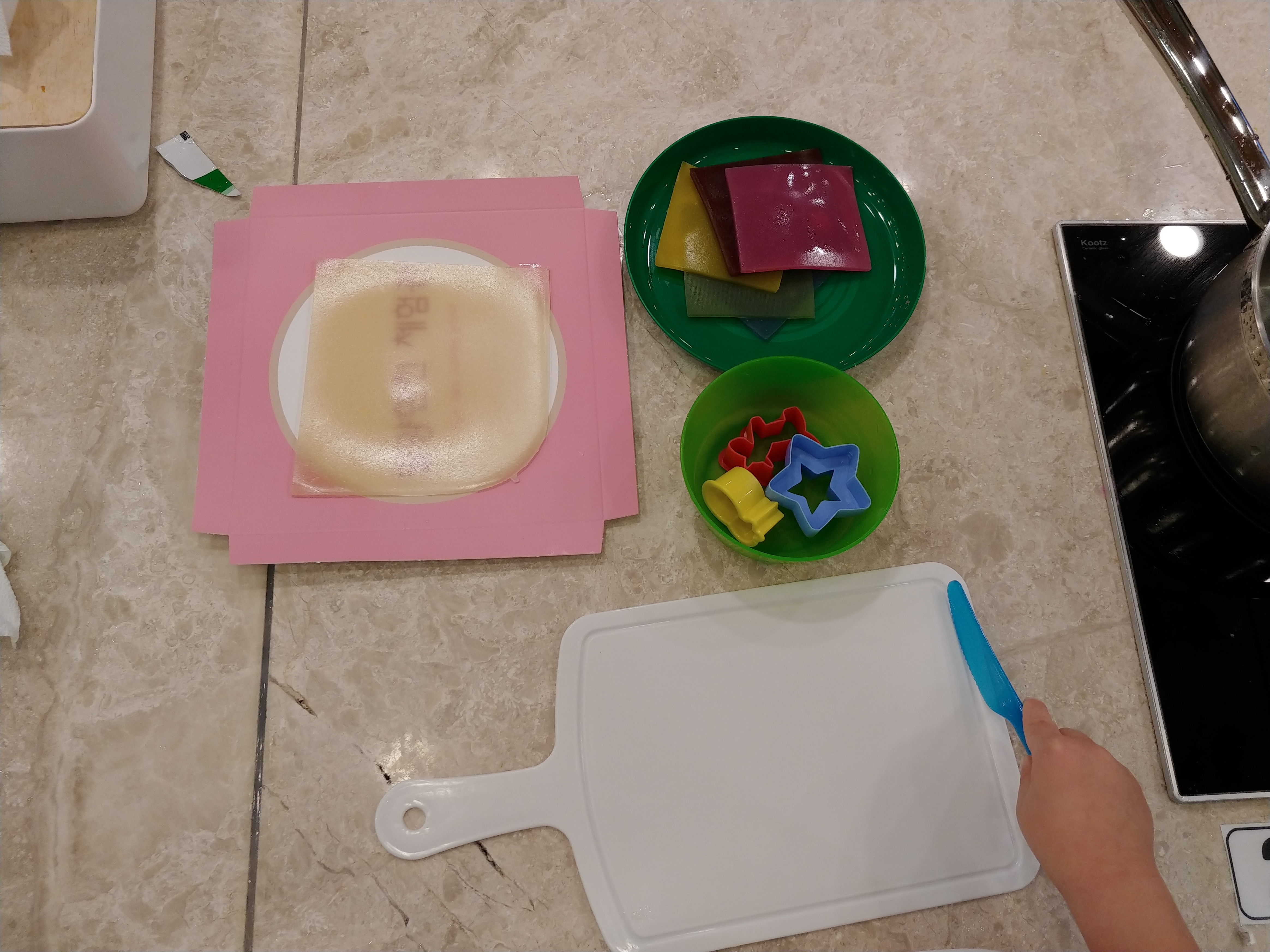 젤리 체험은 한천가루가 아니라 곤약 가루로 젤리를 만들었습니다. 곤약과 한천의 가장 큰 차이점은 곤약은 땅에서 나는 식물로, 한천은 바다에서 나는 식물로 만든다고 하네요.