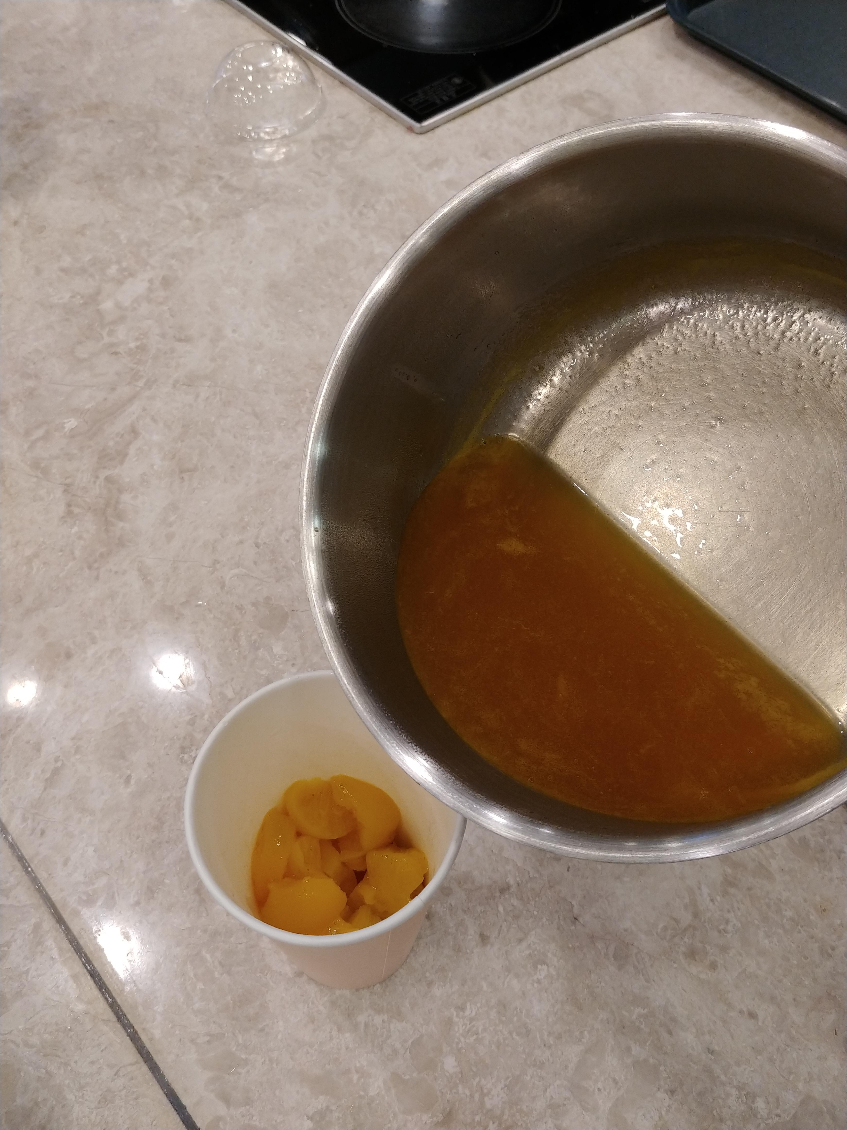 젤리 만드는 과정은 엄청 쉬웠습니다. 물을 넣고 곤약 가루를 넣고 끓인다. 통조림 과일을 먹기 좋게 썰어둔다. 끓었던 곤약 가루는 젓가락으로 천천히 돌려가며 식혀준다. 과일을 담아뒀던 용기에 곤약 젤리를 부어서 15분 동안 식힌다. 끝!!!