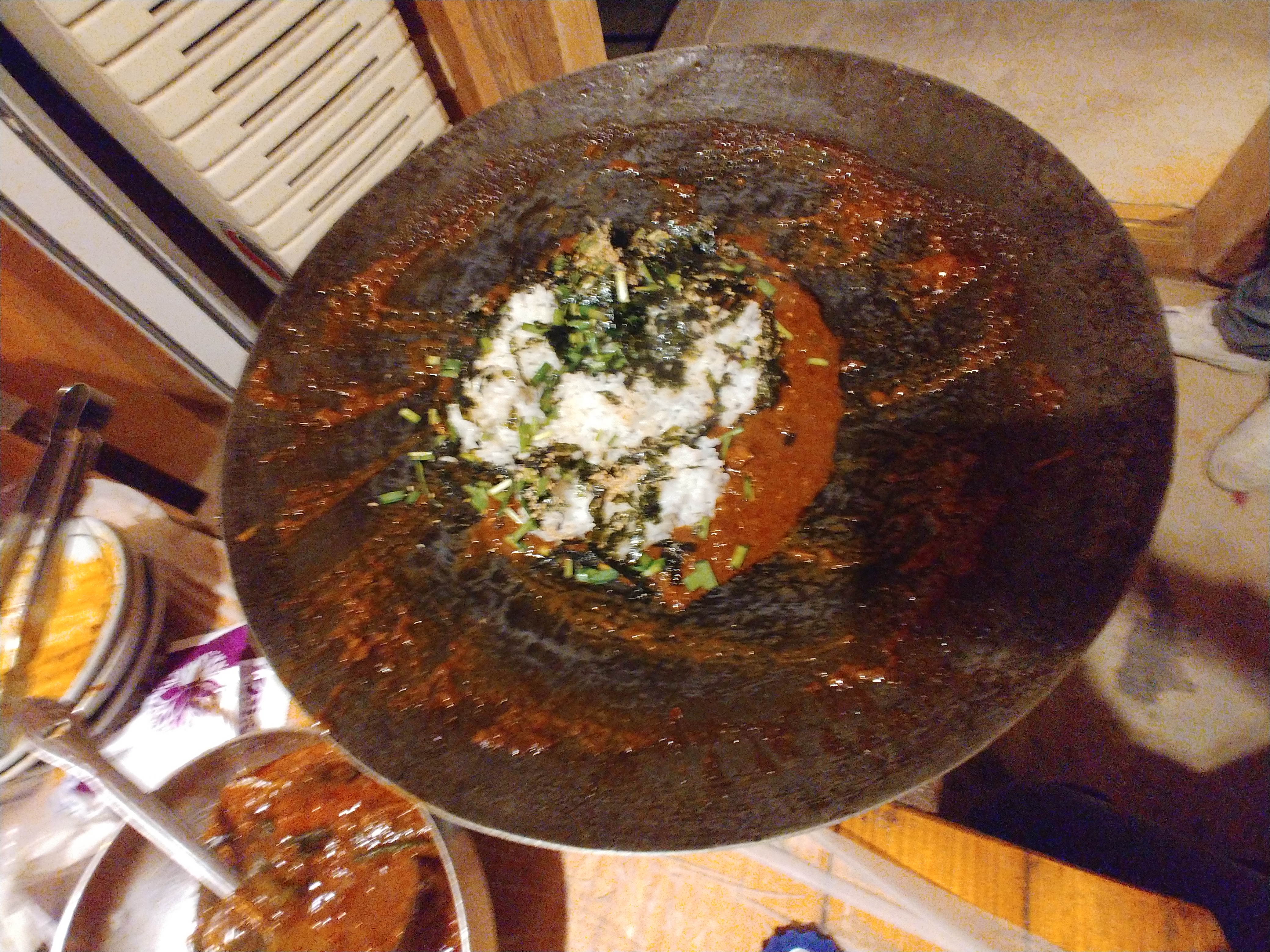 솥뚜껑 위에 토종닭 한 마리가 통째로~~ 얼큰한 매운 양념이 깊게 잘 배겨있어서 먹기 딱 좋았습니다. 라면사리 추가에 떡사리 추가는 기본!!! 양념 맛이 흡사 고등어조림 같았다는~ 사장님 센스로 아이들은 김 들어간 주먹밥으로 한 끼 뚝딱~ 해결했는데 아이들이 이젠 매운맛을 조금씩 적응하는 단계인지 양념 살짝 씻어서 닭 가슴살 주니 엄청 잘 먹더군요.