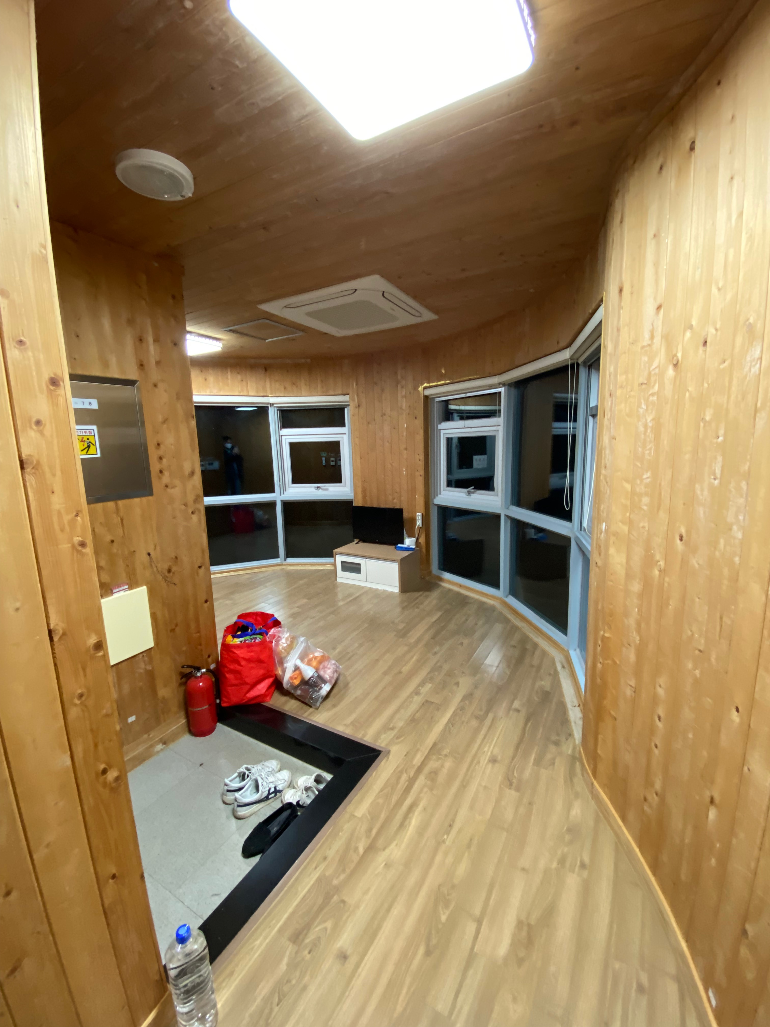 여기가 방송을 타면서 무척 인기 있는 숙소라고 했는데요, 한겨울에 묵기엔 완전 비추하는 곳입니다. 왜냐구요? 산 중턱에 자리 잡은 곳이라 그런지 외풍이 진짜 장난 아닙니다. 간만에 소싯적 강변에 무허가 집에서 살았던 추억이 되살아난달까요? 방바닥은 잘잘잘 끓습니다. 그런데 덥고 있는 이불을 살짝만 벗어나면 엄청 시럽습니다. 살을 파고드는 겨울바람이 매섭습니다. 그렇다고 이불을 오랫동안 덮지도 못합니다. 공기가 너무 차가워 히터를 틀면 또 너무 건조해져서 오래 틀지도 못합니다. 이래저래 이 숙소는 너무너무 불편한 곳입니다. 샤워도 큰 용기를 내어서 해야 합니다. 하룻밤 자고 나니 컨디션이 엉망진창입니다. 숙소 최대의 볼거리인 아침 해돋이는 사치였습니다. 밤새 뒤척이며 잠을 못 잔 관계로 새벽녘에 근근이 잠을 청해 눈 떠보니 해가 중천에 떠있었습니다.ㅠㅠ 온몸이 돌에 맞은 듣 삭신이 쑤시고 겨울 텐트에 잔 느낌이 들 정도로 햐~ 다시는 겨울 숙소로 이용하기 싫은 곳이었네요. 겨울, 초봄까진 완전 비추!!