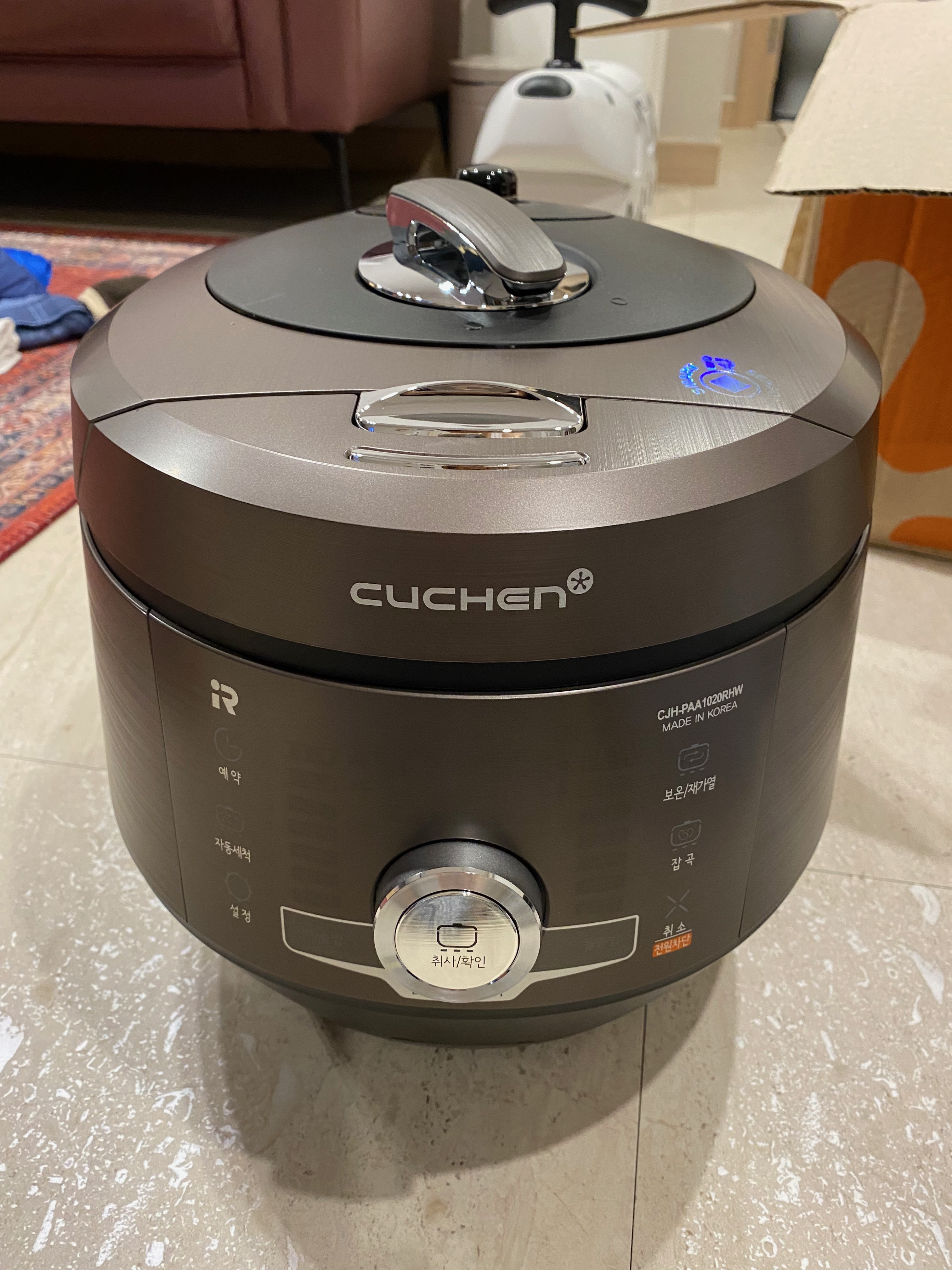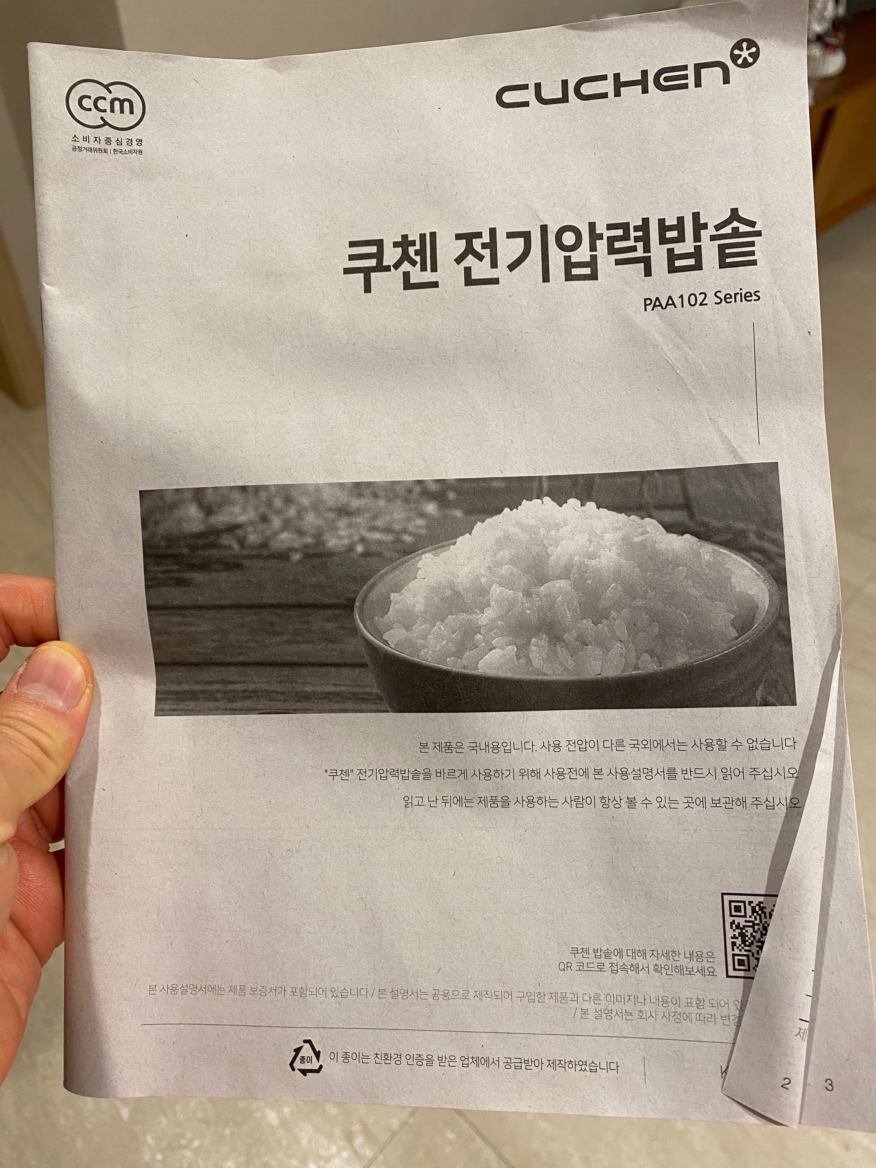 결혼 직전에 구입한 쿠쿠 전기밥솥이 이젠 한계에 다다른거 같아서 전기밥솥을 새로 알아보게 되었습니다. 세 식구지만 평소 아빠와 아들이 하루 두 끼 꼭 챙겨 먹는지라 6인용은 턱도 없어서 10인용으로 기본 옵션을 정하고 알아보다 쿠쿠도 좋지만 쿠첸 브랜드가 눈에 들어와 관련 상품을 알아보다 우연찮게 할인정보를 알게 되어 제법 할인을 받고 구입한 쿠첸 10인용 ir 압력밥솥 후기를 올려봅니다. PAA1020RHW 제품으로 기존 쿠쿠 밥솥보다 훨씬 다양한 성능의 고급 전기압력밥솥입니다. 쿠팡에 박스 훼손 상품으로 298천 원에 올라와 있는데 전 그것보다 좀 더 싸게 구입했습니다. 원래 가격은 328천 원 정도에 판매되는 상품입니다.