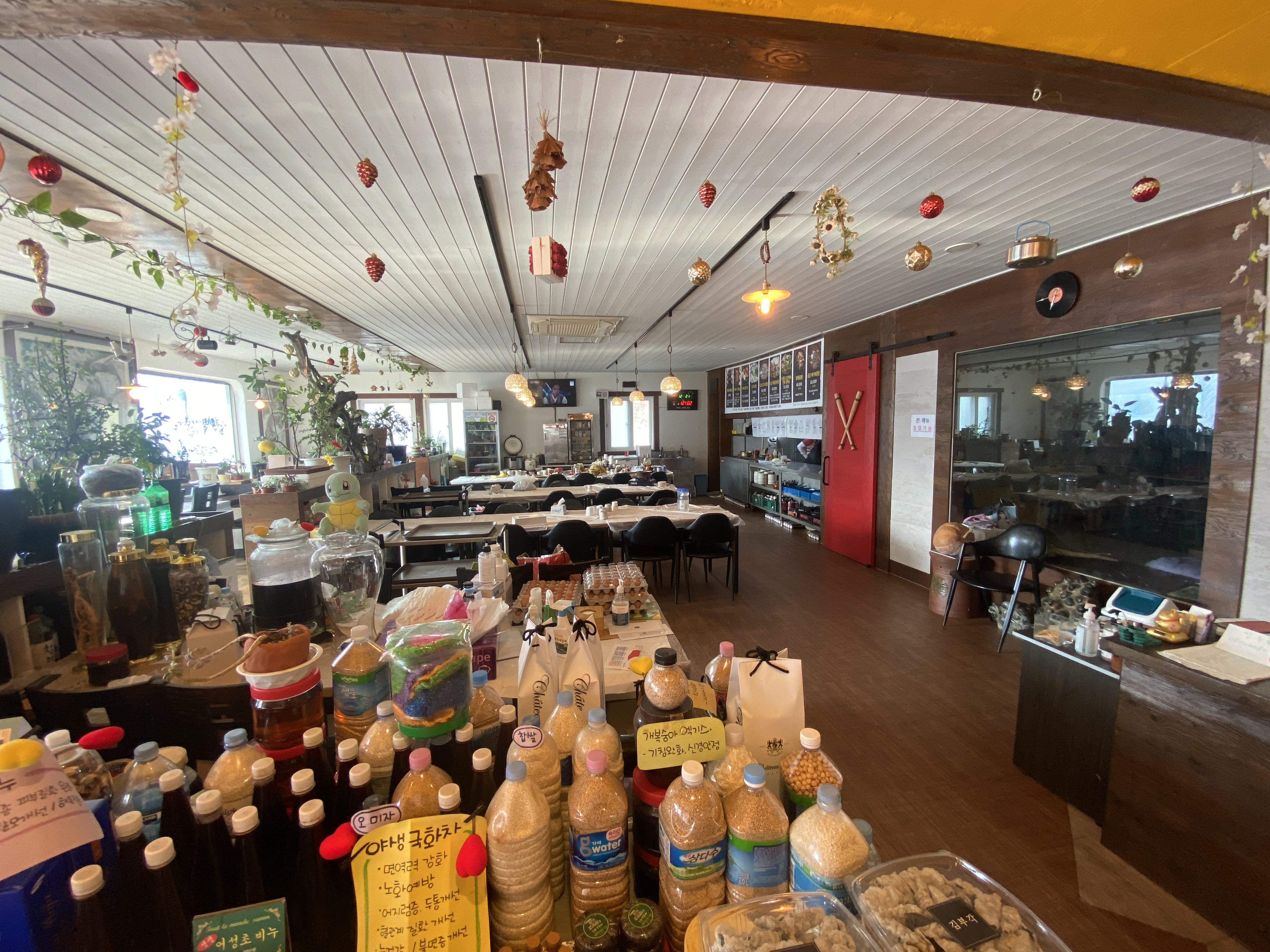 실내를 들어가니 더 특이했는데 여긴 한참 손님 많았을 때 단체 손님을 주로 받은 곳이 아닌가 싶은 느낌이 드는 식당이었답니다. 좌측 사진은 들어가면 바로 보이는 공간이고 우측 사진은 주인아주머니가 안내해서 우측으로 들어간 공간의 모습입니다. 입구엔 여러 가지 직접 담은 제품들을 팔고 있었는데요 관심 있으시면 하나 정도 구입해도 될듯합니다.