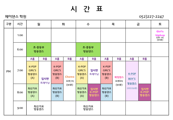 | [울산댄스학원] 2월 수업 시간표 안내 울산제이댄스 (2) | 2022.01.30 |