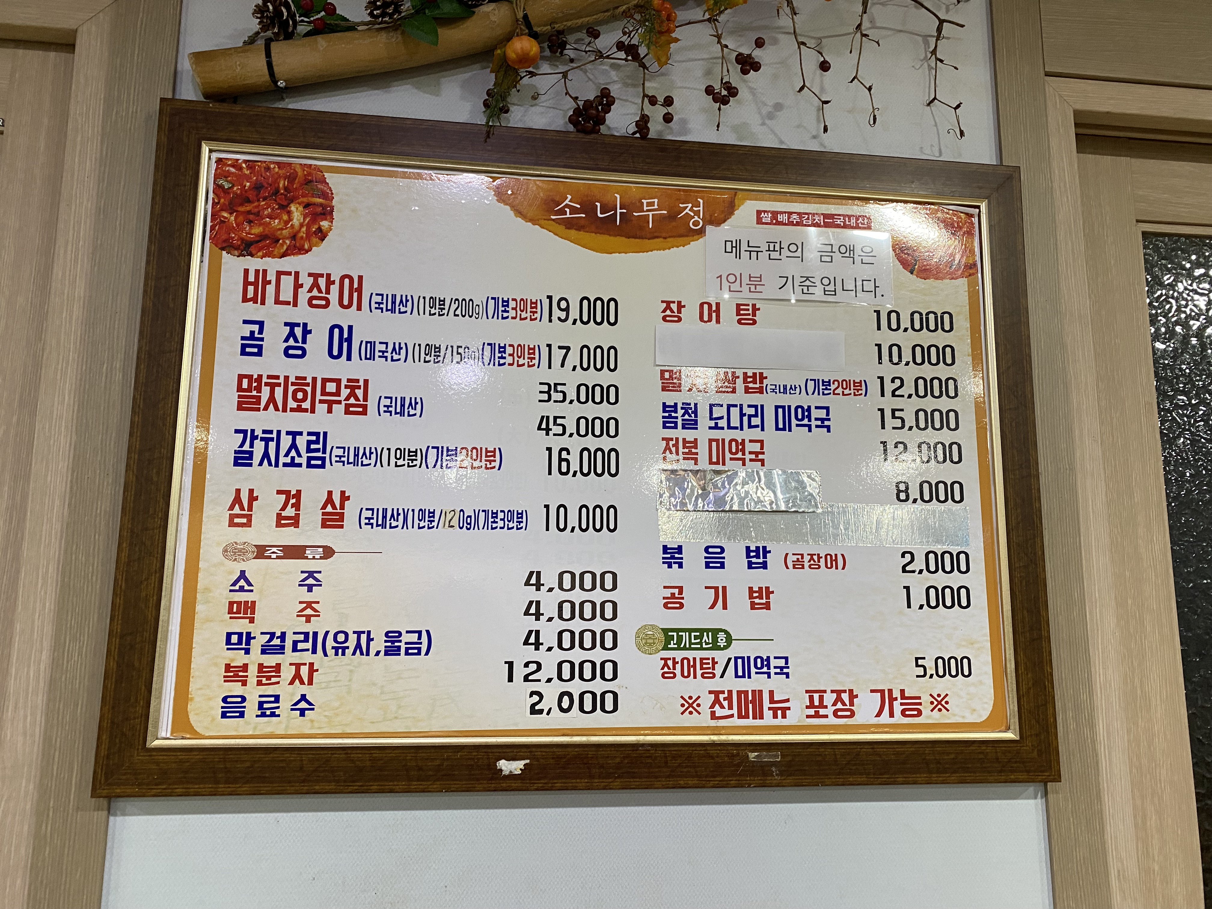 메뉴판은 테이블마다 마련되어 있지 않고 그냥 벽에 고정되어 있습니다.