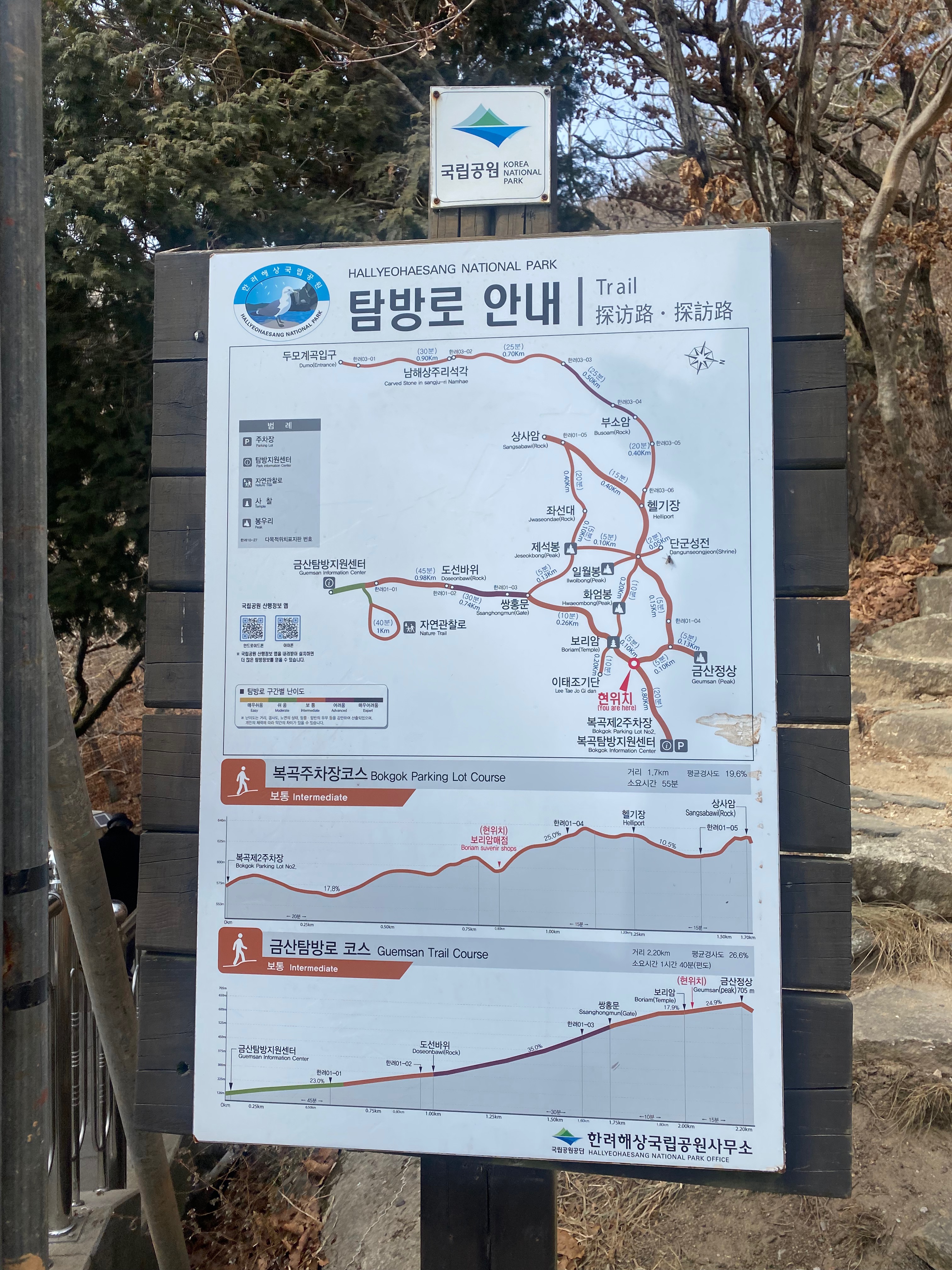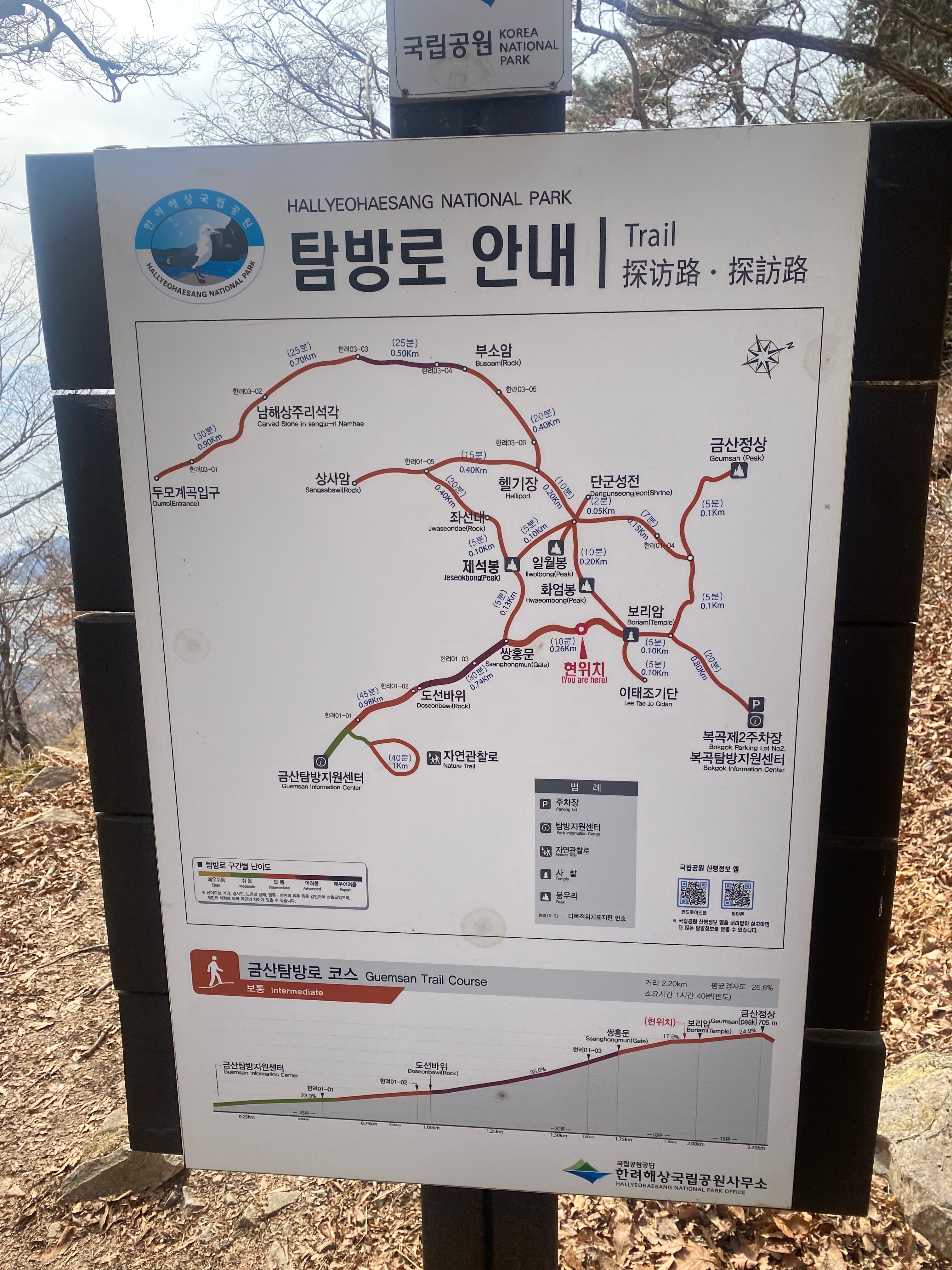 드디어 보리암에 도착! 입구에 탐방로 안내가 나와 있는데 금산 정상을 오르는 코스가 잘 나와 있습니다. 저희는 그냥 보리암으로~~