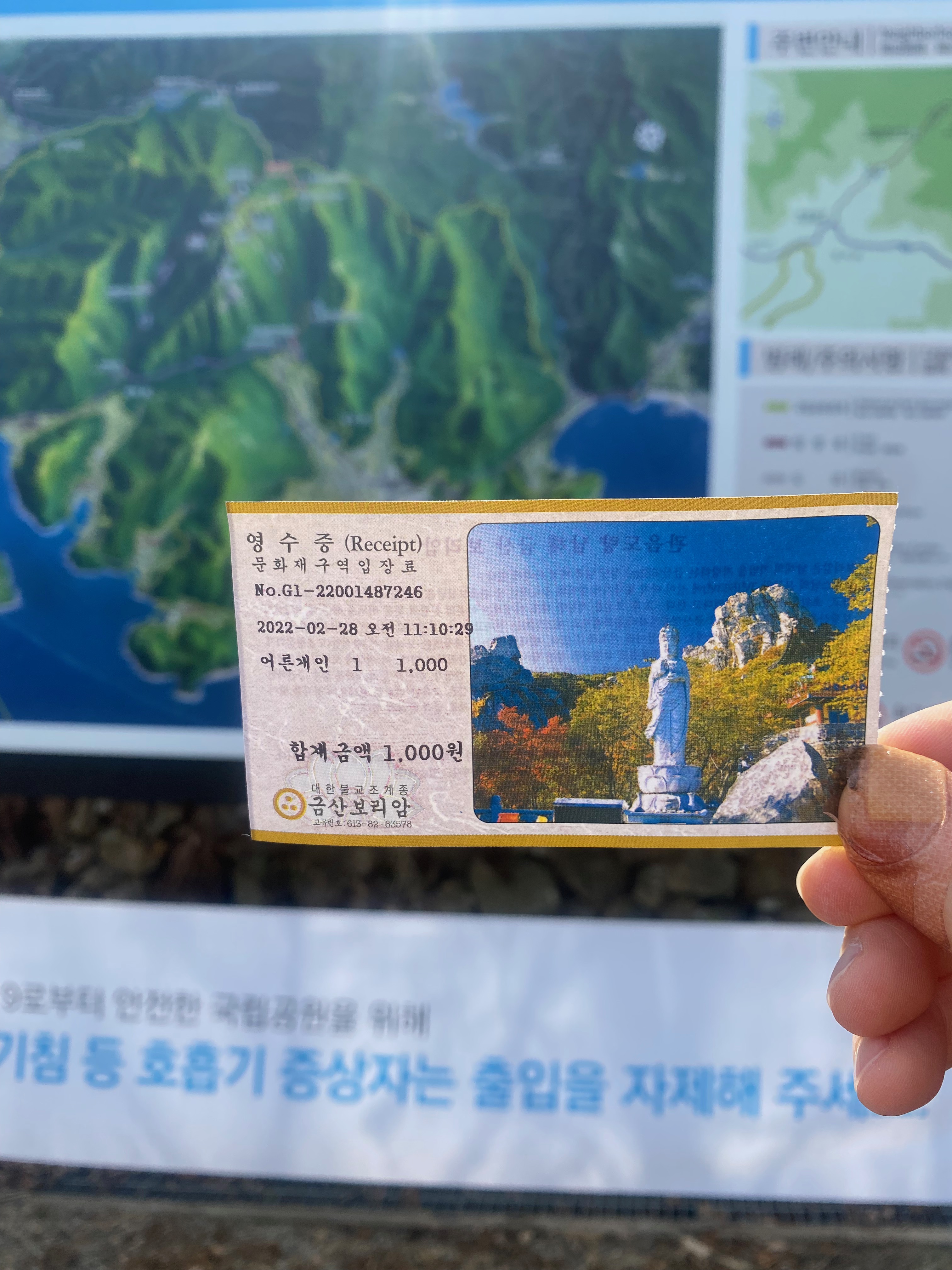 2주차장에 힘들게 도착해서 입장권을 끊고 본격적인 보리암 등반길에 나섰습니다. 입장권은 성인 1천 원입니다.