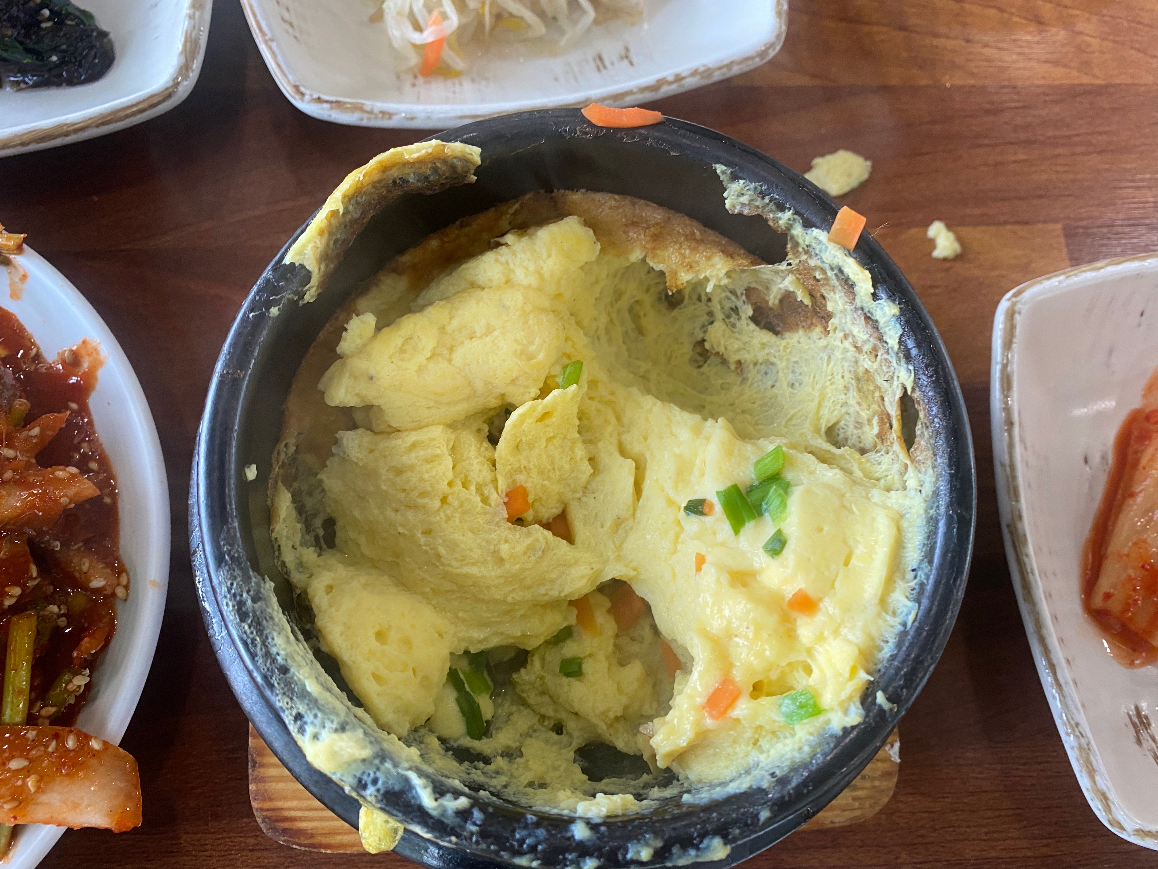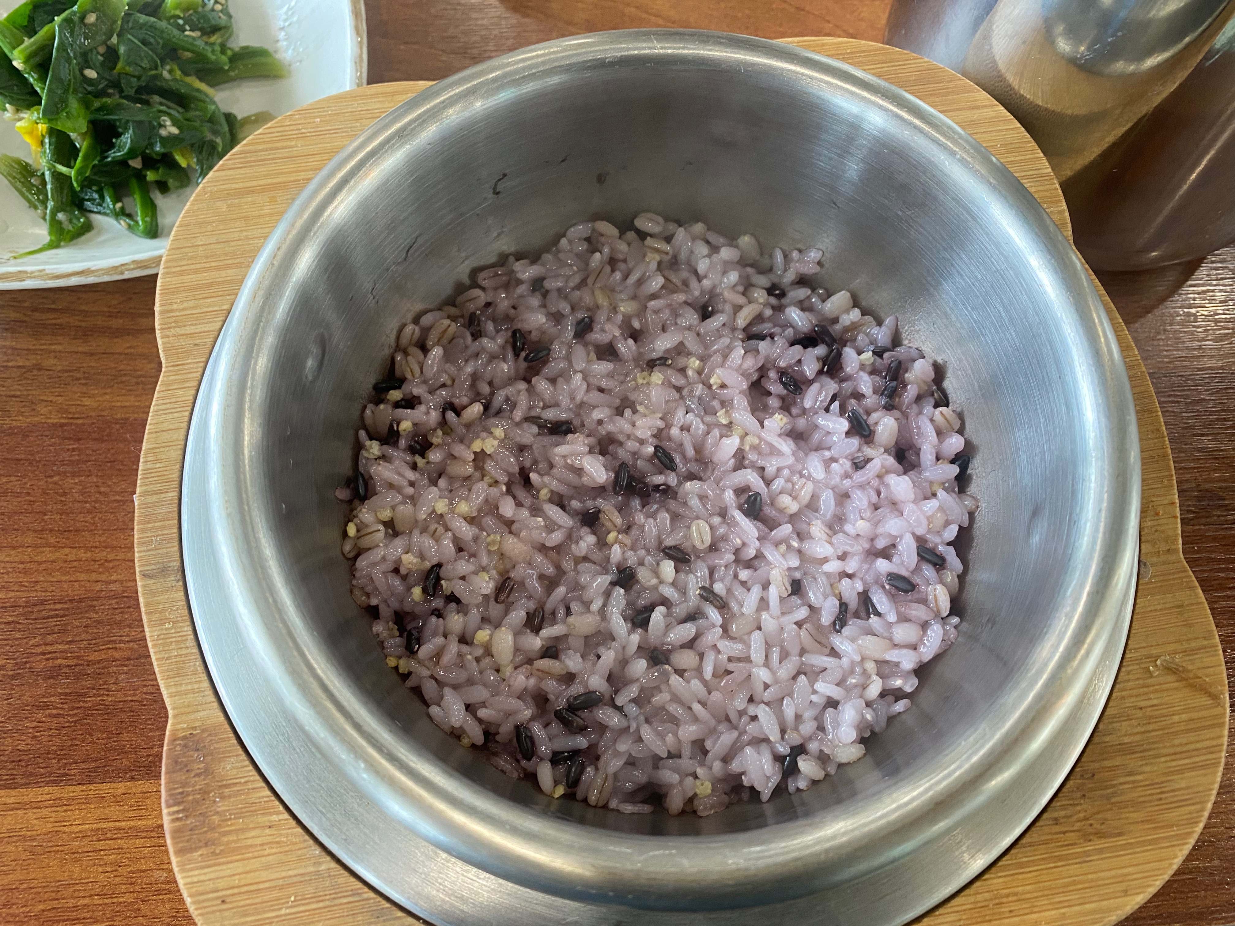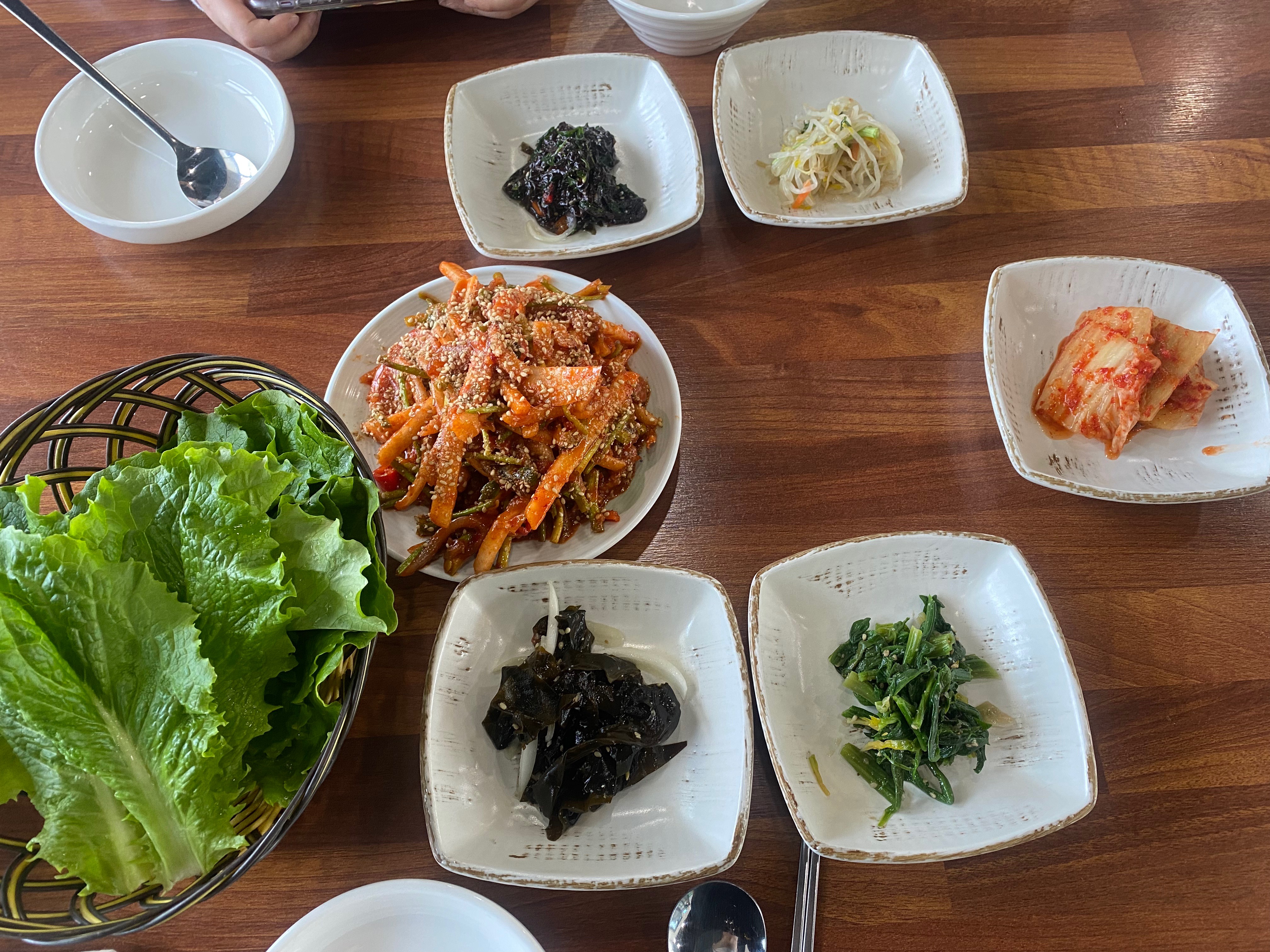 그렇게 맛보고 싶었던 멸치회무침과 멸치쌈밥 중에 가마솥 정식에는 멸치회무침이 나오니 반소원 성취랄까요? 캬~~ 때깔이 나 ~ 맛있겠지??? 함 잡숴봐~~ 하는 거 같습니다. 기본 밑반찬은 경상도니 뭐 이 정도면 보통입니다.