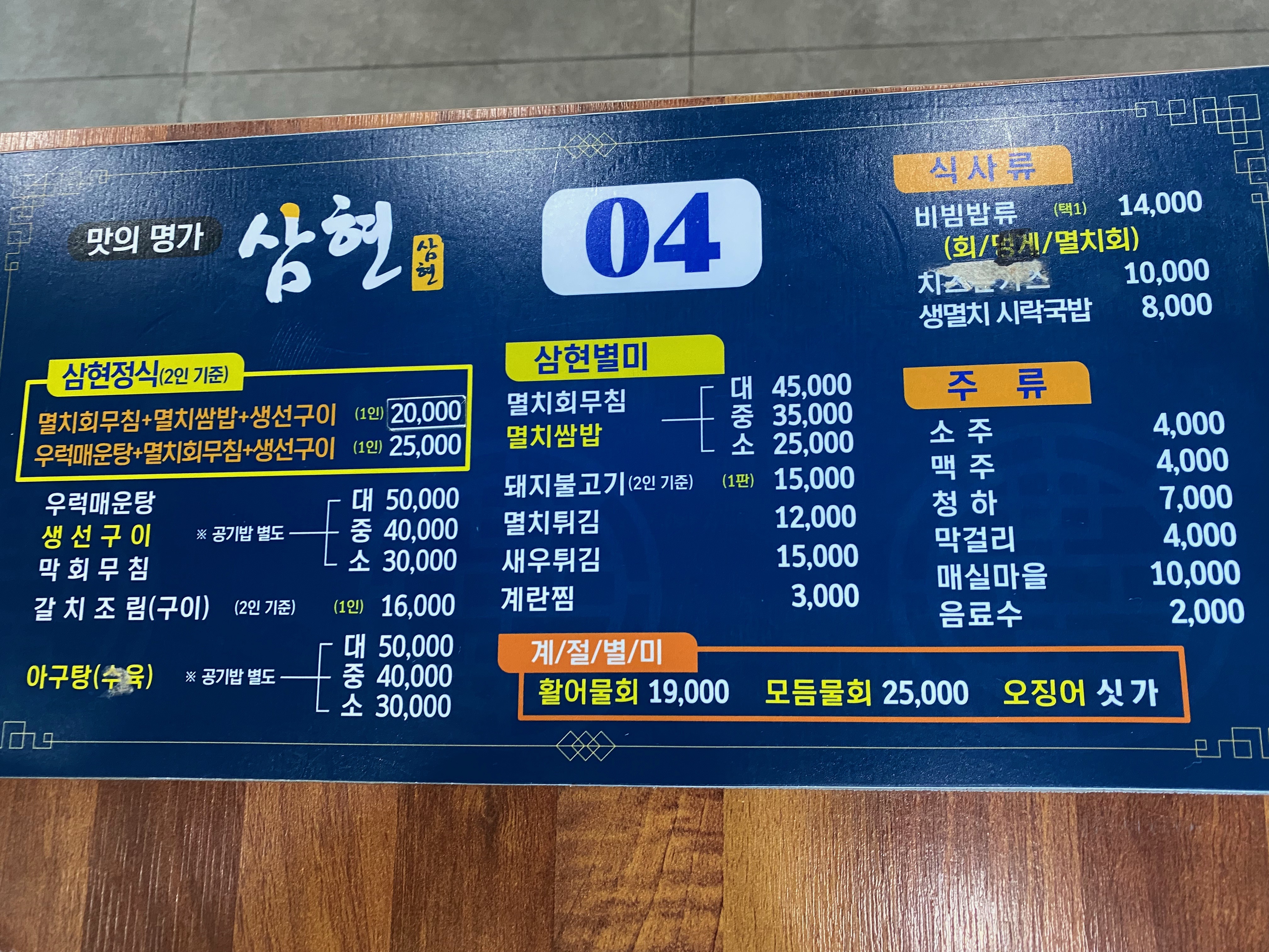 은모래 비치 입구를 기준으로 오른쪽 코너에 보면 삼현 식당이 바로 있습니다. 두시쯤 갔으니 식사시간이 지난 터라 홀에 사람이 한적하니 여유롭게 식사를 할 수 있었지요.
