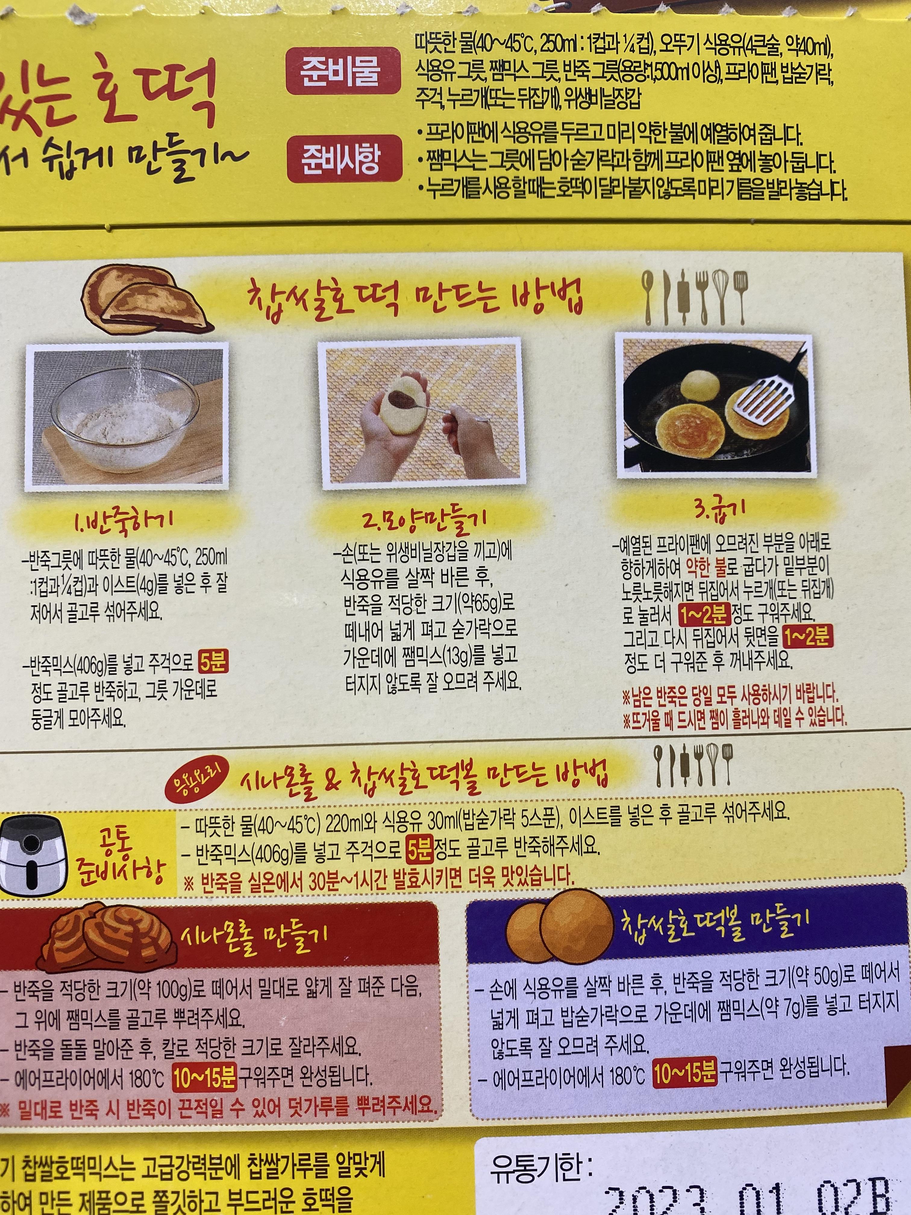 아이와 엄마의 일주일 간격으로 이어지는 코로나 확진으로 꼼짝없이 가족과 함께 하는 시간이 2주 넘게 이어지고 있습니다. 하루 종일 집에서 아이와 놀아주는 것도 점점 지쳐가고 있는데 엄마는 아파서 골골거리고, 아이는 놀아달라 수시로 얘길 하고~ 뭔가 특단의 대책이 필요했습니다. 오후엔 7살 아들과 바람을 쐬러 자전거를 타고 붕어빵을 사러 가기도 하고 동네 한 바퀴 도 돌고 호떡도 사가지고 오고 이벤트성 동네 나들이를 나갔었는데요, 하필 그 어느 날이었습니다. 호떡을 사러 가자고 했던 날인데 문제는 딱 그날 호떡집이 장사를 안 하는 날이었지요. 그때부터 7살 아들은 반드시 꼭 호떡을 먹어야 한다는 강한 의지와 행동으로 땡깡을 부리기 시작하는데 도저히 방법이 없더군요. 그래서 임기응변으로 홈베이킹을 할 수 있는 호떡믹스를 생각해 내고 '우리 호떡을 만들어 먹어볼까?' 아빠의 제안에 호떡을 못 먹어서 속상했던 마음이 순식간에 녹아내리고 천사 모드 발동~~!!! 초롱초롱 빛나는 눈동자로 '응!!!!'
