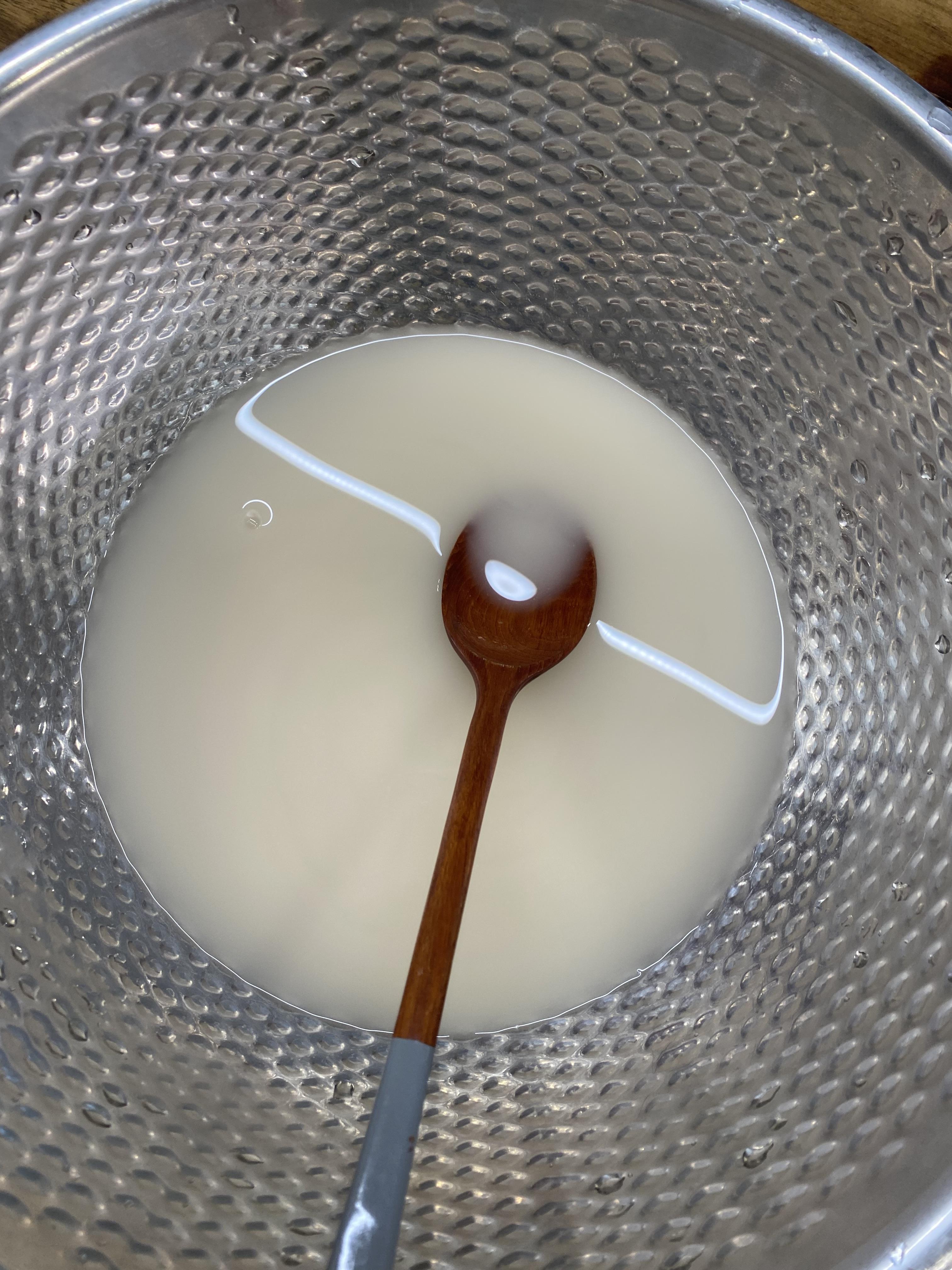 따듯한 물 250ml에 먼저 이스트를 넣어 잘 저어 줍니다.