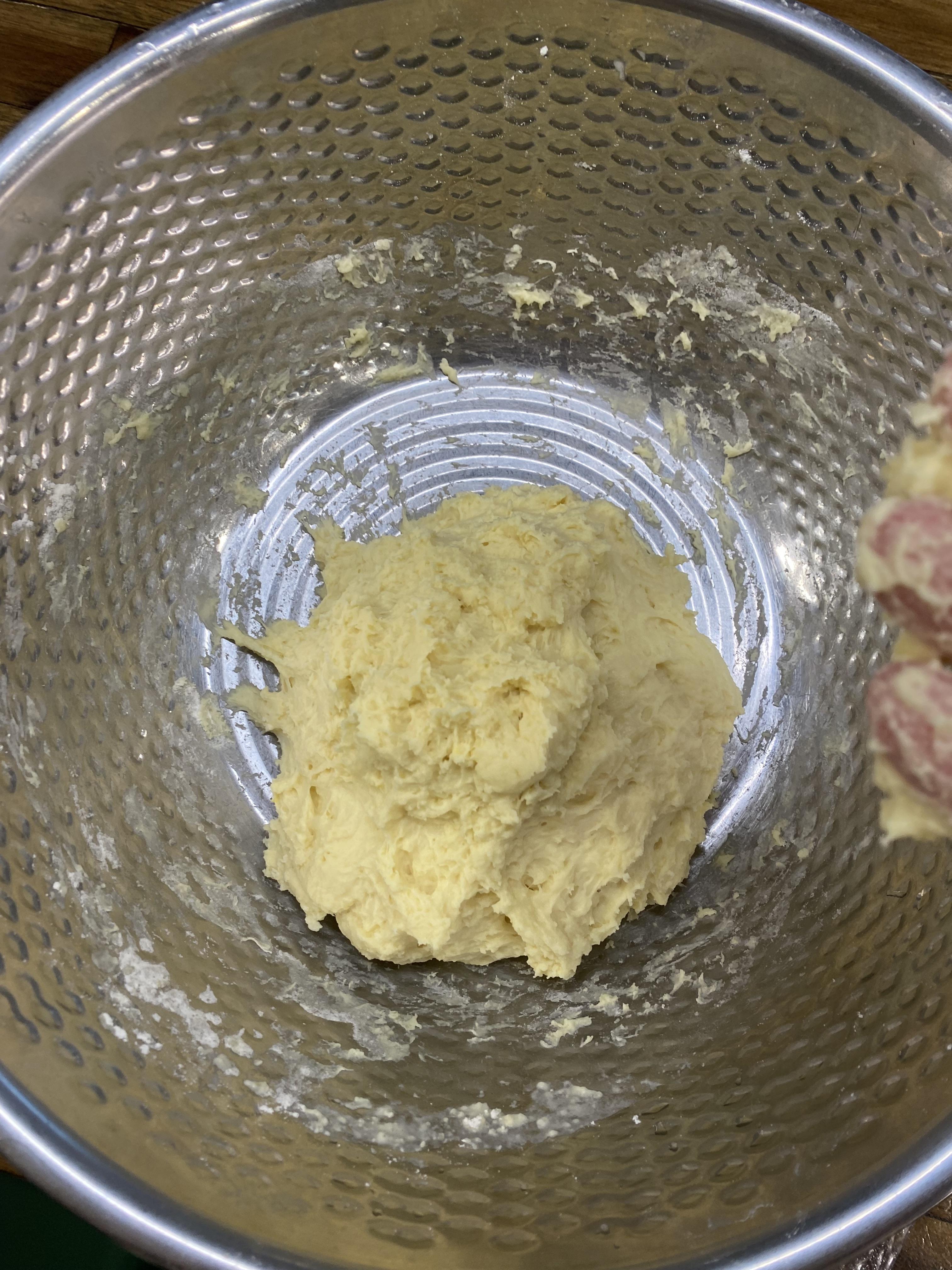 그다음 반죽 믹스 가루를 넣어서 섞다가 손으로 반죽을 해줍니다.