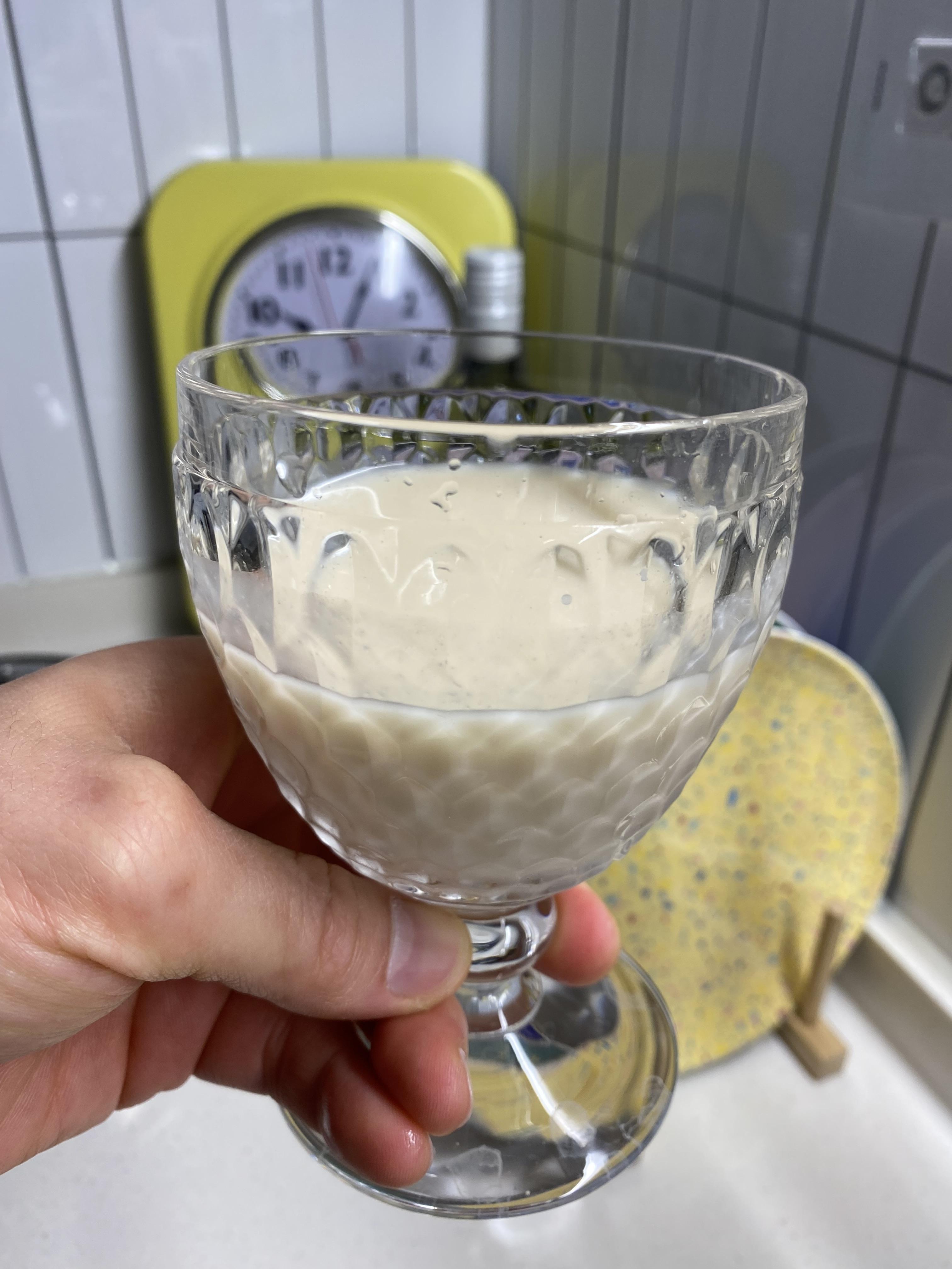한잔 따러낸 후 남은 해창막걸리를 열심히 섞어서 제 잔에다 따라봅니다. 이거 이거..... 걸쭉함이 남다릅니다. 마눌님의 한 잔이 그렇게 아쉬울 때가 없습니다. 요즘 막걸리는 인공감미료 넣지 않고 탄산감이 없는 막걸리가 제법 많이 나오는데요, 요 해창 막걸리도 역시 그러합니다. 100년 된 막걸리인데 요즘 트렌드를 따라가는 걸까요? 아님 원래 이런 막걸리 맛을 100년 가까이 유지해 온 걸까요? 지극히 개인적인 입맛으로 평가하기엔 마눌님의 그 한 잔으로 공평한 평가는 힘들겠습니다. 찐~해도 너무 찐합니다. 마시는 내내 마눌님의 딱 그 한 잔이 더했으면 어땠을까 생각이 간절합니다. 다음번에 구입을 하게 된다면 온전한 한 병으로 잘 섞어서 마셔봐야겠다는 진한 아쉬움만 더한 해창막걸리 후기였습니다. 12도 도수가 높아서 이거 한 병 마시고 술 취하면 어쩌지 살짝 두려움도 있었는데 생각보다 도수가 높다고 그 맛이 독한 맛은 아니니 그냥 편하게 잡수시면 되겠습니다. 일반 막걸리는 6도니 비교해 보면 요건 딱 두 배 높은 도수의 막걸리인데 그냥 6도짜리 막걸리와 별반 차이는 없었답니다.