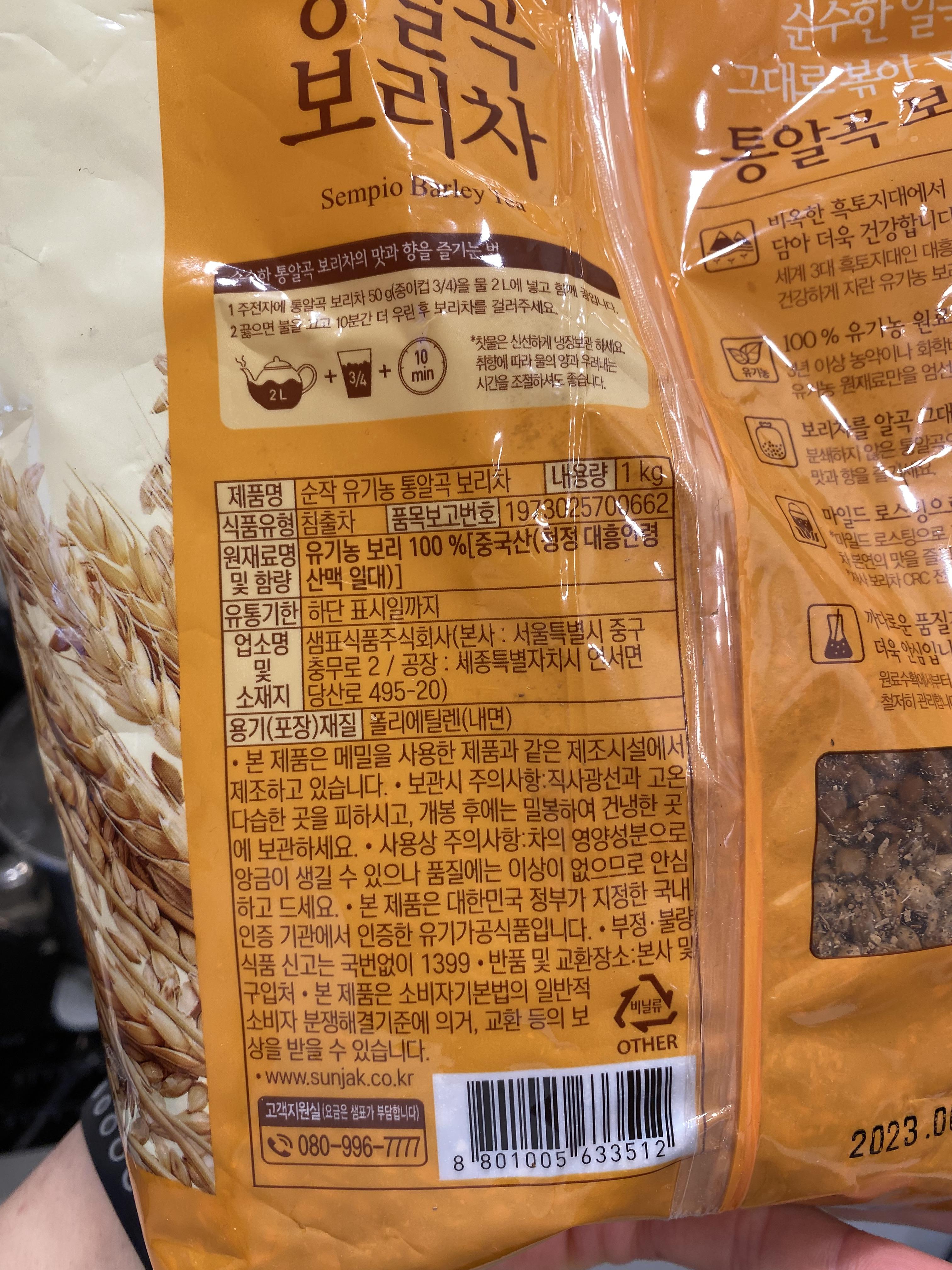 한 가지 아쉬운 점은 중국산 보리를 사용한다는 건데..... 그래도 유기농이까... 거기다 가격 경쟁력도 괜찮은 제품이니까~