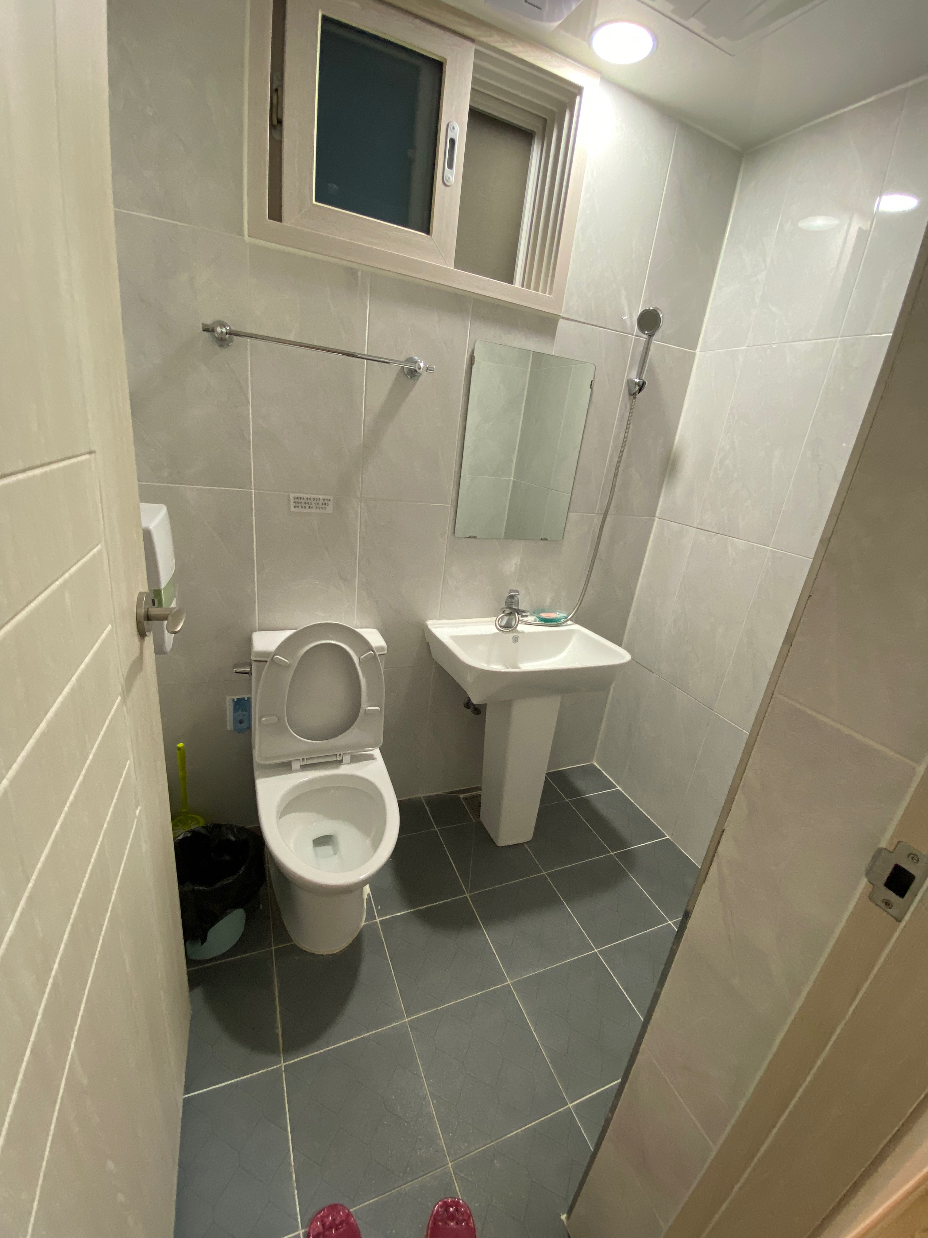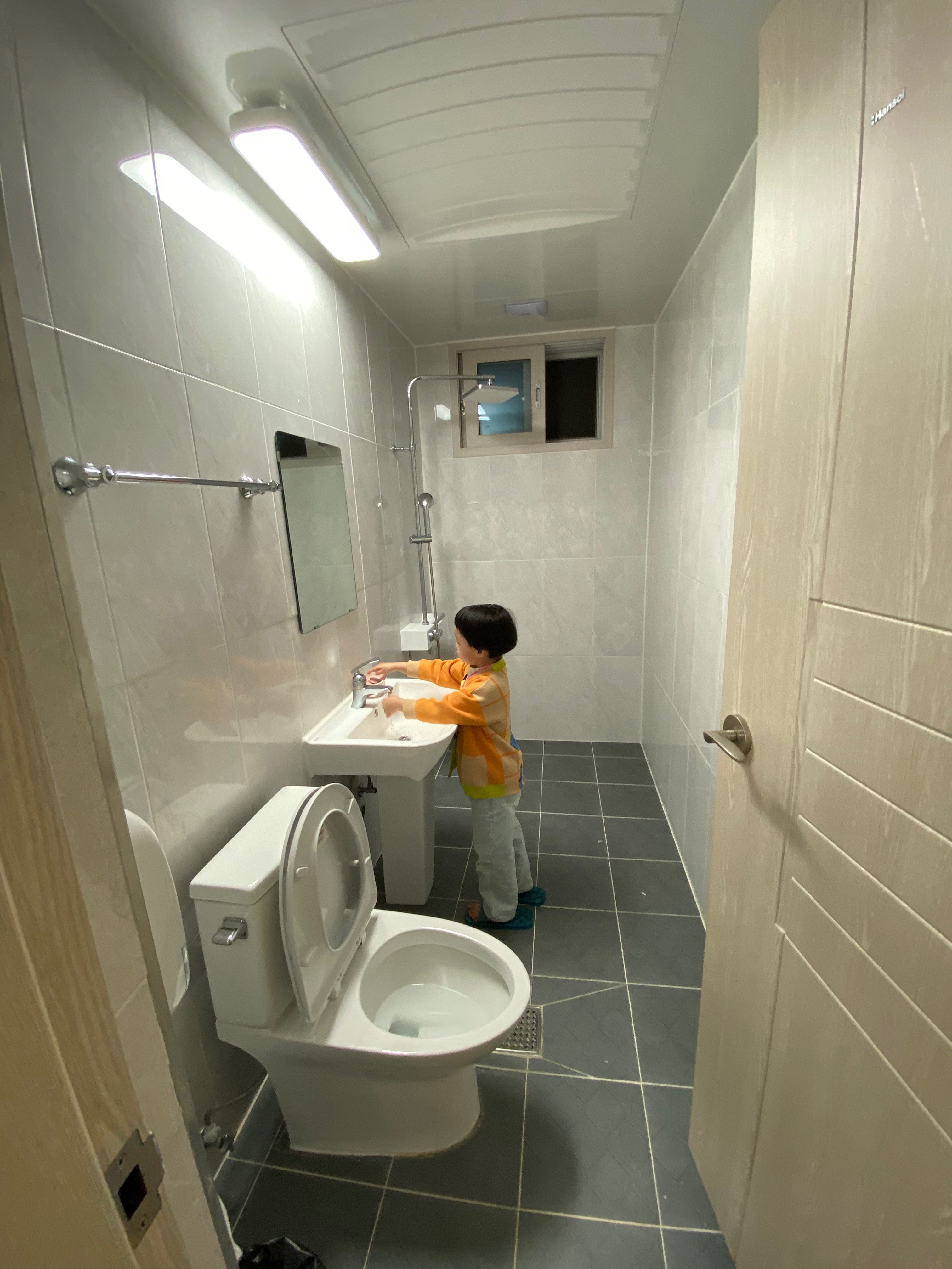 우측 큰방 사진인데요, 방안에 다시 작은 화장실이 있습니다. 욕실 겸용이라 두 가족이 함께 와도 화장실 걱정은 안 해도 됩니다.