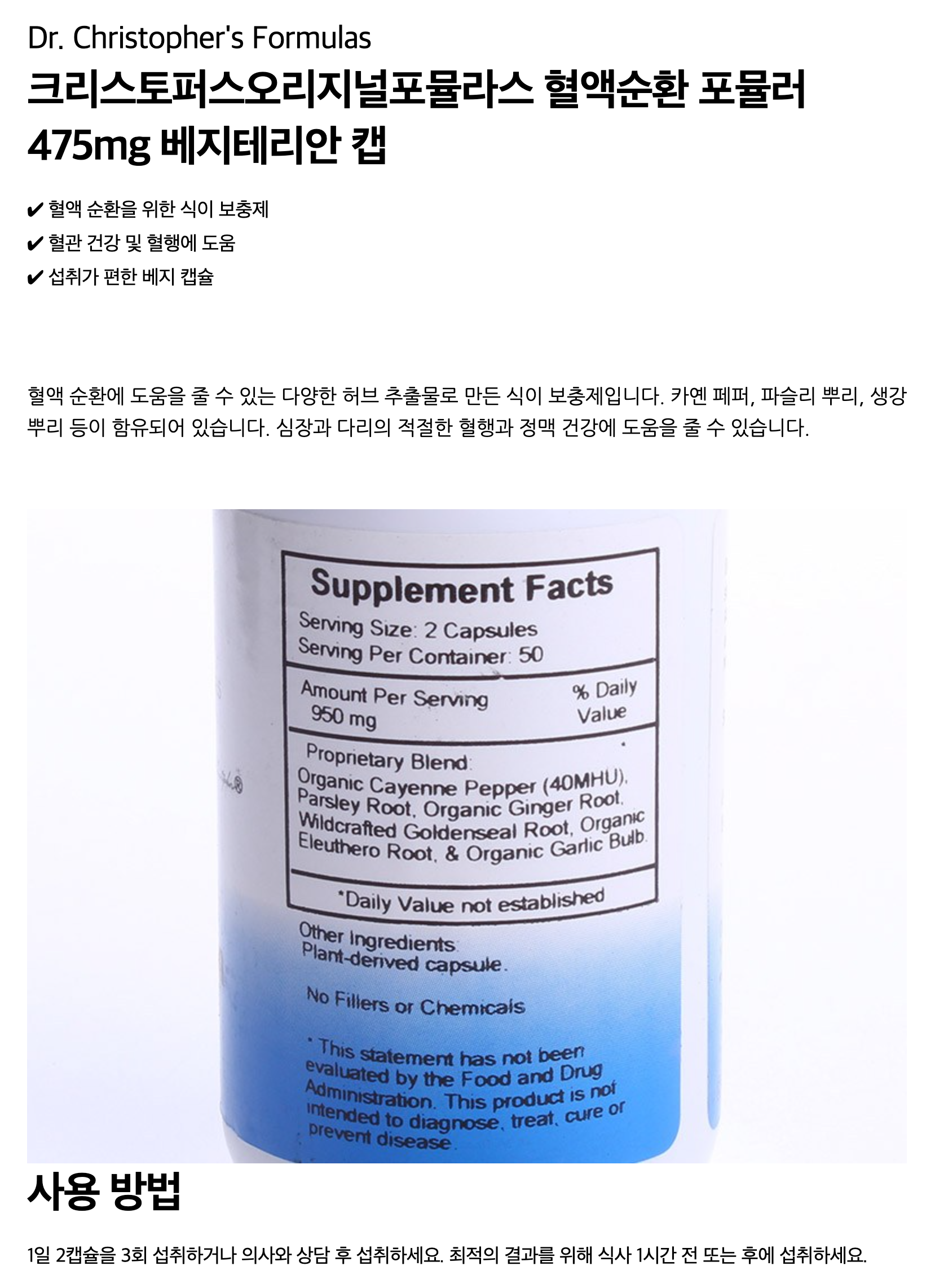 크리스토퍼스오리지널포뮬라스 혈액순환 포뮬러 475mg 베지테리안 캡