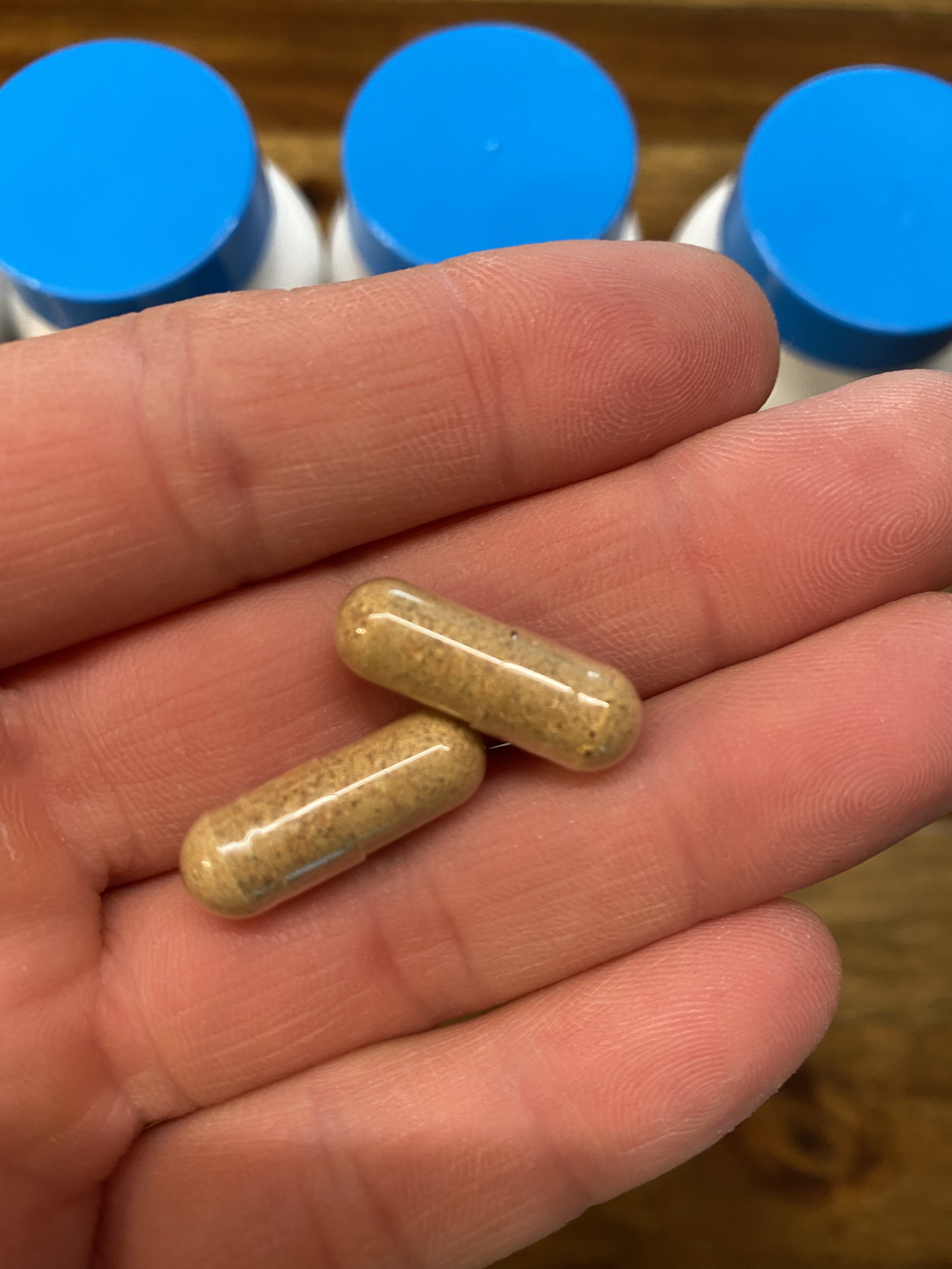 용기에 100알이 들어가 있고 설명서엔 하루 2캡슐을 복용하라고 되어 있지만 실제 아이허브에서 후기를 보면 하루 세 번 식후에 복용하는 내용이 있는데 그럴 경우 효과는 좋으나 속이 쓰린 부작용이 있다고 합니다. 그래서 전 와이프님께 하루 두 번 2캡슐씩 총 4캡슐을 복용하라고 알려줬습니다. 그래서 점심에 한번 그리고 자기 전 한번 이렇게 복용을 합니다.
