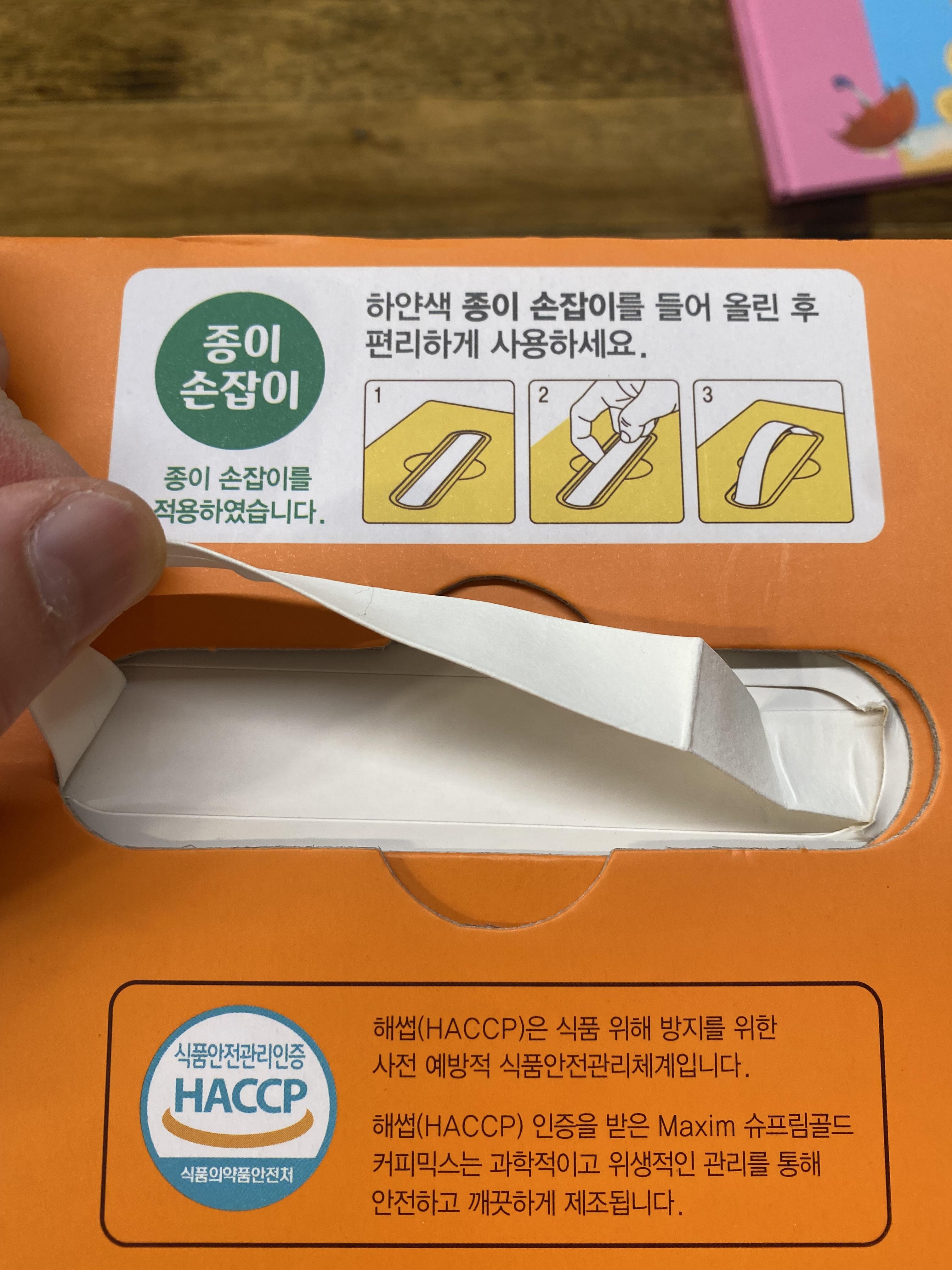 요즘 환경문제가 큰 이슈인데 슈프림 골드 커피믹스 제품은 손잡이 부분을 기존 플라스틱에서 종이 손잡이로 바꿨네요. 칭찬합니다^^ 뒷면 원재료가 뭐가 들어가 있는지 눈여겨보면 가장 특이한 게 라테 크림이 있습니다. 보통의 커피믹스에는 프리마라는 식물성 크림이 들어가 있는데 말이죠. 요 성분이 아마도 이 커피믹스의 맛을 더 업시킨게 아닌가 생각됩니다.