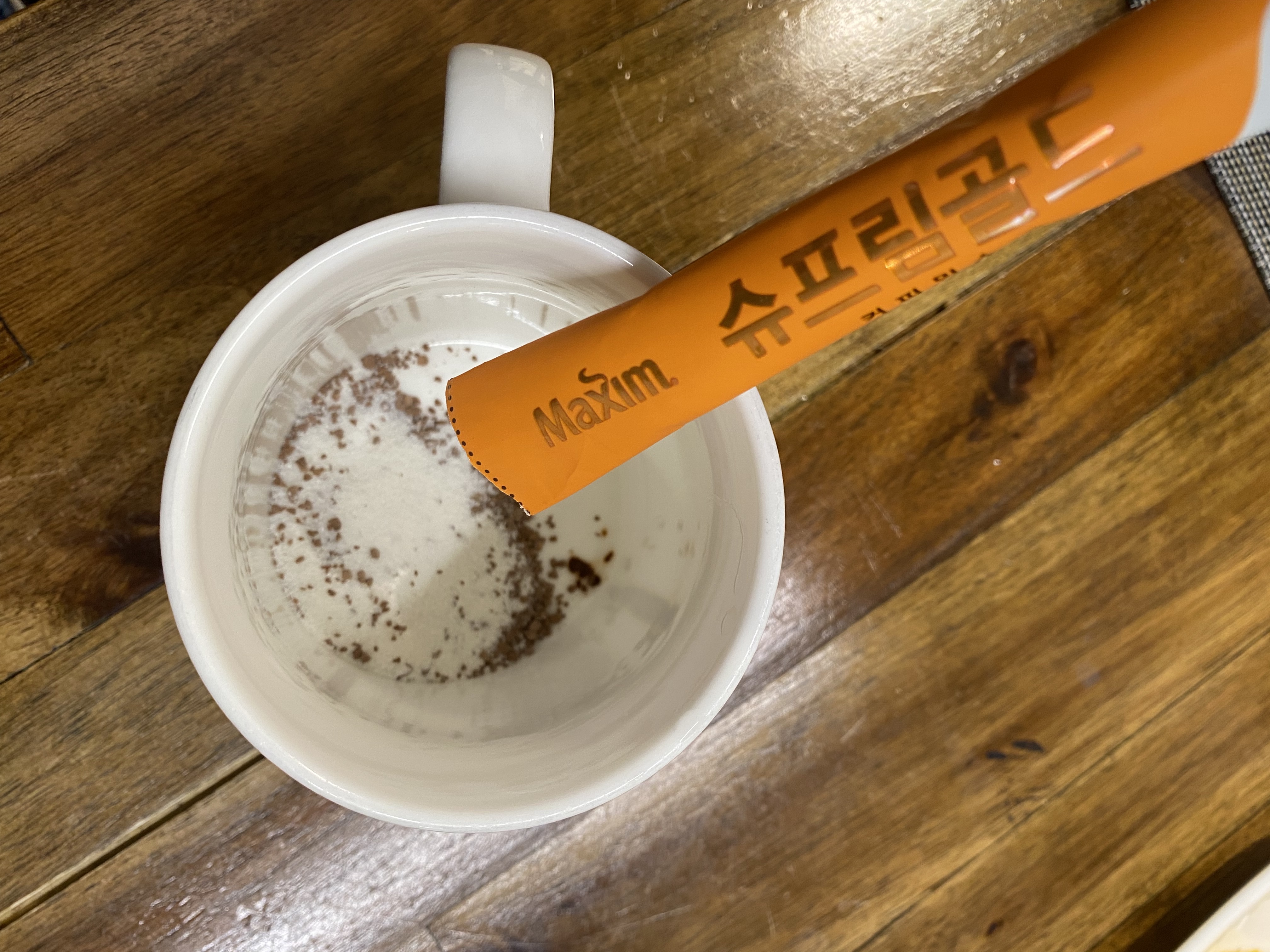 맛을 보기 위해 컵에 한봉을 뜯고 물을 타줍니다. 색깔은 일반적인 커피믹스와 별반 차이가 나질 않는데요, 맛은 제가 이제껏 먹어본 커피믹스 중 단연 최고의 맛을 선사합니다. 커피 향도 좋은데 혀끝에서 감칠맛 같은 게 쫙~ 끌어주는 게 마치 단 짠 음식을 먹을 때 그런 거와 비슷한 느낌입니다. 주변 사람들에게 요 커피믹스를 한 잔씩 타주는데요 대부분 동일한 반응을 보입니다. 와~ 이거 맛있다! 디게 찐하고 맛있네. 이러거든요. 일반적인 커피믹스는 한 모금 마시면 첨 혀에서 느껴지는 맛은 좋은데 목 넘김 할 때 뒷맛은 향도 없고 그냥 꿀꺽 넘어가고 더 이상 뭔가를 땡기게 만드는 그런 맛이 하나도 없거든요. 근데 슈프림 골드는 첫맛도 향이 좋은 데다 목 넘김을 하면서 훅 땡기는 감칠맛이 강하게 작용해서 계속 쩝쩝거리게 된답니다. 집에서 캡슐커피로 아침잠을 깨우는 게 일과의 시작이었는데 당분간은 캡슐커피가 생각이 안날 예정입니다. 무조건 두봉을 넣어서 모닝커피로 즐기고 있는 중이지요. 이제 커피믹스는 슈프림 골드로 대동단결할 때가 된 게 아닌가 생각됩니다. 모카골드야 그동안 수고 많았다. 이제 은퇴해도 되긋데이~^^