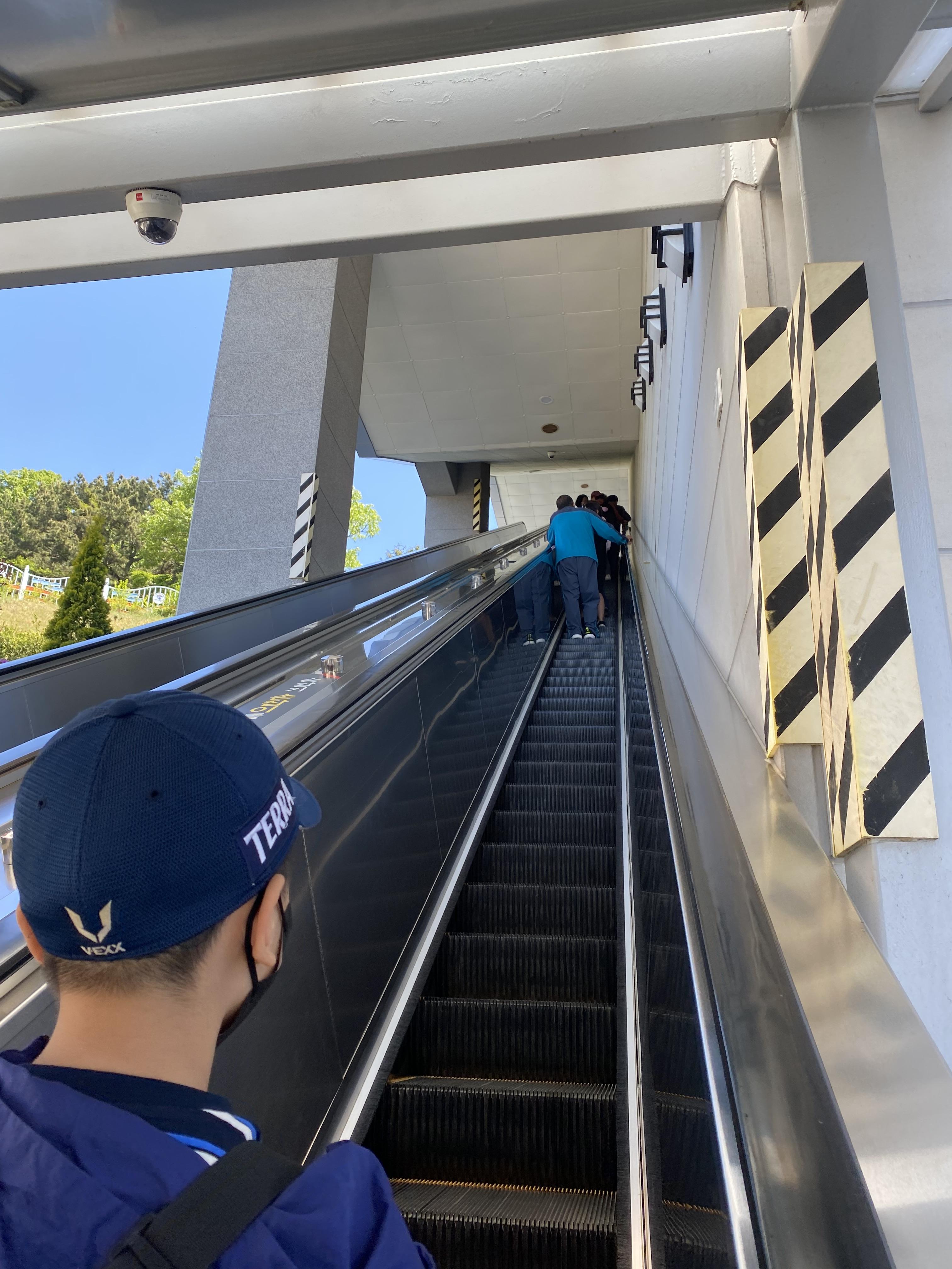 대방 정류장 케이블카를 이용하기 위해서는 총 두 번의 에스컬레이터를 이용해야 하는데요, 입장권 구입하는 곳에서 가파른 에스컬레이터를 타고 올라가면 케이블카 타는 곳 입구가 나옵니다.
