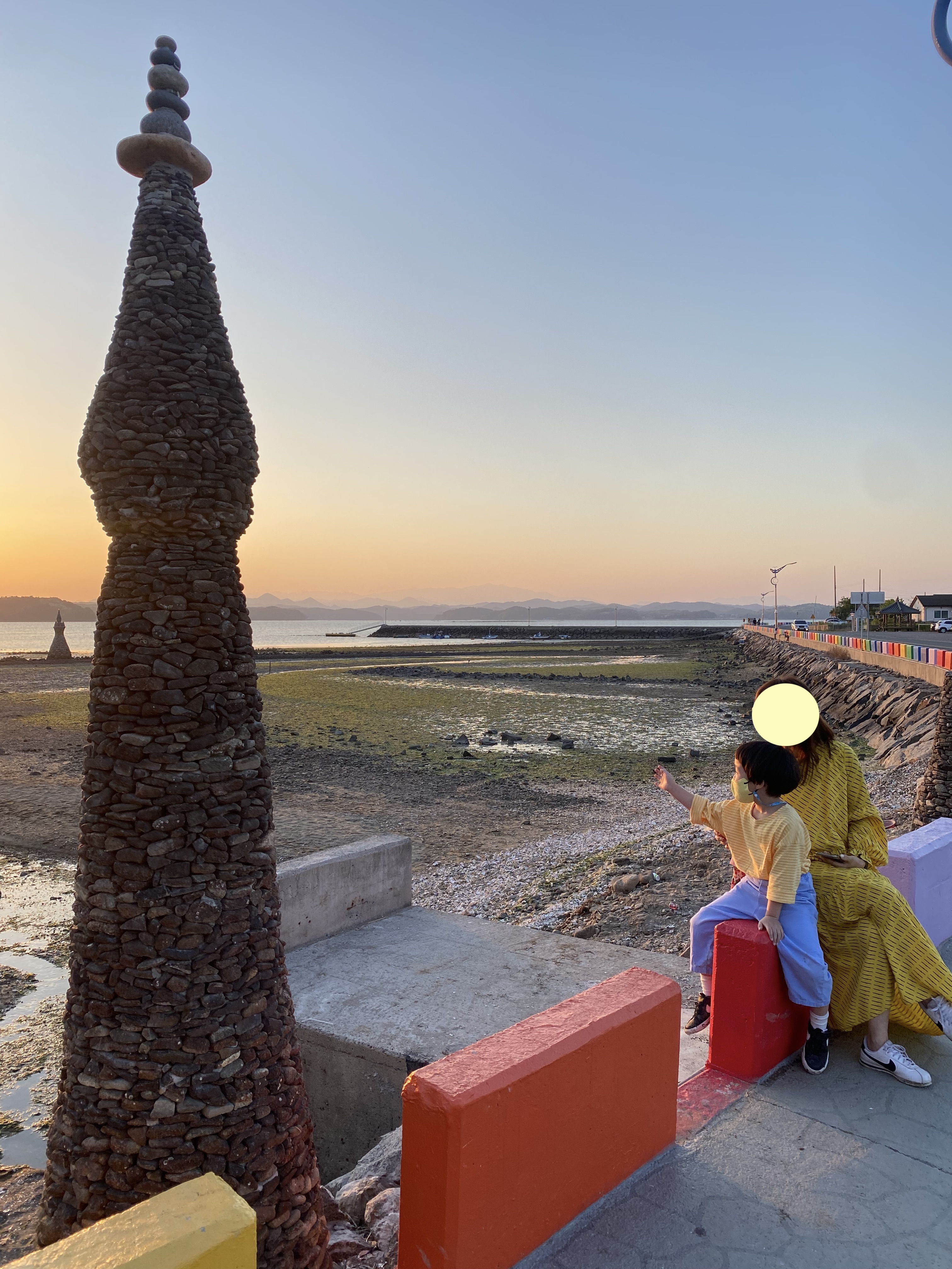 해가 지고도 한참 이어지는 붉은 노을빛이 운치를 더해줍니다. 그 뒤로 저희는 해안도로를 타고 계속해서 일몰 드라이브를 즐겼었는데요, 사천 여행의 피날레는 바로 일몰 해안도로 드라이빙 코스입니다. 무조건 즐겨보세요. 계속해서 해안도로로 타고 가다 보니 결국 사천공항 방면으로 이어졌는데요 너무너무 멋진 길입니다. 질퍽한 갯벌도 나오는데 거기서도 포토존이 있어서 사진을 몇 장 찍었는데 매우 매우 뷰티풀 한 뷰를 한참 즐기다가 울산으로 돌아왔답니다. 해안도로 드라이빙을 거의 한 시간 넘게 했던 거 같습니다. 남해로 넘어가는 관문인 사천 바다가 저희 가족에겐 남해와는 또 다른 소박하면서 풍성한 추억거리를 남겨준 여행이었습니다.