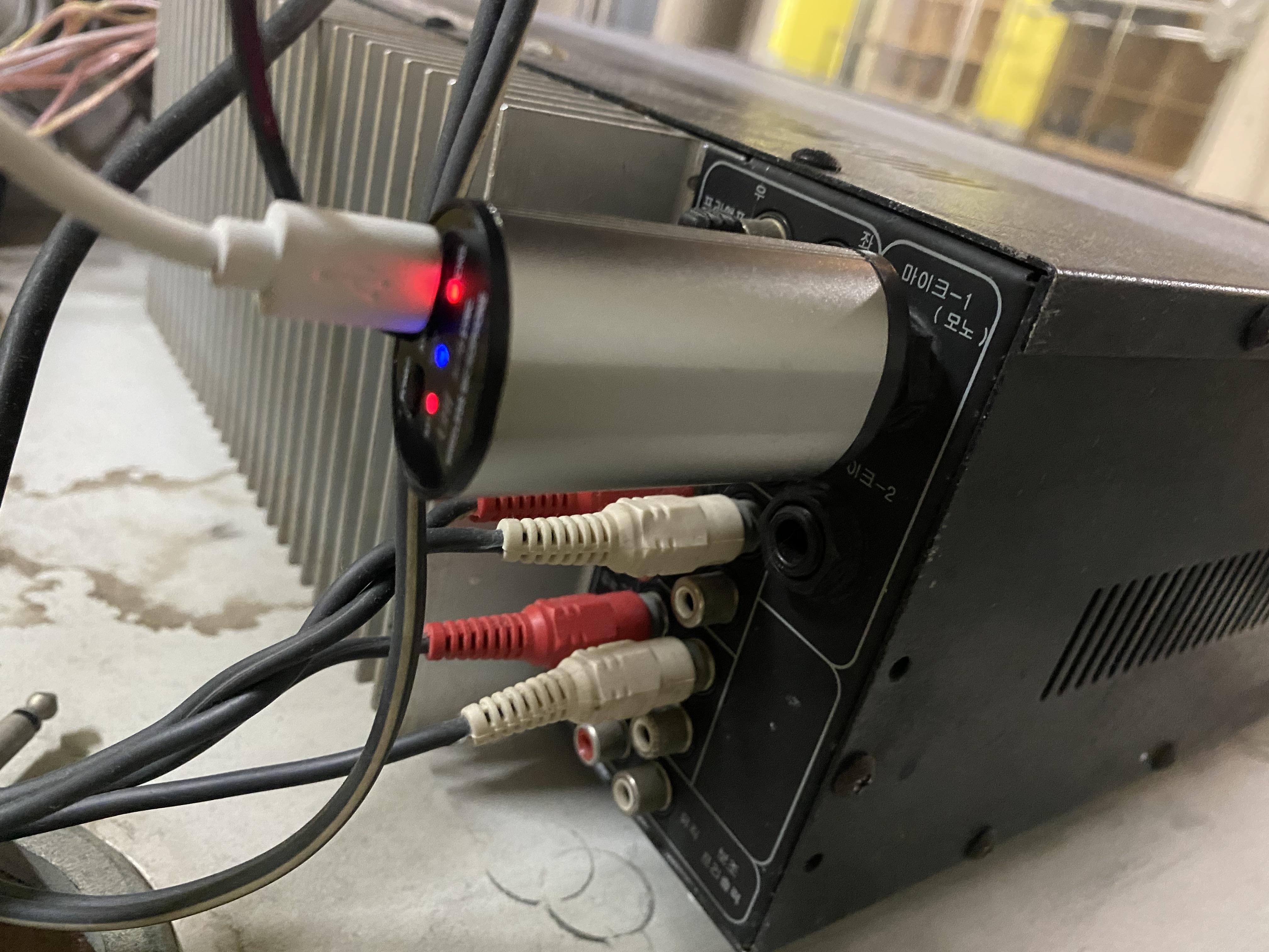 외부 강습에 사용하기 전 일단 학원 내에서 잘 되는지 한번 테스트를 해봐야겠지요? 앰프 앞면에는 마이크 단자가 없어서 뒷면 마이크 1번 단자에 수신기를 꽂습니다. 그리고 전원 버튼을 켜고 수신기 또한 충전식이라 배터리가 부족해 보여 USB 케이블로 충전을 같이 해줬습니다.