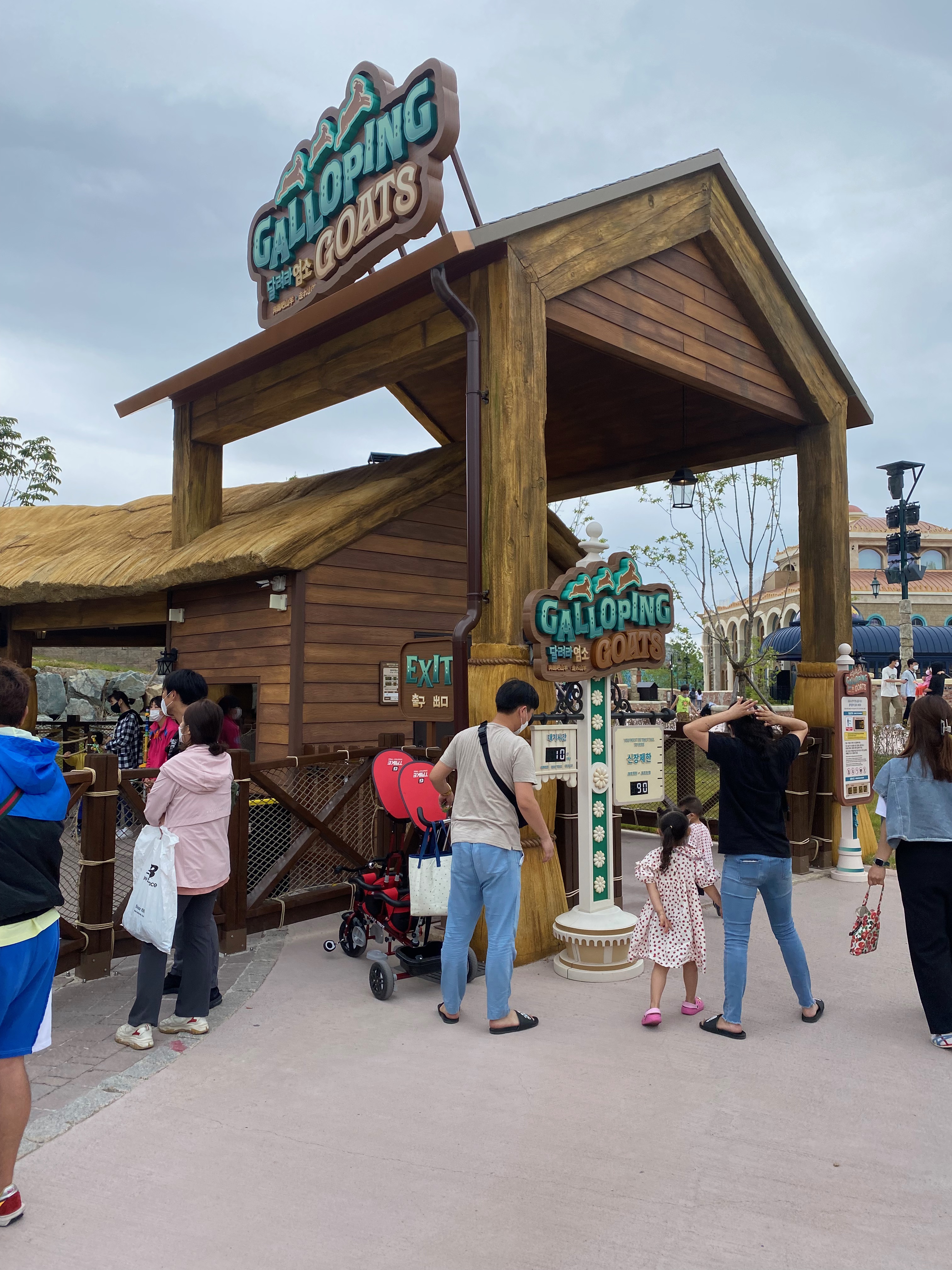 그런 다음 7세 아들이 탈 수 있는 놀이 기구가 뭐가 있나 한참을 가이드맵 보면서 찾고 있는데 나무 옆에 바로 회전목마가 있더군요. 일단 거기로 가서 첫 번째 놀이 기구를 타봅니다.
