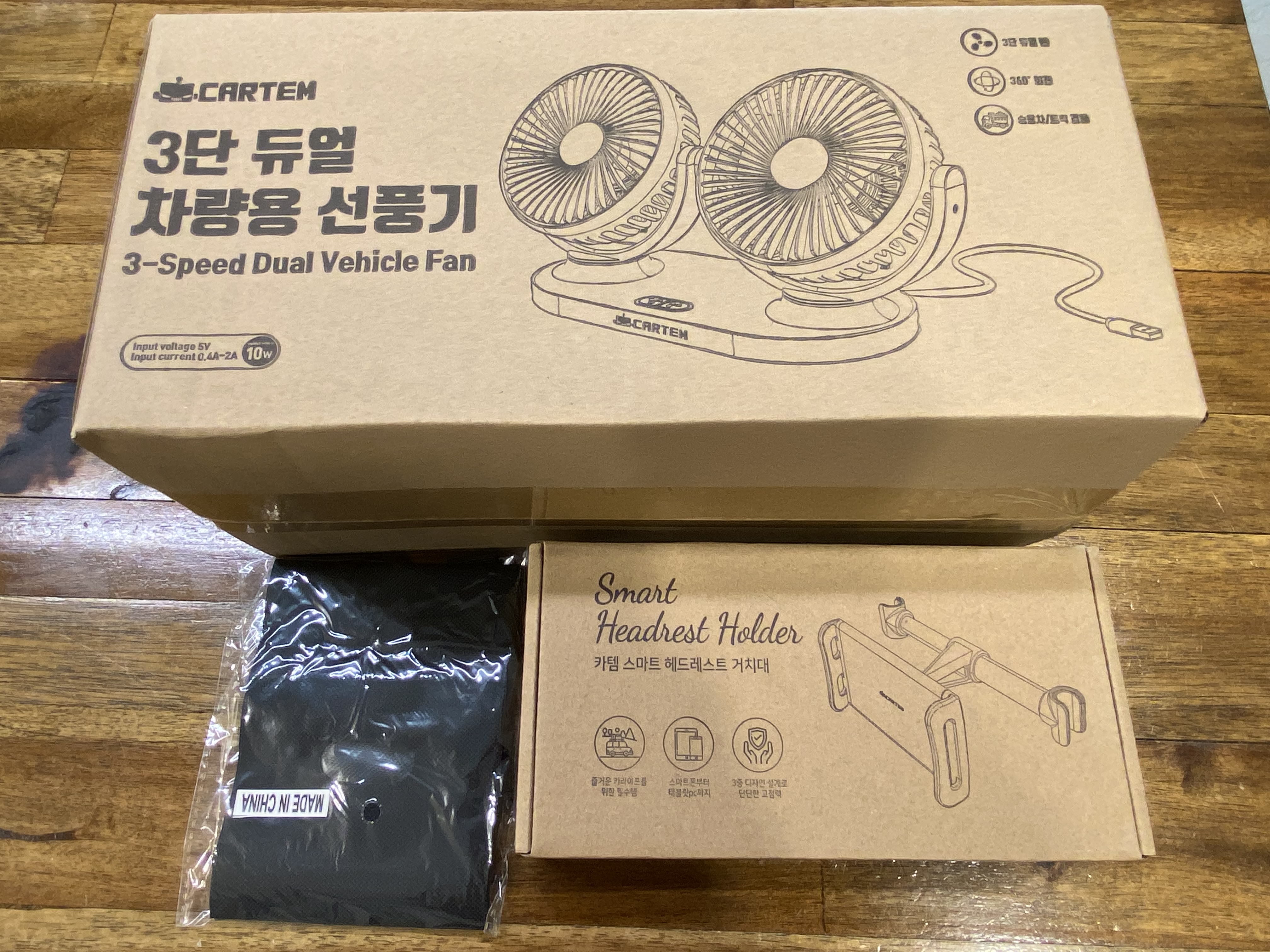 카템 3단조절 듀얼 차량용 선풍기 + 헤드레스트 거치대 세트