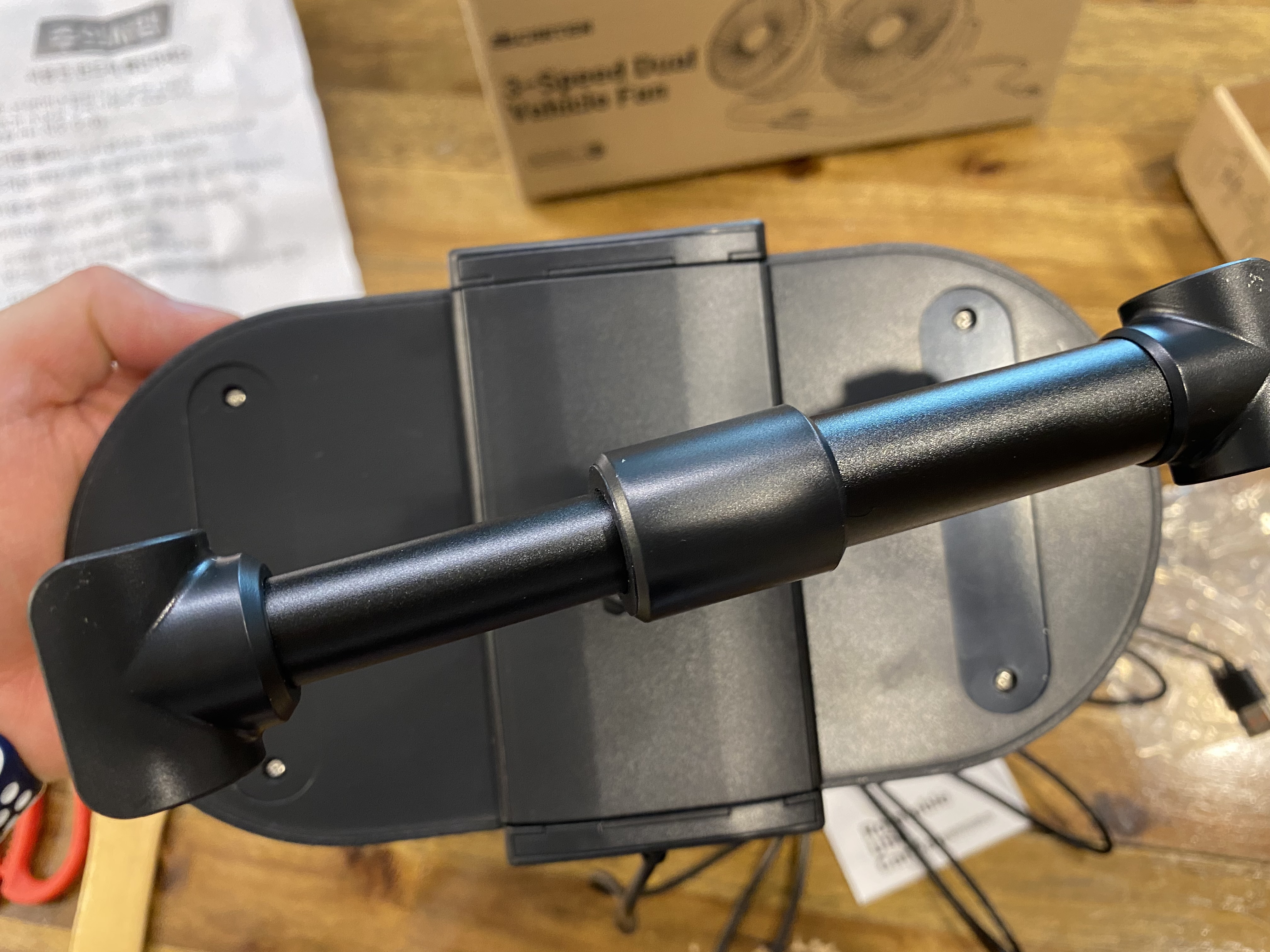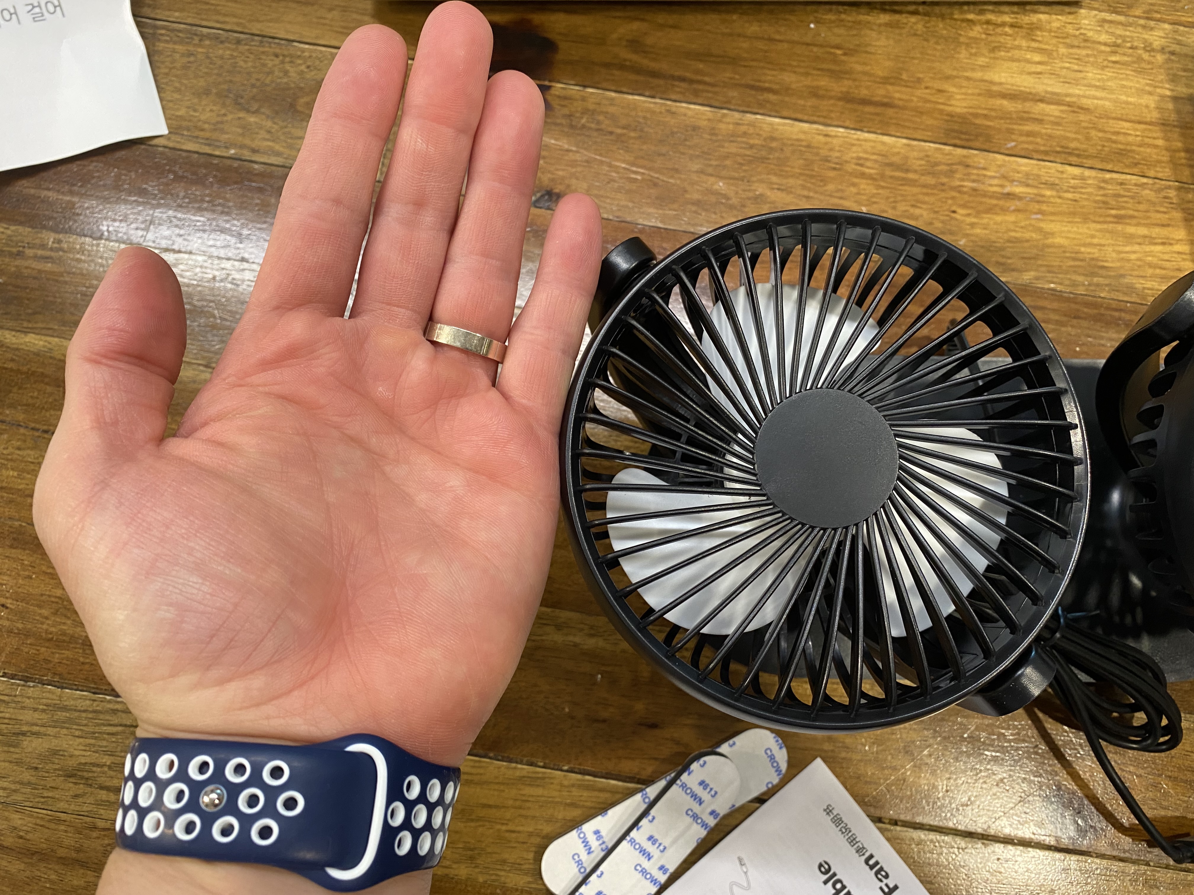 듀얼 차량용 선풍기를 실물로 보니 선풍기 팬 크기가 제법입니다. 웬만한 핸디형 선풍기 보다 조금 더 크다랄까요? 어른 손바닥만 한 선풍기가 듀얼로 딱!!!