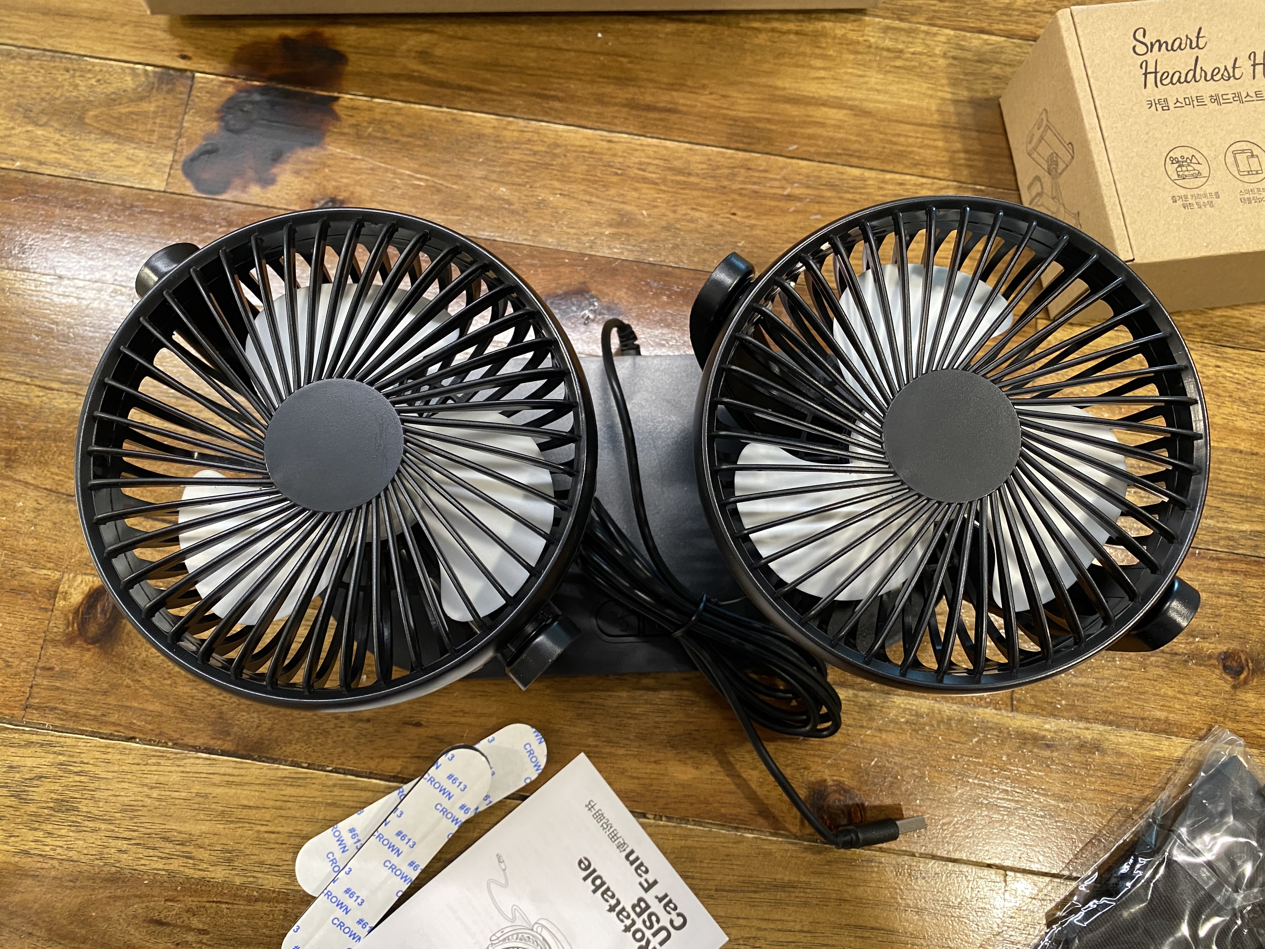 여름 시즌을 준비하기 위한 두 번째 아이템 구입기!! 이번엔 바로바로 ~ 차량용 선풍기입니다. 작년에 1+1 제품으로 몽블랑 선풍기를 구입했었는데 크기가 작아서 그런지 내구성이 진짜 엉망이었거든요. 구입하고 한 석 달 사용했나? 잘 돌아가다 갑자기 멈춰버리면서 그날로 아웃!! 가격도 두 개에 6천 원인가 구입해서 as 비용이 더 나올 거 같아 그냥 버리고 말았죠. 그래도 사용한 기간 동안 차 안에서 무척 시원하게 잘 사용했었습니다. 그래서 올해 여름 미리미리 준비하려고 차량용 선풍기를 알아보고 있었는데 마침 듀얼 차량용 선풍기가 눈에 띄더라고요. 앞 좌석에 양면 테잎으로 고정해서 사용하는 방식이 있고 옵션으로 뒷좌석 헤드레스트에 걸어서 온리 뒷좌석용으로 사용하는 방식도 가능하고 말이죠. 땀쟁이 7살 아들을 위해 아빠는 듀얼 선풍기에 옵션으로 헤드레스트 거치대 세트로 구입을 하게 되었습니다. 제품명은 '카템 3단조절 듀얼 차량용 선풍기 + 헤드레스트 거치대'입니다. 쿠팡에서 검색하다가 눈에 띄어 바로 구입했는데 구입가는 19,710원입니다.