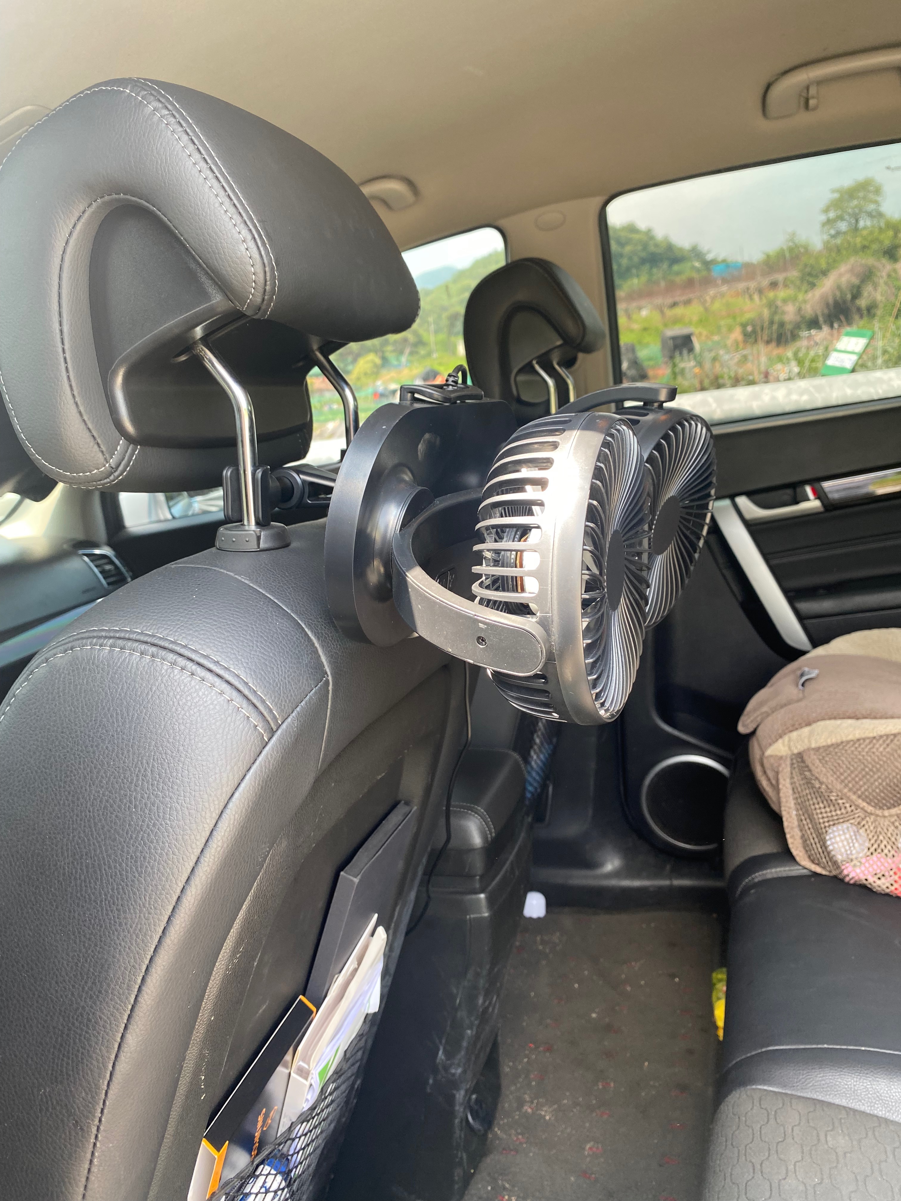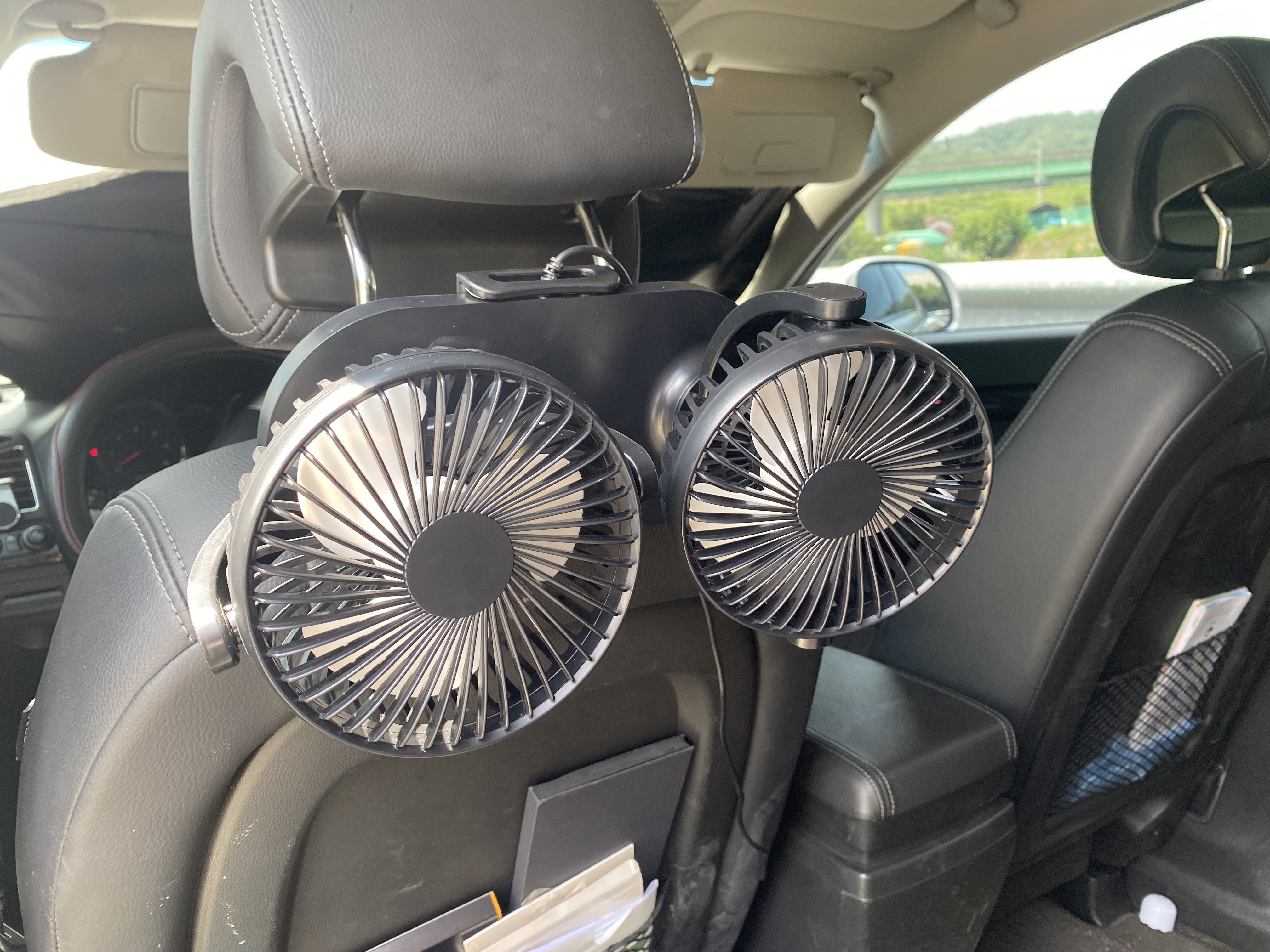 헤드레스트에 거치해서 보니 사진상으로는 공간을 많이 차지하지 않아 보이는데요, 이게 생각보다 공간을 제법 차지해서 아이가 있는 쪽에 설치를 하지 않았습니다. 엄마가 아이 옆좌석에 타는데 첨엔 살짝 불편해하더라는.... 그래도 듀얼 선풍기를 작동시켜 보니까 소음도 적고 각도도 마음대로 조절도 되고 3단 바람으로 강약 조절도 되니 사용자 편의성에 잘 맞춰진 제품이 아닌가 생각됩니다. 3단으로 틀어놔도 선풍기 소음이 운전에 전혀 방해가 되지 않습니다. 뜨거운 여름 미리미리 준비하자고요~ 여름휴가 갈 때 뒷좌석 뜨거운 열기 어떻게 하실 겁니까!! 올여름 차량용 선풍기는 요걸로 끝내는 겁니닷! 제발 요 제품은 성능이 오래갔으면 좋겠네요~^^