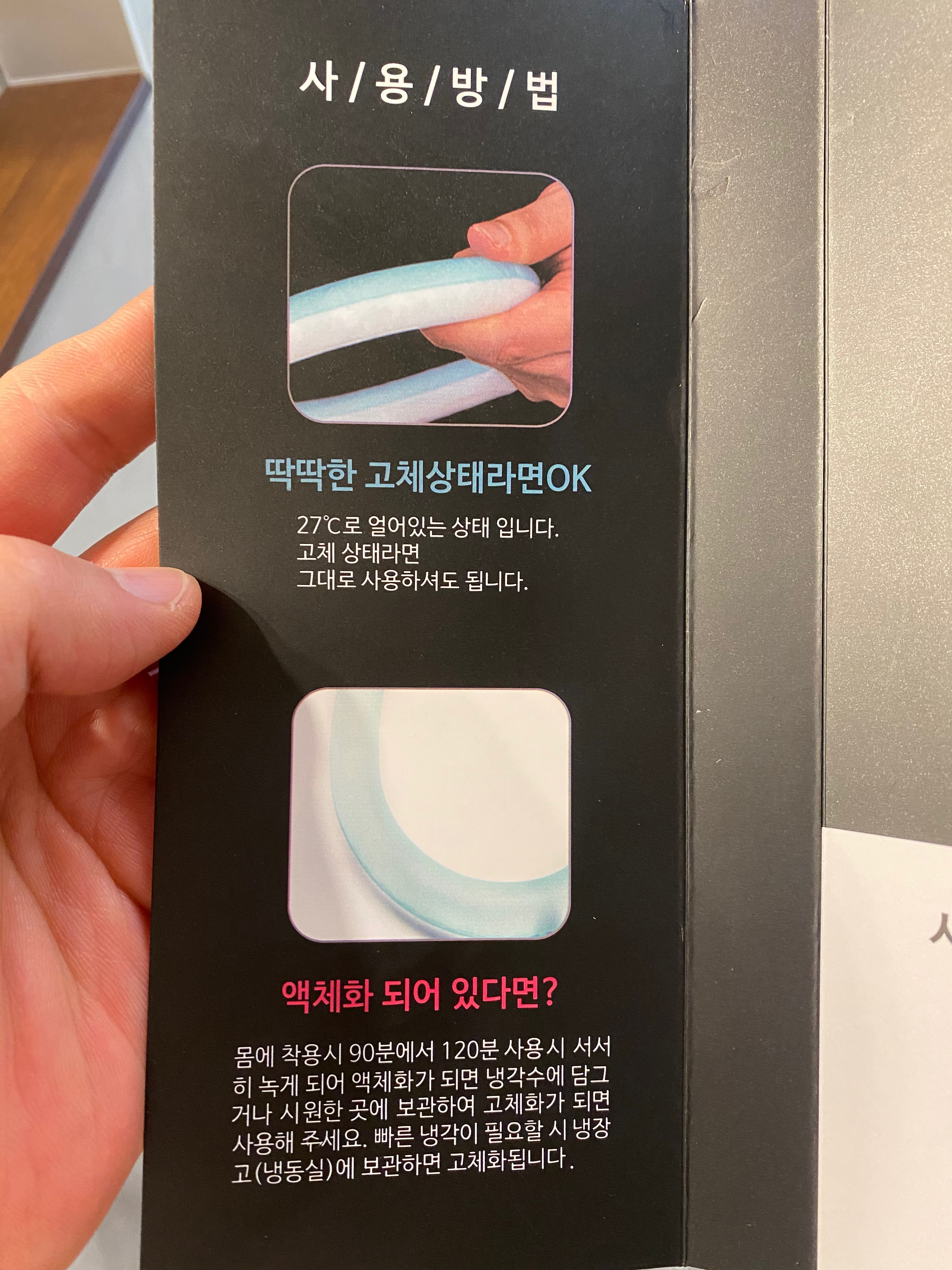딱딱한 고체 상태로 사용~ 액체화되어 있으면 얼려줌. 끝!