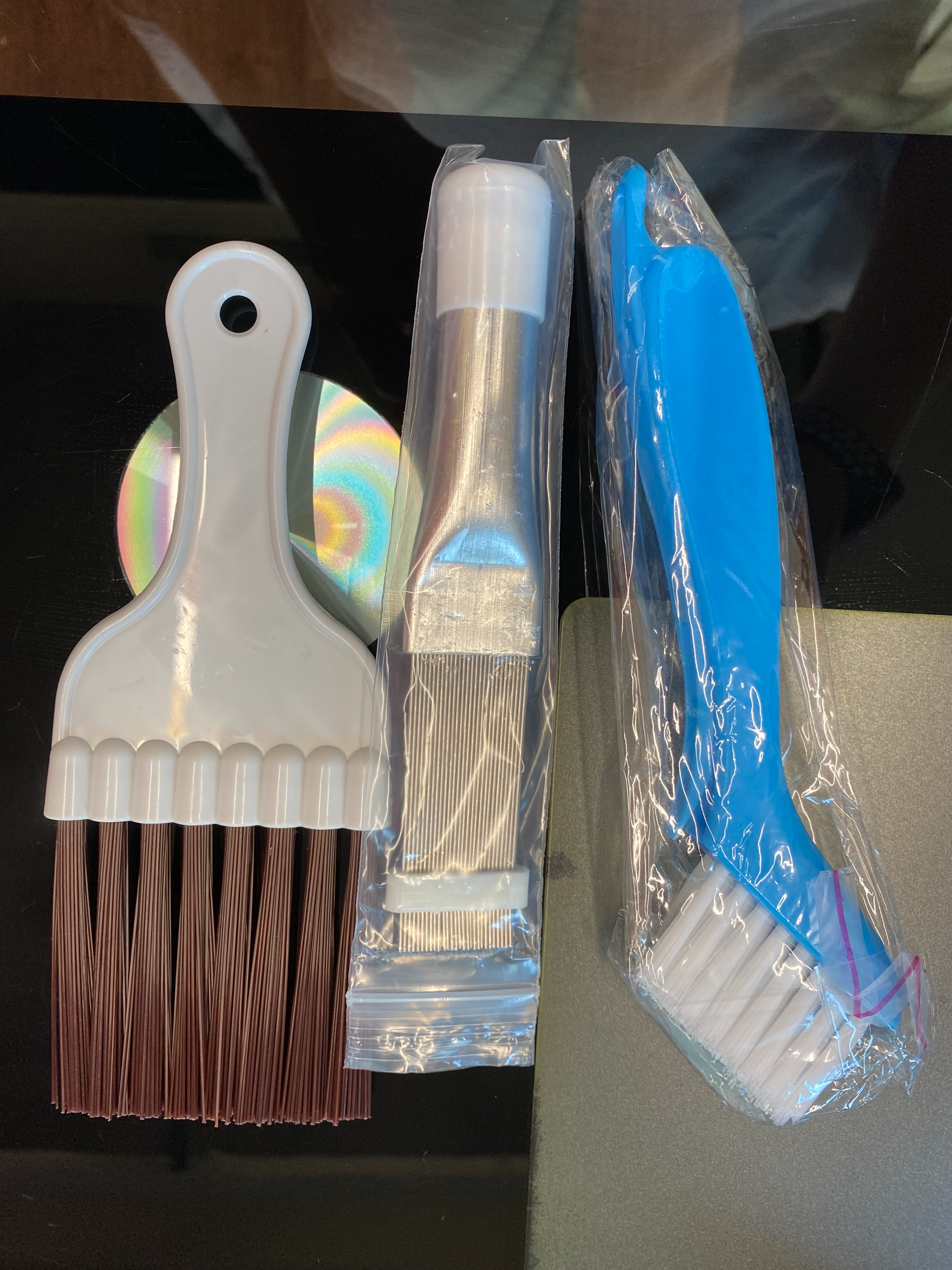 청소 시 사진에는 안 나와 있지만 에어컨 세정제를 미리 잔뜩 뿌려서 냉각핀에 수분이 촉촉하게 있는 상태에서 청소솔 사용을 하시기 바랍니다. 비포 엔 애프터 사진은 그냥 냉각핀이 건조한 상태에서 스텡 솔로 마구 긁어버렸는데요.... 생각보다 먼지 제거 효과가 떨어져서 세정제 도포 후 다시 청소를 했답니다. 그랬더니 속이 후~련 해졌다는~물론 완벽하게 처음 그대로 모습으로까지 먼지가 제거가 되진 않았지만 확실히 오래 묵혀뒀던 먼지들이 싹 제거되어서 넘넘 기분이 좋았어요^^ 앞으론 자주 냉각핀 청소를 해줘야겠습니다. 에어컨 세정제로 그냥 뿌리지만 마시고 반드시 청소 솔로 냉각핀에 먼지를 제거해 주면서 에어컨 사용을 하시기 바랍니다. 국내 판매 제품에는 3종 세트가 없어서 알리 익스프레스 링크 걸어둡니다. 필요하신 분들은 구입해 보세요.