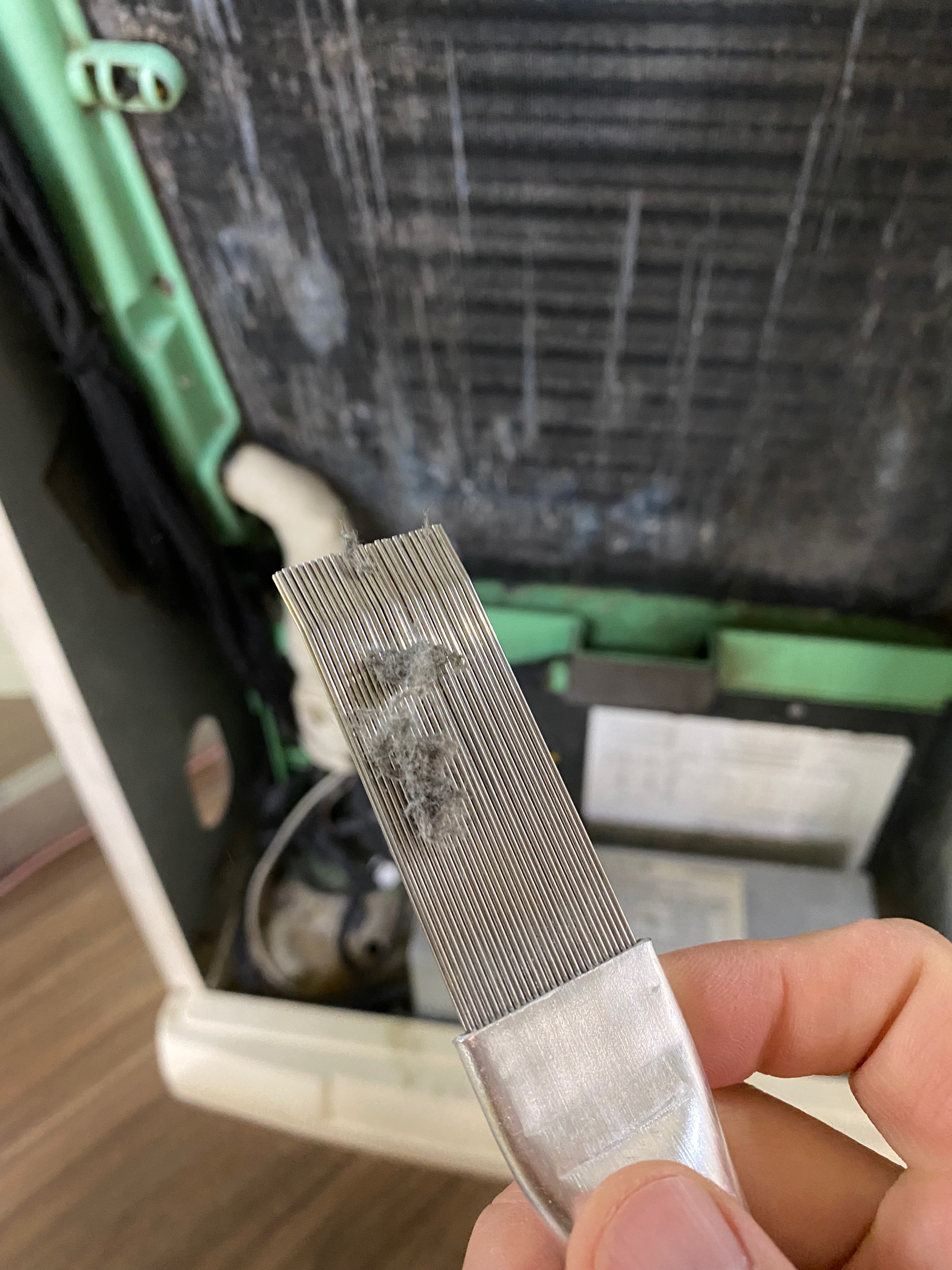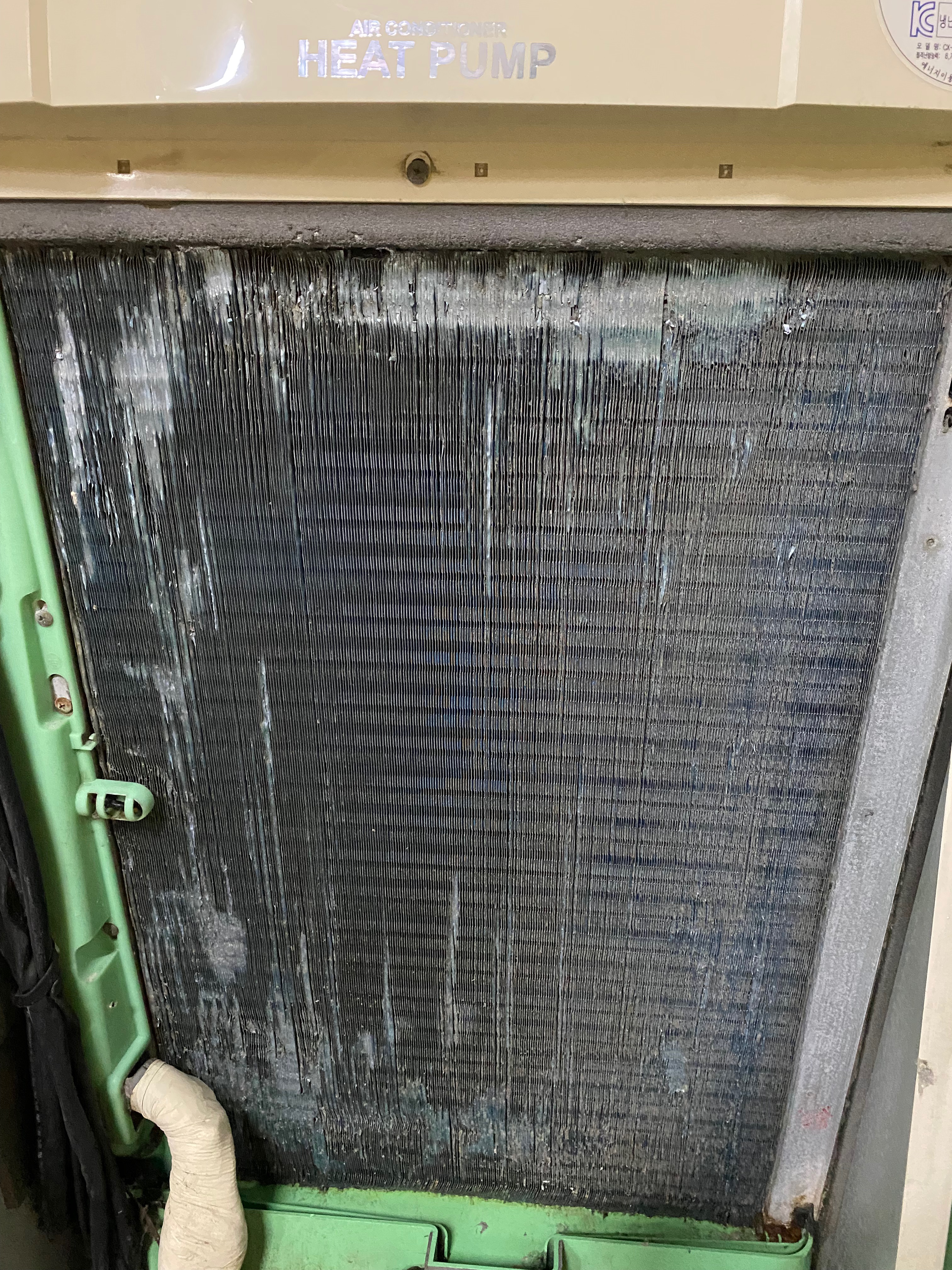 문제의 냉각핀인데요.... 냉난방 겸용으로 봄, 가을 시즌 빼면 거의 일 년에 8개월 정도를 가동하는 거 같습니다. 애초에 제가 구입한 제품이라면 이렇게 엉망으로 관리를 안 했을 거인데 비용을 조금 줄여보고자 기존 설치되어 있던 제품을 그대로 물려받아 사용하는 냉난방기라 상태가 영 엉망입니다. 그래서 큰맘 먹고 냉각핀에 잔뜩 끼여있는 먼지들을 이번 참에 싹 긁어 내버리겠단 맘으로 청소솔 3종 세트를 구입했지요.