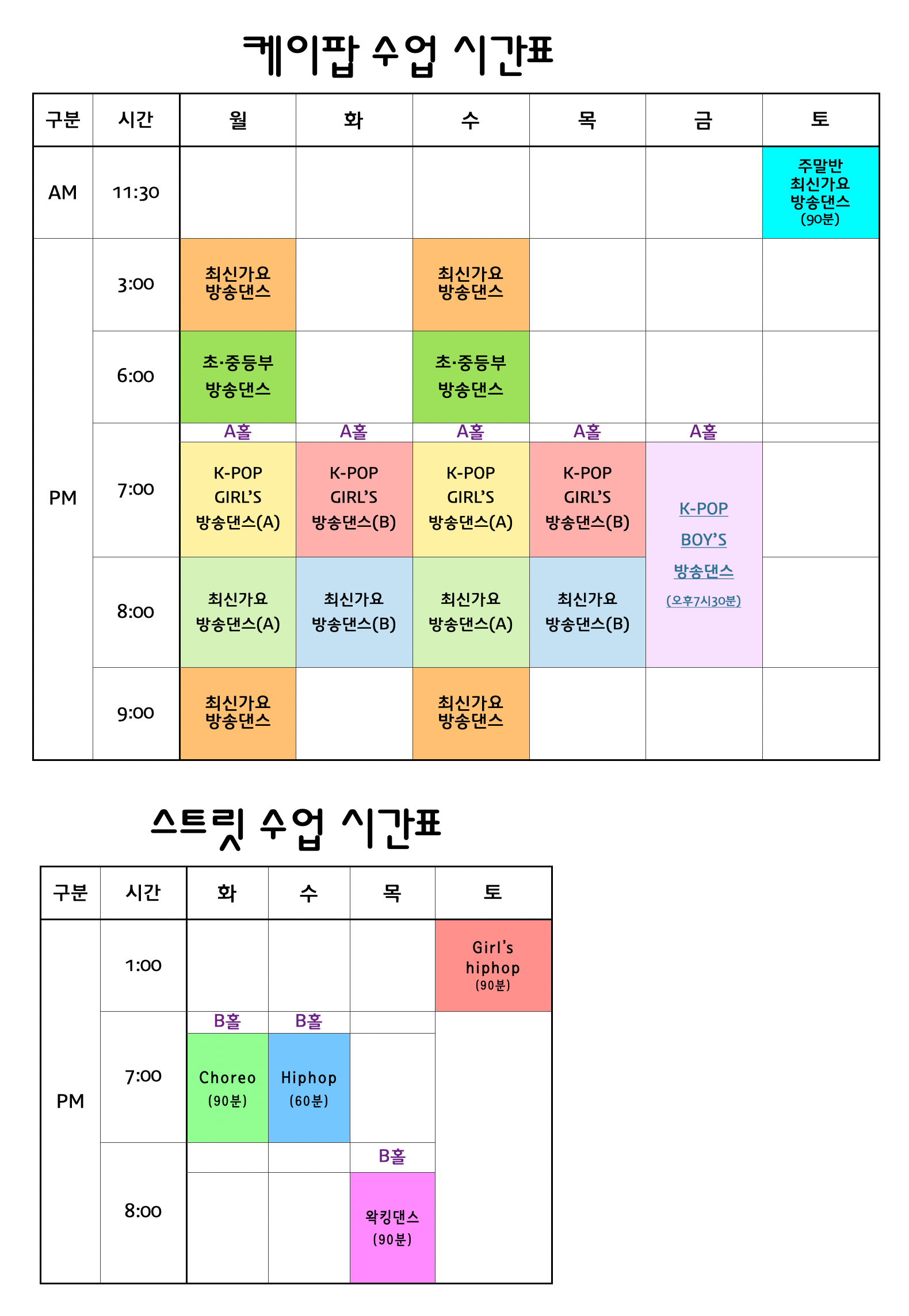 7월 제이댄스 수업시간표를 안내합니다. 4월부터 쭉~ 신규 개설된 반들이 하나씩 추가되고 있는데 이번엔 오후 3시 수업이 신규로 개설됩니다. 코로나 시국에 2년 반 동안 낮 시간 수업이 쭉 휴강 상태로 재개강을 하지 못하고 있었는데 이번 여름 시즌을 맞이해 다시 재개강을 하게 되었습니다. 아울러 월, 수 저녁 7시 수업도 강사님 부상 복귀 후 잠시 쉬고 있었는데 다시 재개강을 하게 되어 더욱더 다양한 시간대에 방송댄스를 배울 수 있게 되었답니다. 스케줄 잘 확인해 보시고 지금 바로 제이댄스 케이팝 방송댄스에 도전해보세용^^