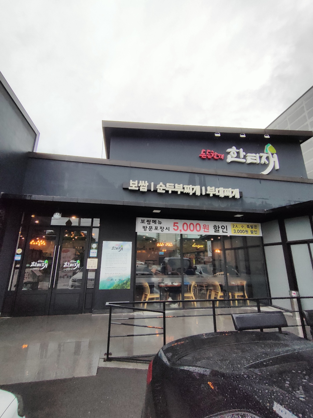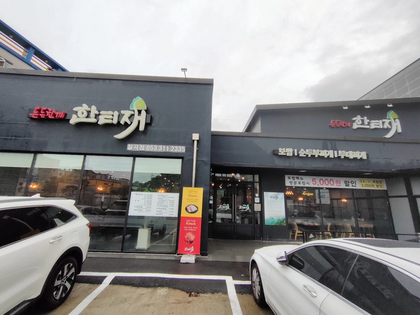 지난 월요일 비가 마구 내리던 오전부터 서둘러 칠곡에 있는 경북대학병원에 다녀왔습니다. 아들의 눈 검사를 위해서 말이죠. 서둘러서 갔던지라 점심 식사 시간 전에 모든 검사를 잘 마칠 수 있었지요. 아침을 거르고 가서 그런지 급 시장기가 도는 게 밥을 이 동네에서 해결하고 가야겠더라고요. 그래서 열심히 검색해 봤습니다. 대부분 칠곡 경북대학병원 인근에 있는 식당이 나오던데 고민 끝에 한 군데를 찍어서 가봤지요. 상호는 '든든한끼 한티재'라는 곳이고 보쌈 전문집인데 점심 특화된 메뉴로 1인 보쌈이 잘 나온다고 되어 있어서 방문을 하게 되었습니다.