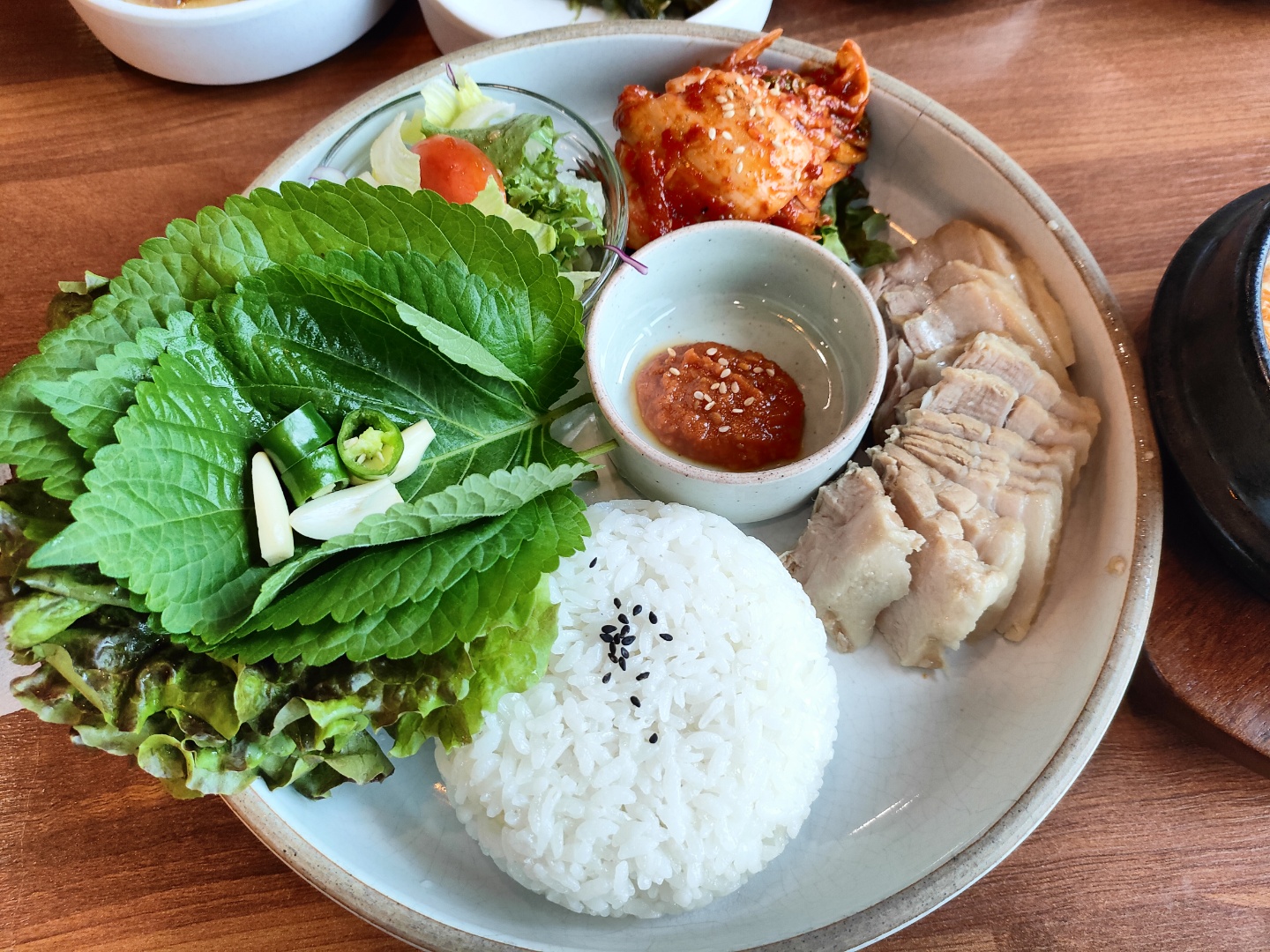 주문한 보쌈과밥 음식이 나왔습니다. 전체 2인분 사진도 담아봤는데 미니 순두부찌개는 크게 기대를 안 해서 전체 풀샷만 담아봤는데요, 이게 큰 실수였다는...