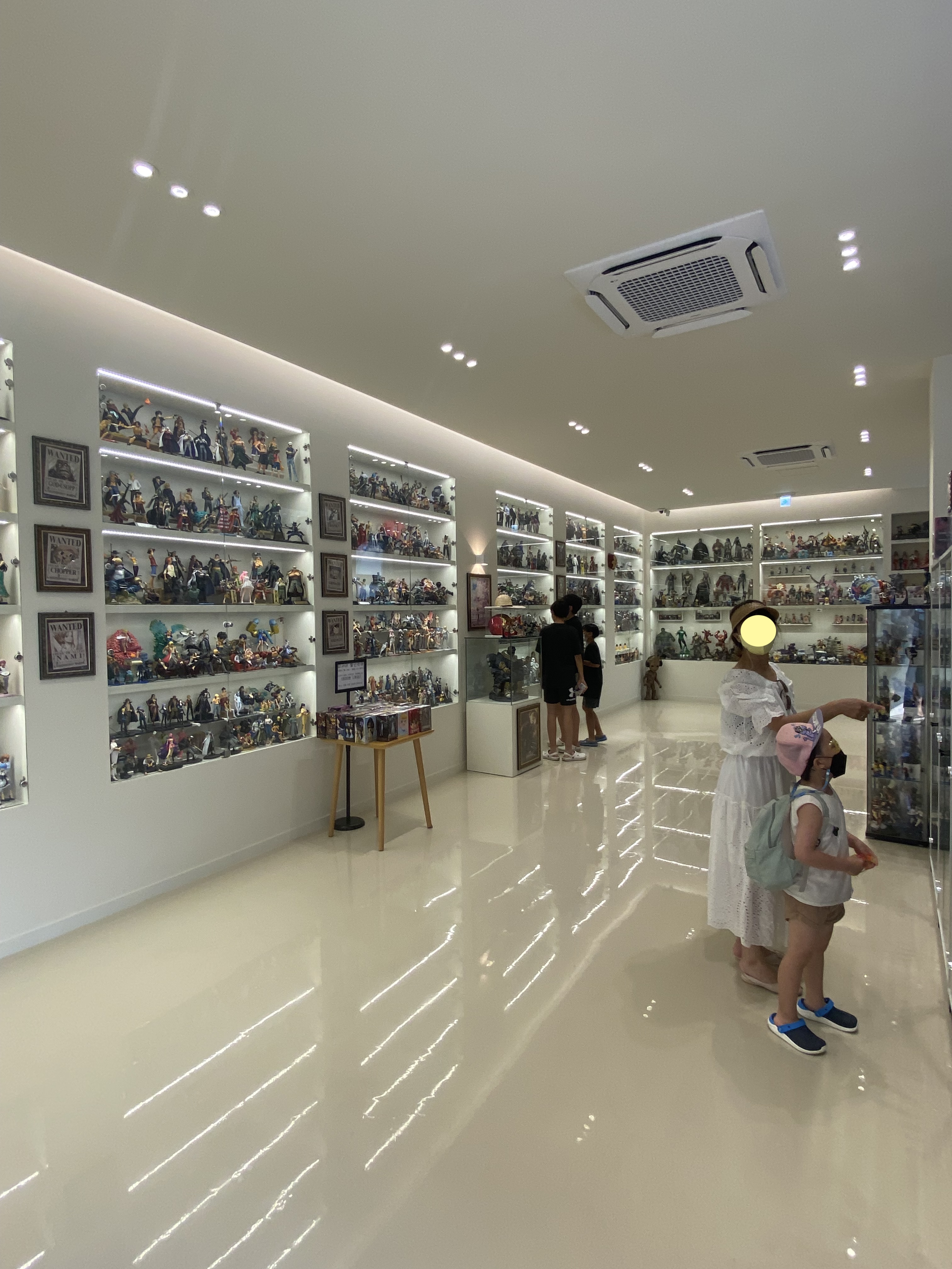 로봇 시리즈 피규어는 많이 없었고 원피스, 귀멸의 칼날, 드래곤볼 등의 일본 애니 피규어와 마블 시리즈 피규어가 대량으로 전시되어 있는 전시장이었습니다. 울산에서 이런 피규어 전시장을 운영하는 카페가 과연 또 있을까요? 주문한 음료와 빵이 나왔는데도 아들은 당췌 먹을 생각을 안 합니다. 같은 걸 보고 또 보고 모르는 피규어는 아빠~ 이거 뭐야~~ 수십 번을 반복하면서 아들의 혼을 쏙 빼놓은 아리에티 카페입니다.ㅋㅋㅋ