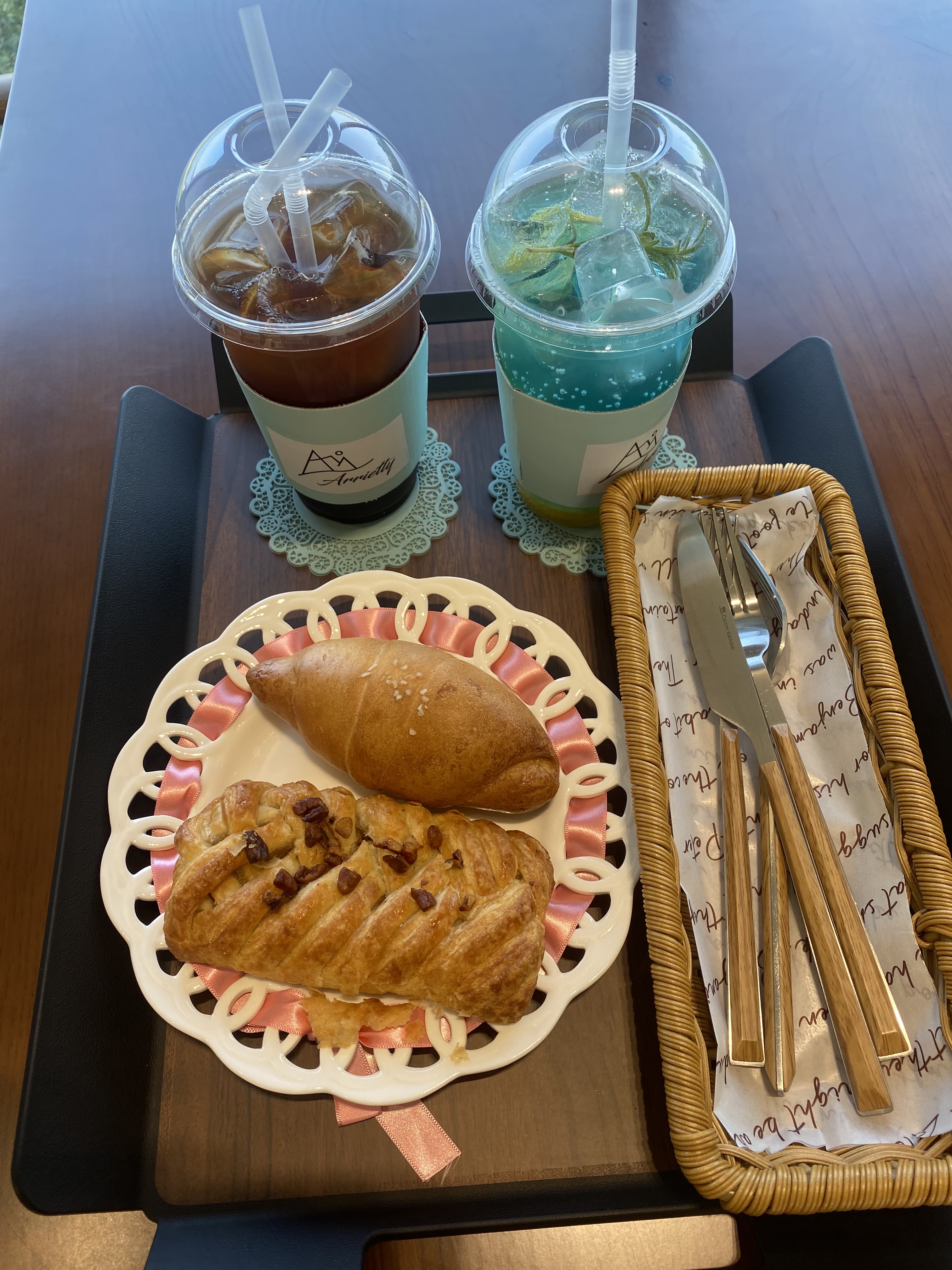 아리에티 카페는 총 3층으로 전시장을 벗어나서 계단을 올라가야 본격적인 음료를 마시는 공간이 나타나는데 3층은 노키존이라 2층에서 커피와 빵을 먹었고요