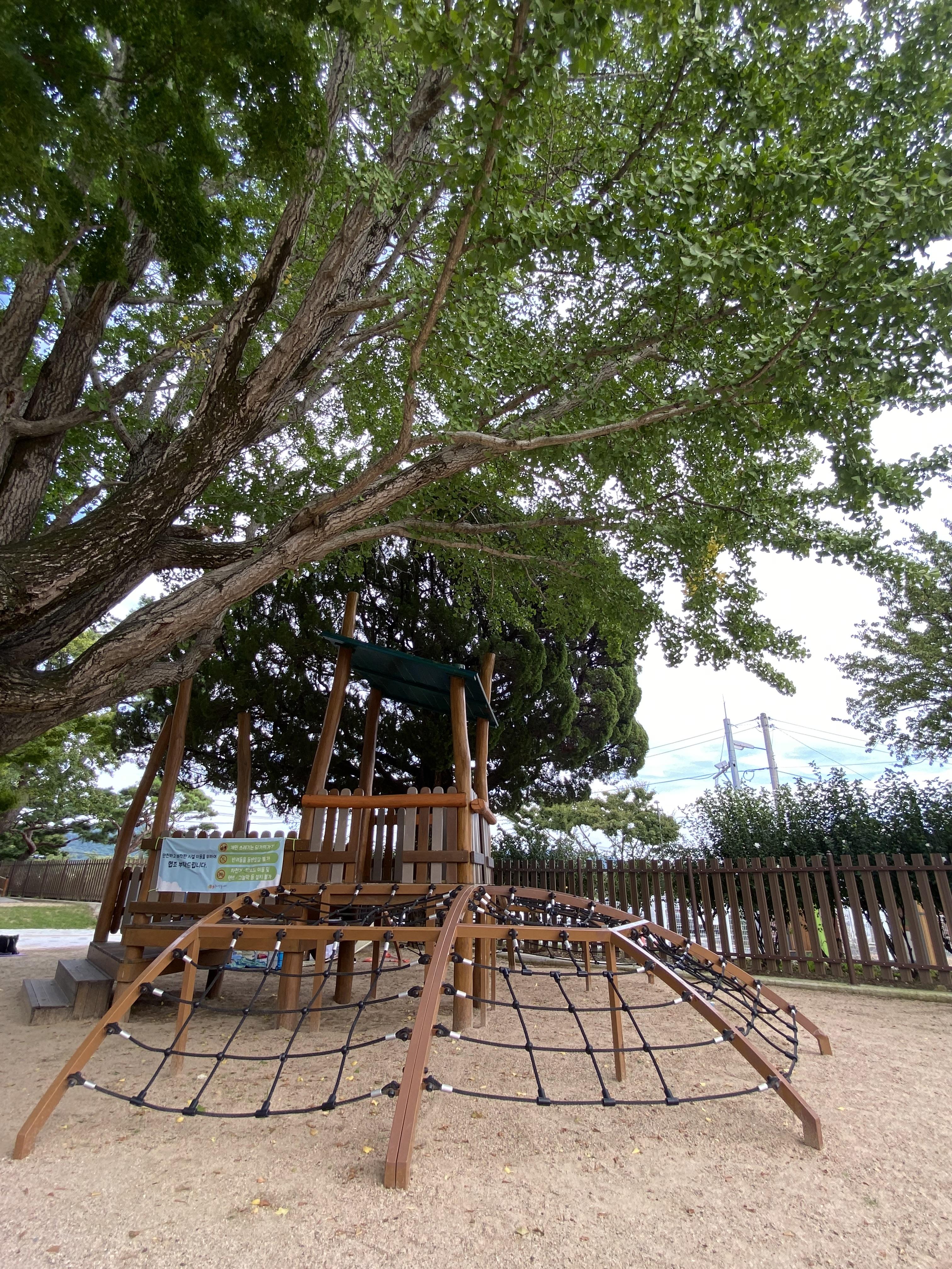 초등학교였던 곳을 교육청에서 아이들이 맘껏 뛰어놀 수 있는 놀이터로 다시 만들었는데요, 입구에 들어서면 큼지막한 나무들이 양쪽에서 방문객들을 안내합니다. 소나무, 은행나무는 한눈에 딱 봐도 알아보는데 특이한 나무가 두 그루가 있었습니다. 바로 일본 향나무인 가이즈카 향나무가 한 그루가 있는데 그렇게 큰 향나무는 첨 봤다는.... 그리고 우영우 드라마에서 봤던 큼지막한 팽나무가 여기에도 딱~~!!!