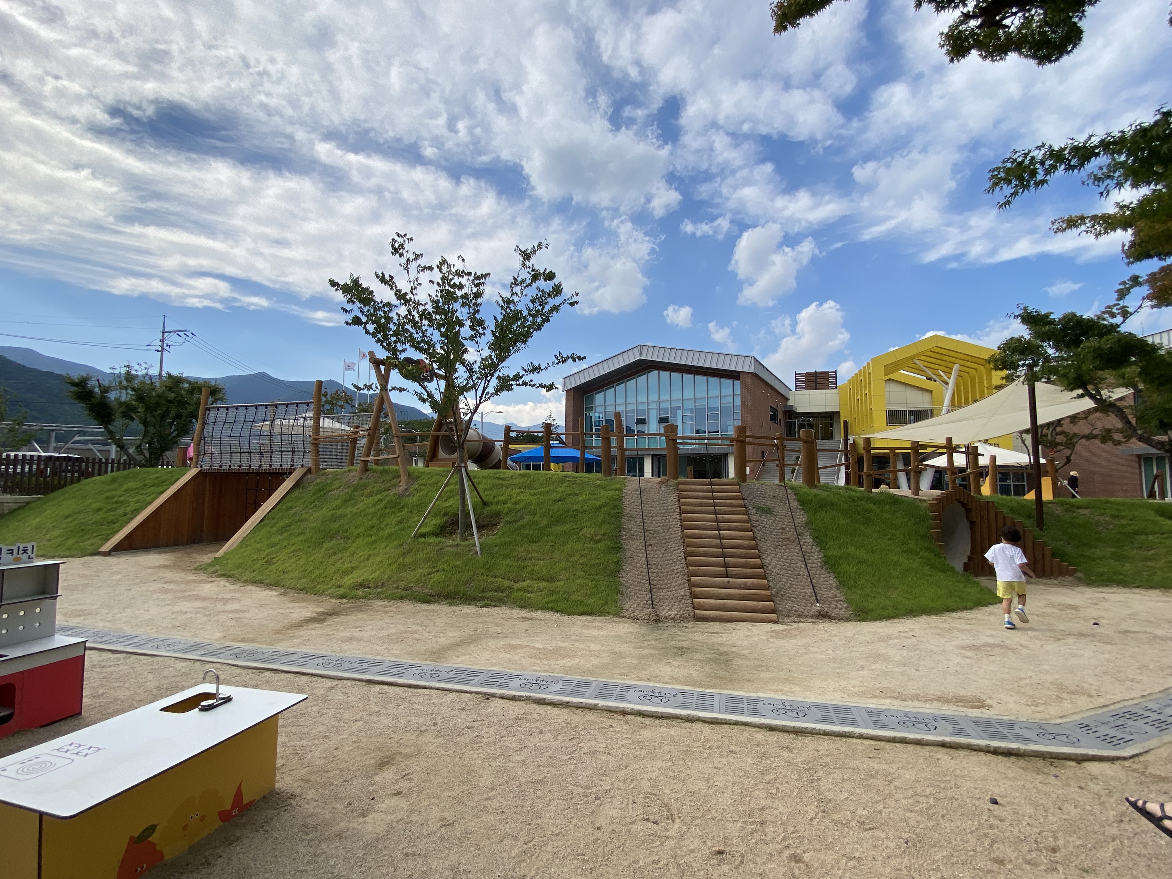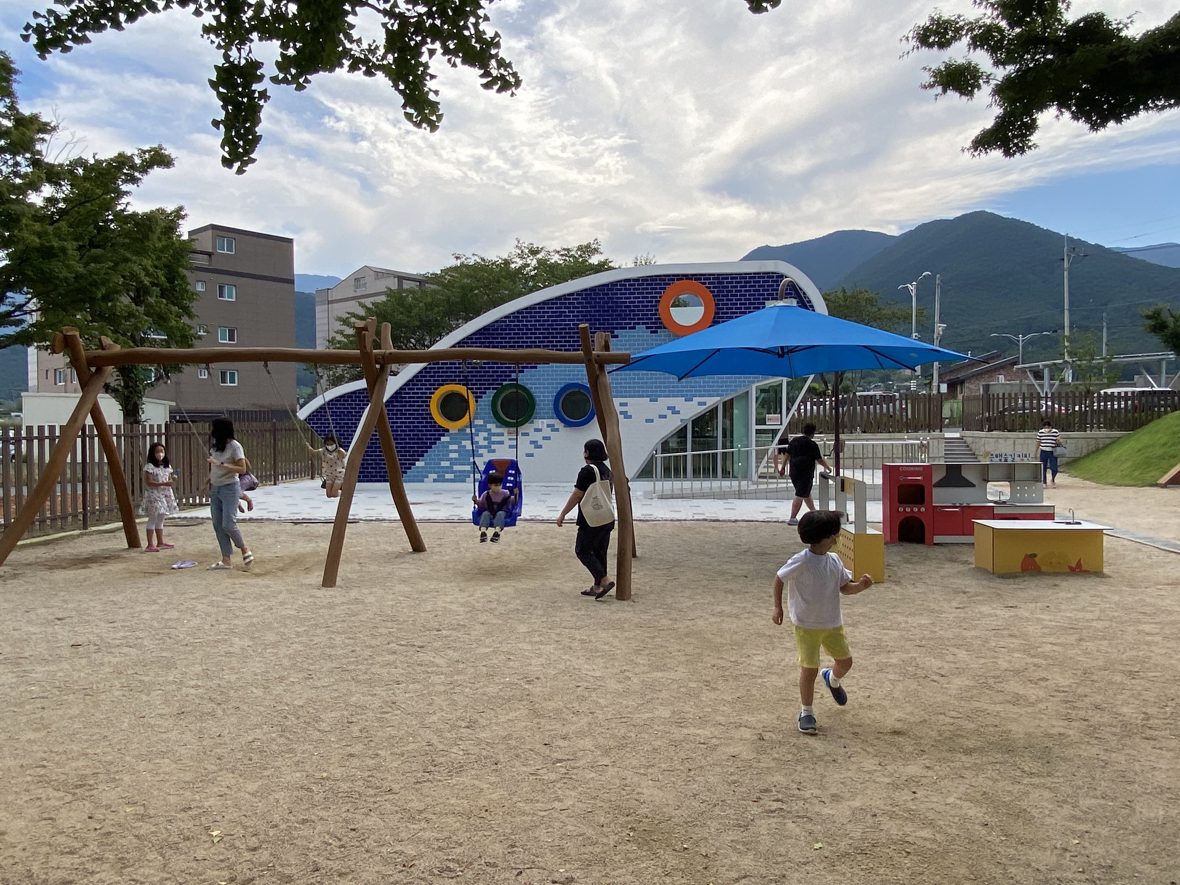 요 사진은 실내 건물 입구에 서서 반대편 놀이터 전체를 사진으로 담아봤습니다. 날씨도 좋았고 덥지도 춥지도 않은 그런 날이어서 사진이 이쁘게 잘 나왔네요. 오후 3시 반쯤에 도착해서 얼추 한 시간 반 정도 놀았을까요? 주위에 편의시설이 없어서 빈손으로 오면 아이가 살짝 힘들어하니 꼭 먹거리와 음료 등은 챙겨오셔야 합니다. 저희는 마실 물도 없어서 더 이상 놀지 못하고 발길을 돌려야 했답니다. 많이 피곤하기도 했어요^^ 대왕암 아이누리와 많이 비교될듯한데요, 여기도 아이들과 나들이 삼아 나오기엔 괜찮습니다. 다만 탁 트인 동해안 바다 뷰가 보고 싶다면 아이누리로 ~^^ 아이들이 모래놀이 끝판왕이다~ 그러면 큰나무놀이터가 딱입니다. 시원한 나무그늘에서 엄빠들은 자리 펴고 쉬면서 즐기면 되고 아이들은 여기서 맘껏 뛰어놀다 보면 하루 금방 가겠죠? 다음엔 아들 친구랑 같이 제대로 챙겨서 놀러 가봐야겠어요~ 참고로 주차장은 입구 반대편에 있는데 저희는 운 좋게 한자리 있어서 쉽게 주차를 할 수 있었습니다. 얼추 한 20~30대 정도 주차공간이 마련되어 있는 거 같습니다. 참고하세요~ 아이들과 함께 당일치기 나들이 계획을 가지고 계신 분들은 요기 강추합니다. 그리고 인근에 맛집도 있어서 더더욱 좋아요. 맛집 소개는 다음 편에 하도록 하겠습니다. 참고로 어른들은 또 좋은 게 복순도가 양조장이 있어서 아이들 놀고 돌아가는 길에 막걸리 시음도 하고 한 병 사 갈 수도 있어서 더더욱 좋습니다^^