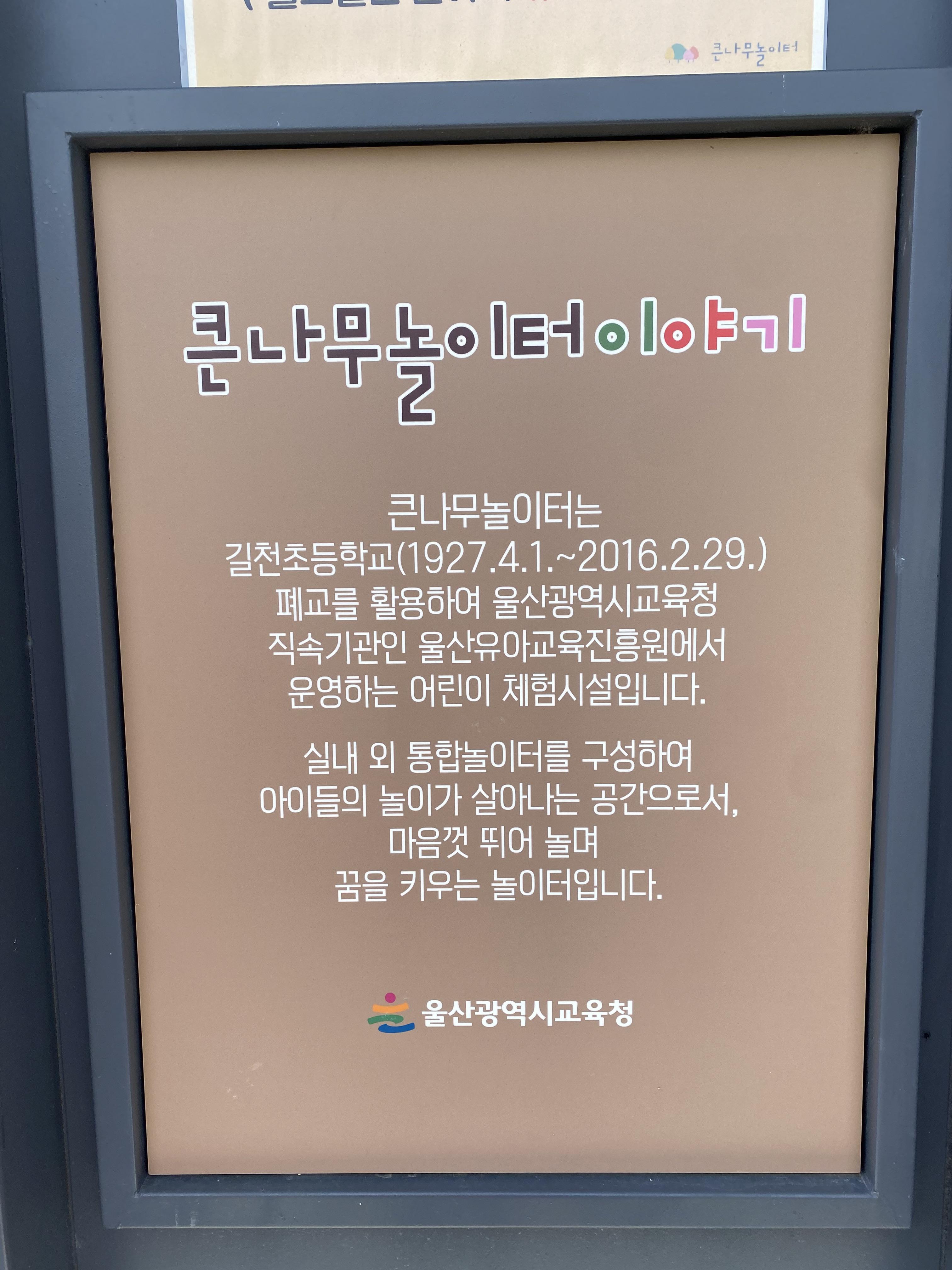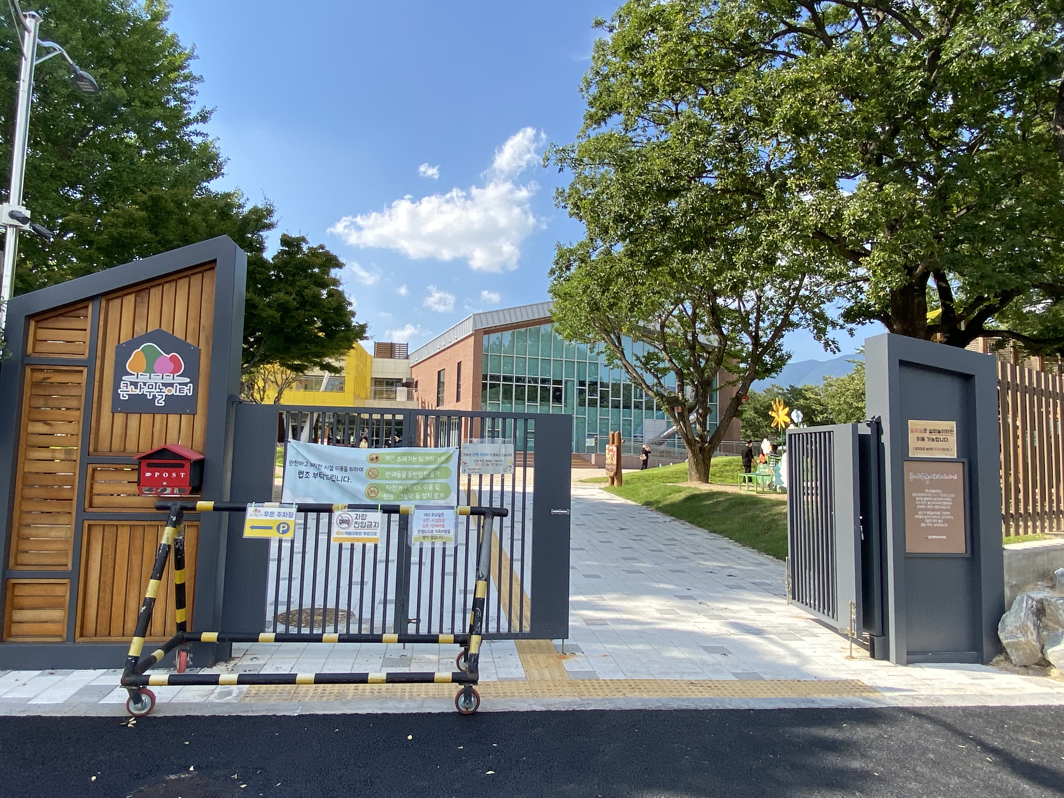 지난 주말 낮에 숲학교를 다녀온 아들을 데리고 어디를 가볼까 고민하다가 큰나무놀이터가 생각이 나서 언양 나들이를 다녀왔는데요, 오늘은 그 첫 번째 방문지로 큰나무놀이터에 갔다 온 후기를 올려봅니다. 방문했을 때 가장 아쉬웠던 점은 바로 실내공간을 이용하지 못한 건데 이건 뭐... 예약이 꽉꽉 차있어서 당일 이용은 무조건 불가~~!! 외부 놀이터만 상시 이용이 가능하답니다. 아이와 함께 방문 계획을 잡고 있는 가정은 미리미리 잘 챙겨 보세요.