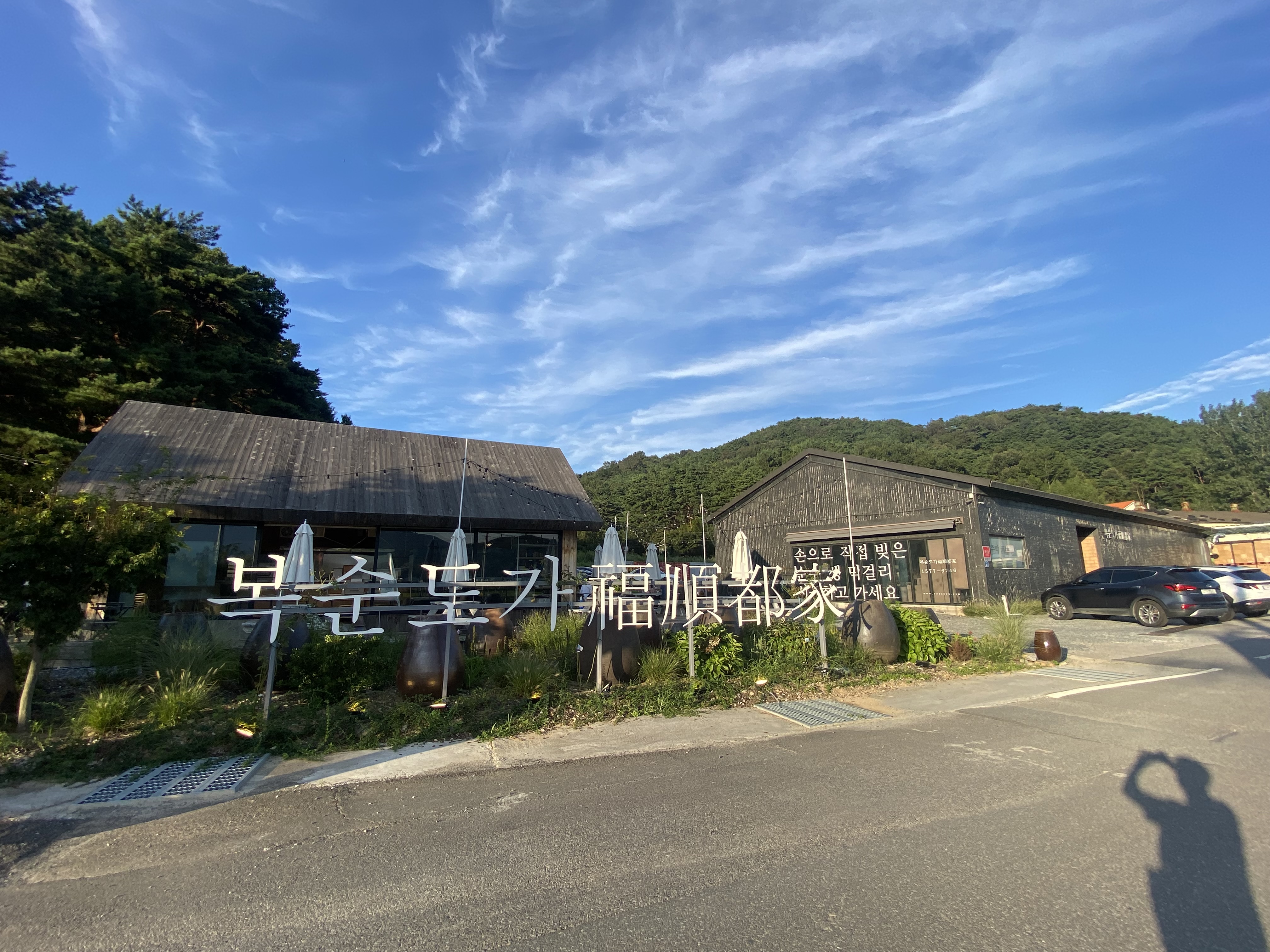 울산의 유명한 탁주 브랜드인 복순도가가 향산가든 입구에 있을 줄이야~~ 얼떨결에 알게 된 복순도가 위치네요. 향산가든에서 맛있게 식사를 마친 후 복순도가에 막걸리 시식을 하러 들렀습니다. 늦은 점심과 이른 저녁 시간 사이였는데 산골이라 역시 해가 늬웃늬웃 저미는 시간이었네요.