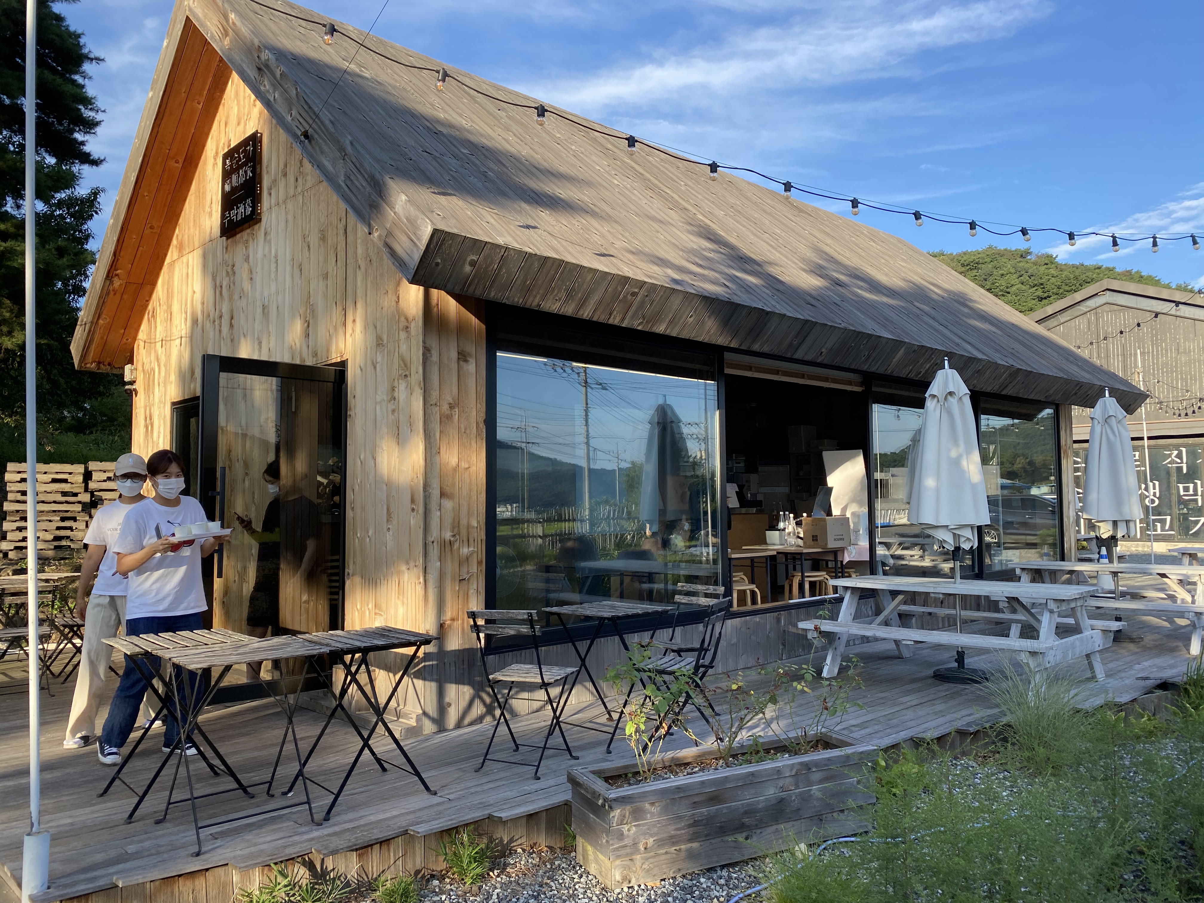 팜플렛 사진에서 봤던 모습이 눈앞에 딱~! 양조장과 시식 및 판매를 하는 곳으로 되어 있는데요, 우측은 양조장 좌측이 바로 시식 코너가 마련되어 있는 곳인데 해가 조금씩 저물어 가는 시간에도 사람들이 방문을 하더군요.