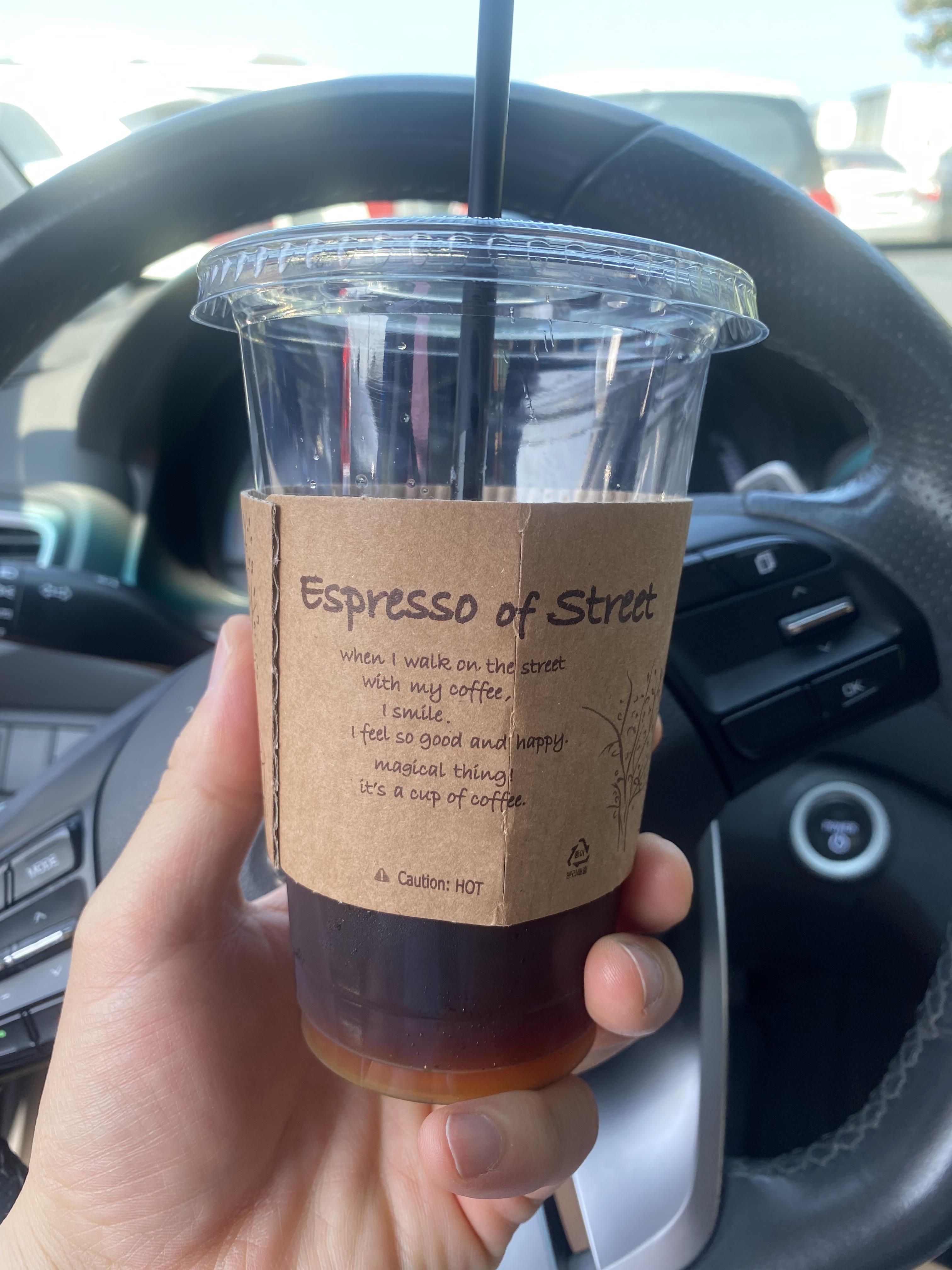아아 두잔을 구입했습니다. 한잔은 보통 노멀 스타일로, 한잔은 찐하게 내려달라고 주문했지요.